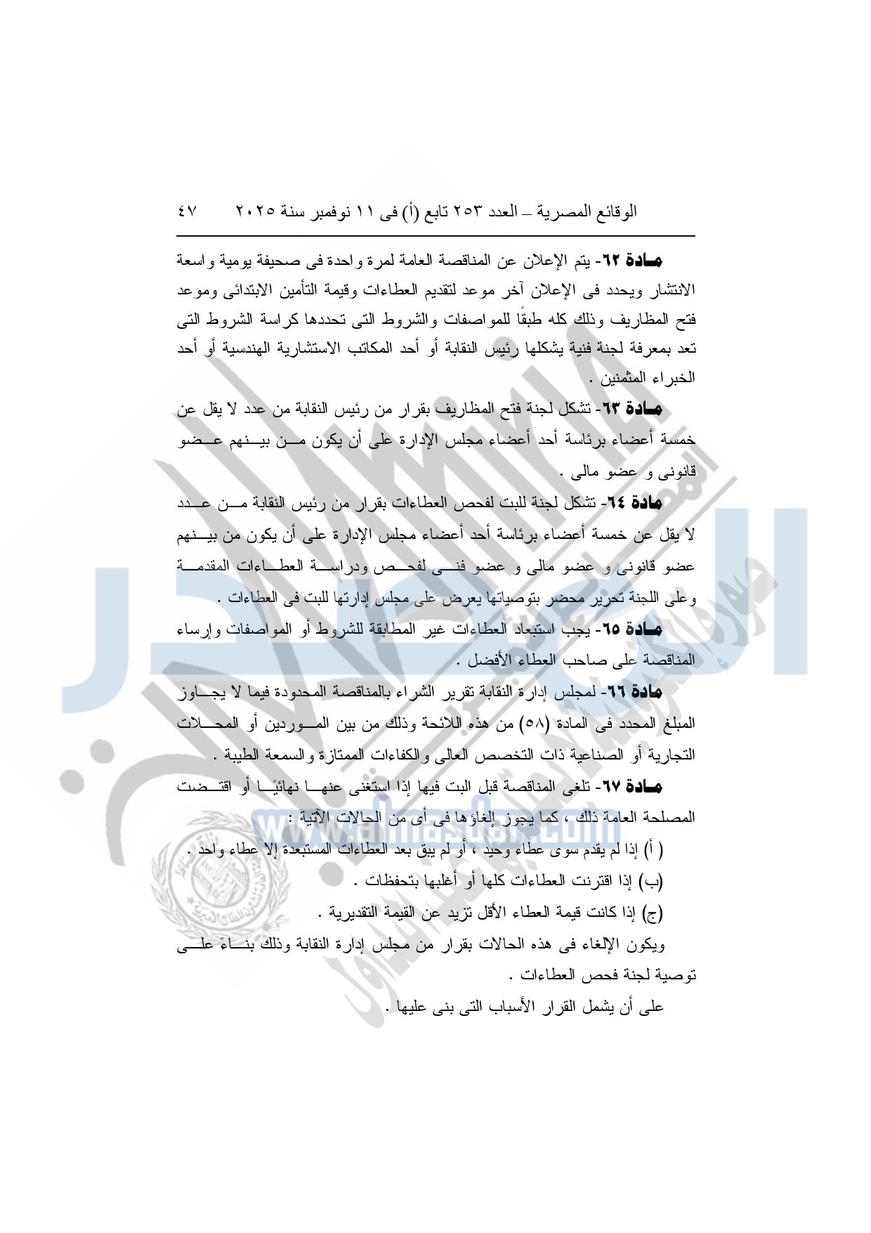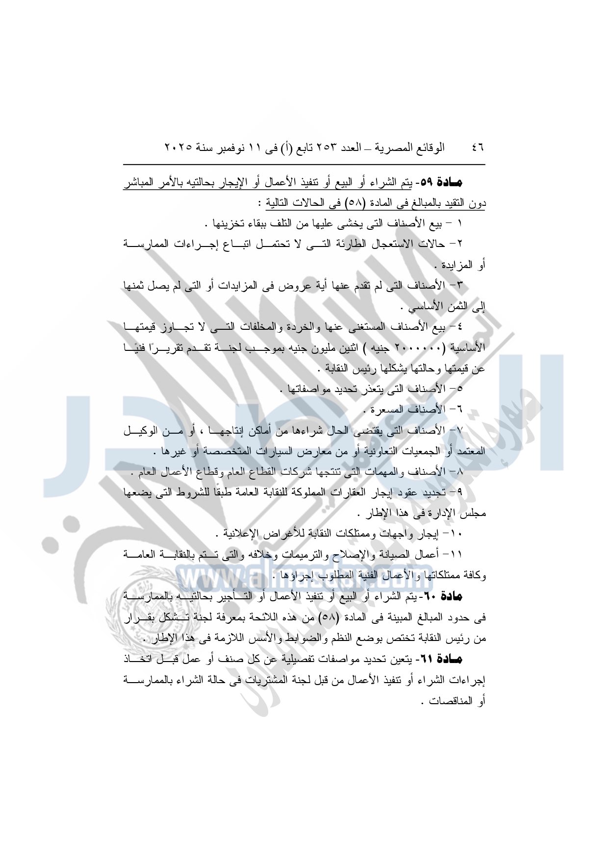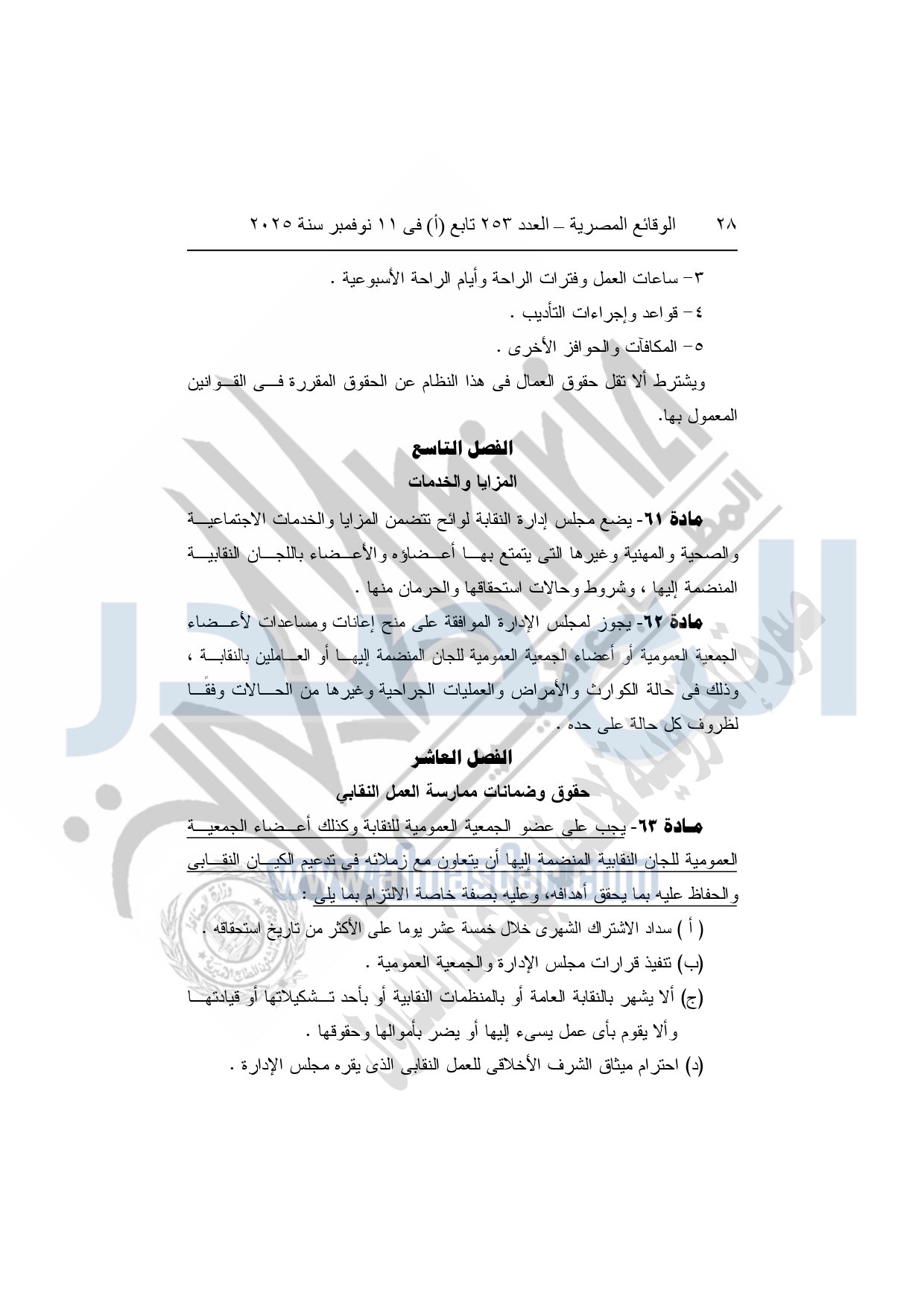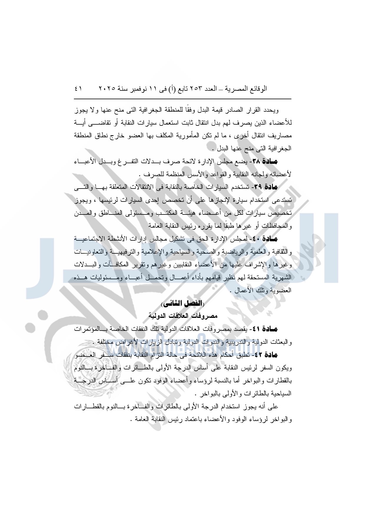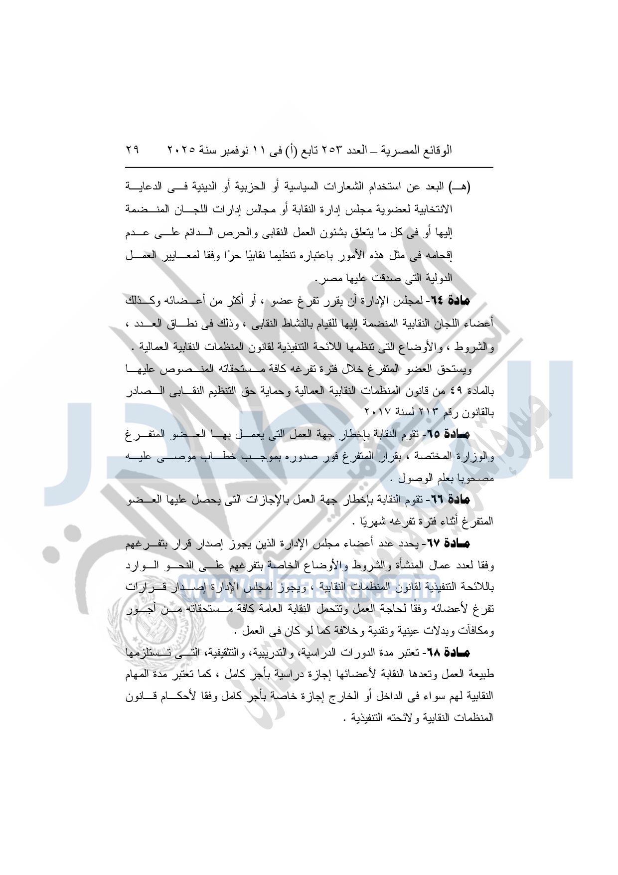 وقررت الجمعية، اعتماد إجراء التعديلات على بعض مواد لائحة النظام الأساسي والمالي للنقابة العامة على أن يتم العمل بها اعتبارا من 23-4-2025 وكذلك نشرها بالجريدة الرسمية.