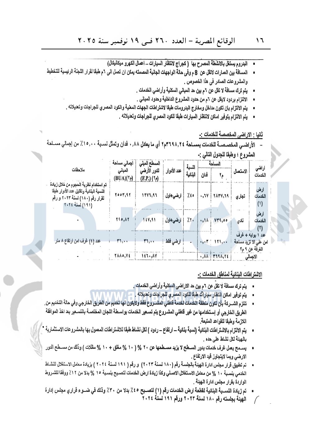 تلتزم الشركة المخصص لها قطعة الأرض بالتعهد الموقع منها بأن تكون مناطق الخدمات بالمشروع لخدمة قاطني المشروع فقط، وفي حالة التخديم من الخارج يتم إعادة تسعير منطقة الخدمات بواسطة اللجان المختصة بالهيئة بعد موافقة قطاع التخطيط والمشروعات.