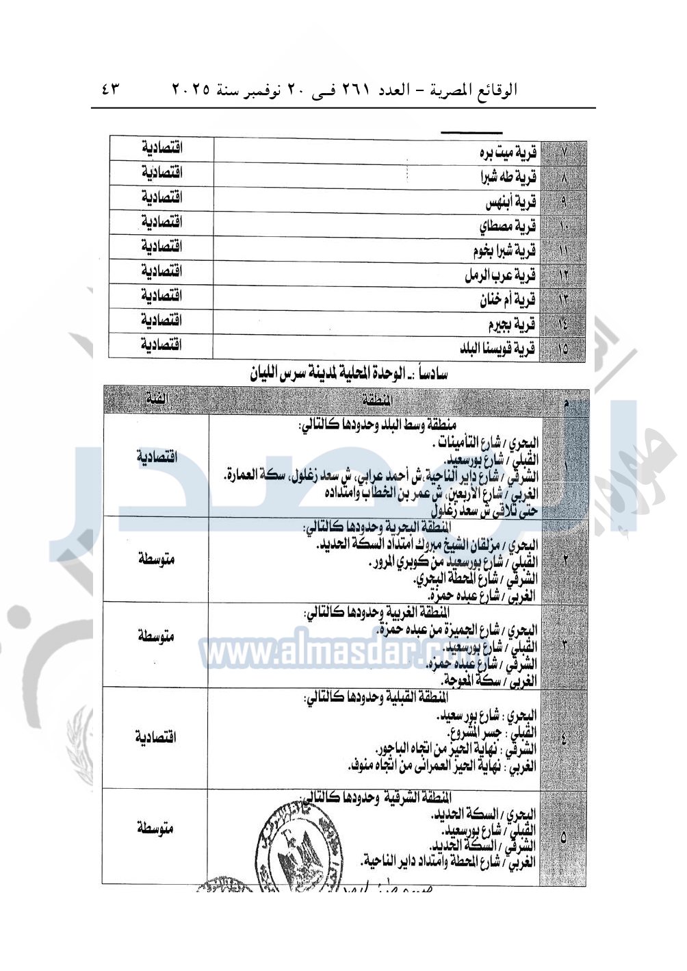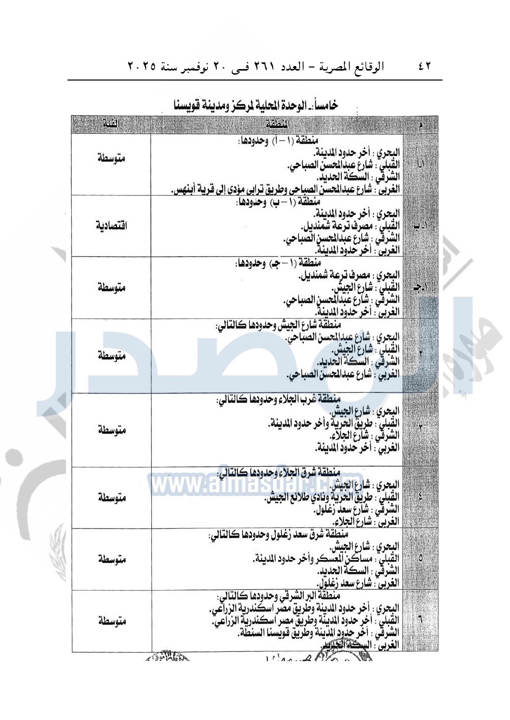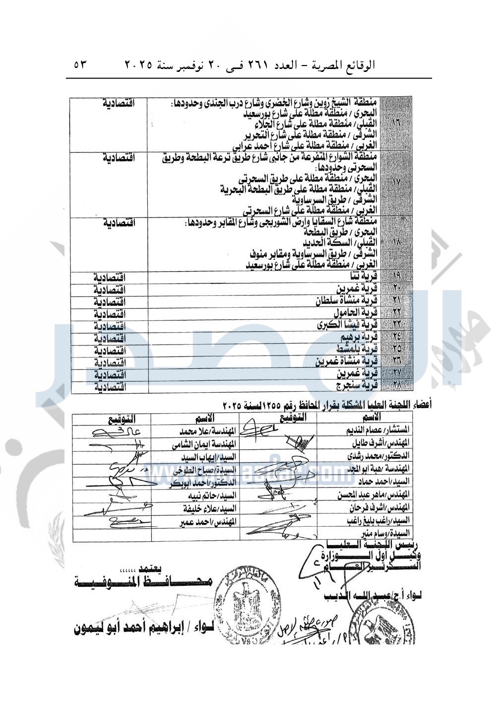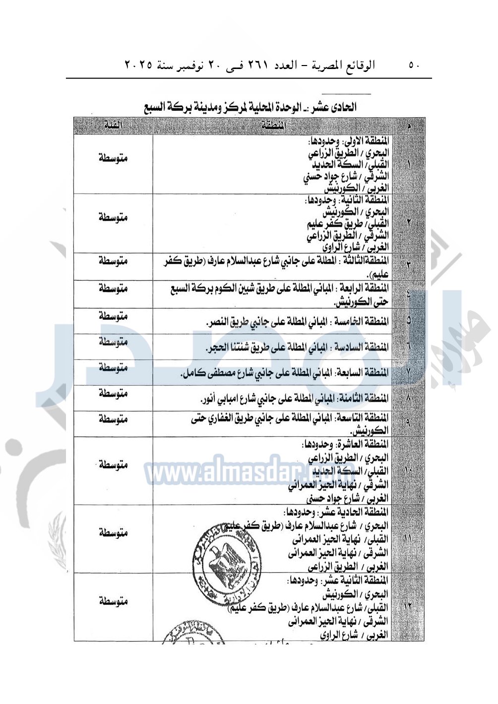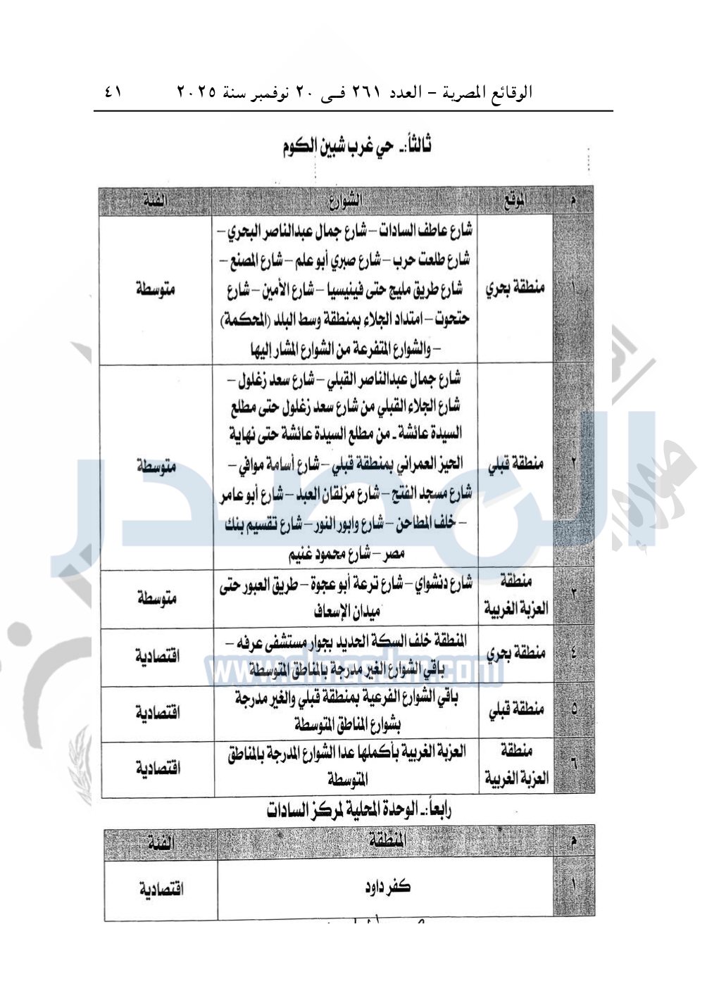 نشرت الوقائع المصرية في العدد 261، الصادر في 20 نوفمبر سنة 2025، محافظة المنوفية، قرار رقم 1675 لسنة 2025، بشأن تقسيم المناطق التي بها أماكن مؤجرة لغرض السكني بمحافظة المنوفية.