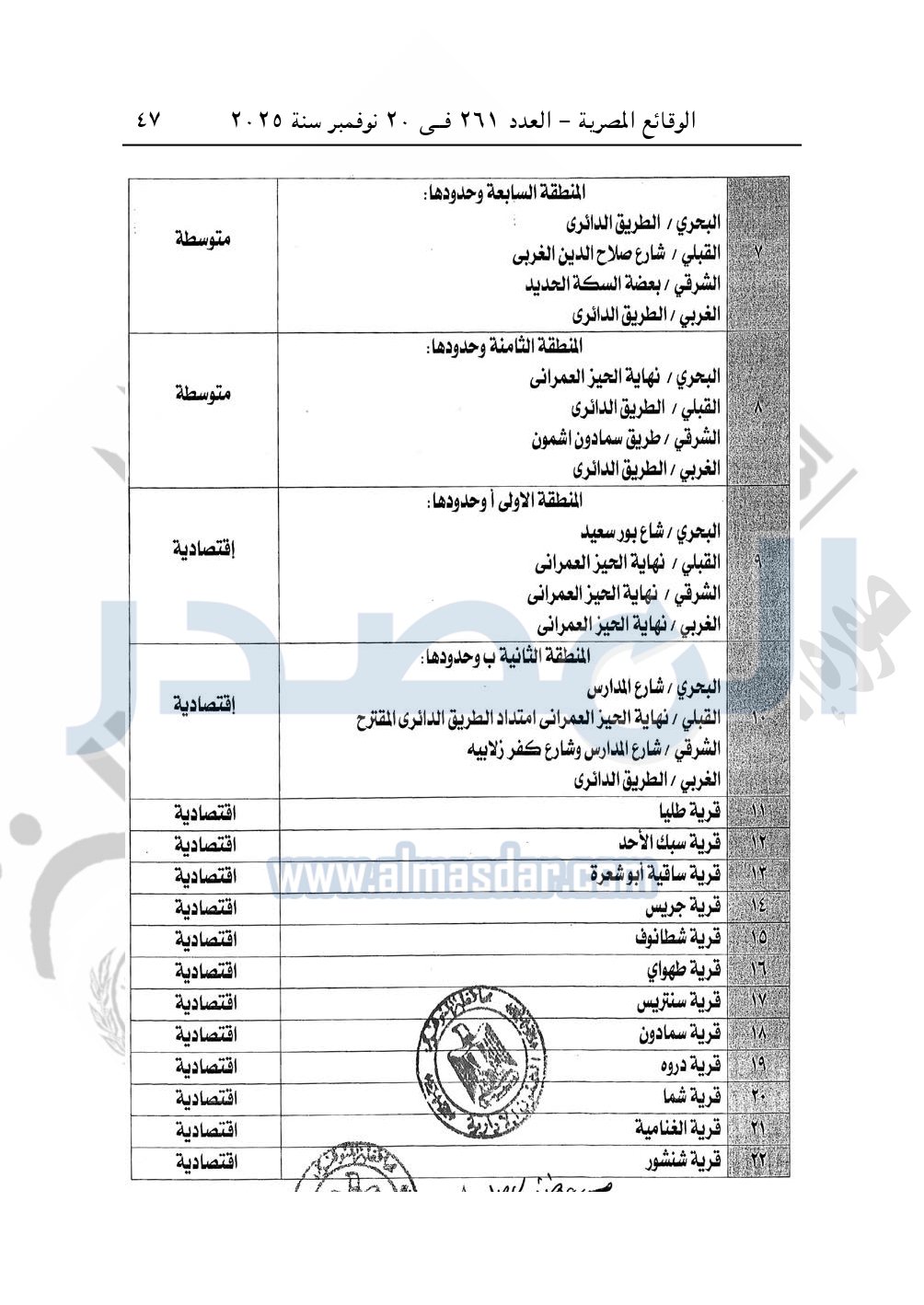 تقسم المناطق التي بها أماكن مؤجرة لغرض السكني الخاضعة لأحكام القانون رقم 164 لسنة 2025 المشار إليه ، وفقًا لما انتهت إليه اللجنة العليا لحصر المناطق التي بها أماكن مؤجرة لغرض السكني بناءً على ما ورد إليها من اللجان الفرعية بالوحدات المحلية للمراكز والمدن والأحياء والمشكلة بقرار المحافظ رقم 1255 لسنة 2025 وذلك على النحو الموضح بالكشوف المرفقة بهذا القرار.