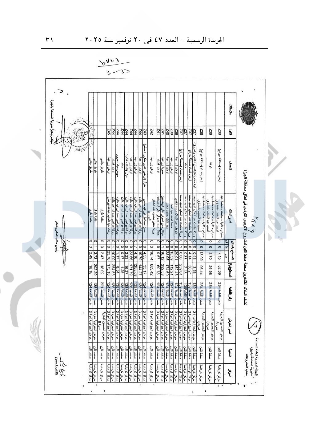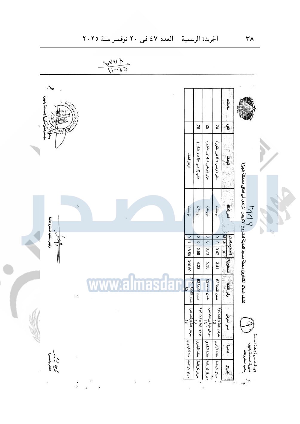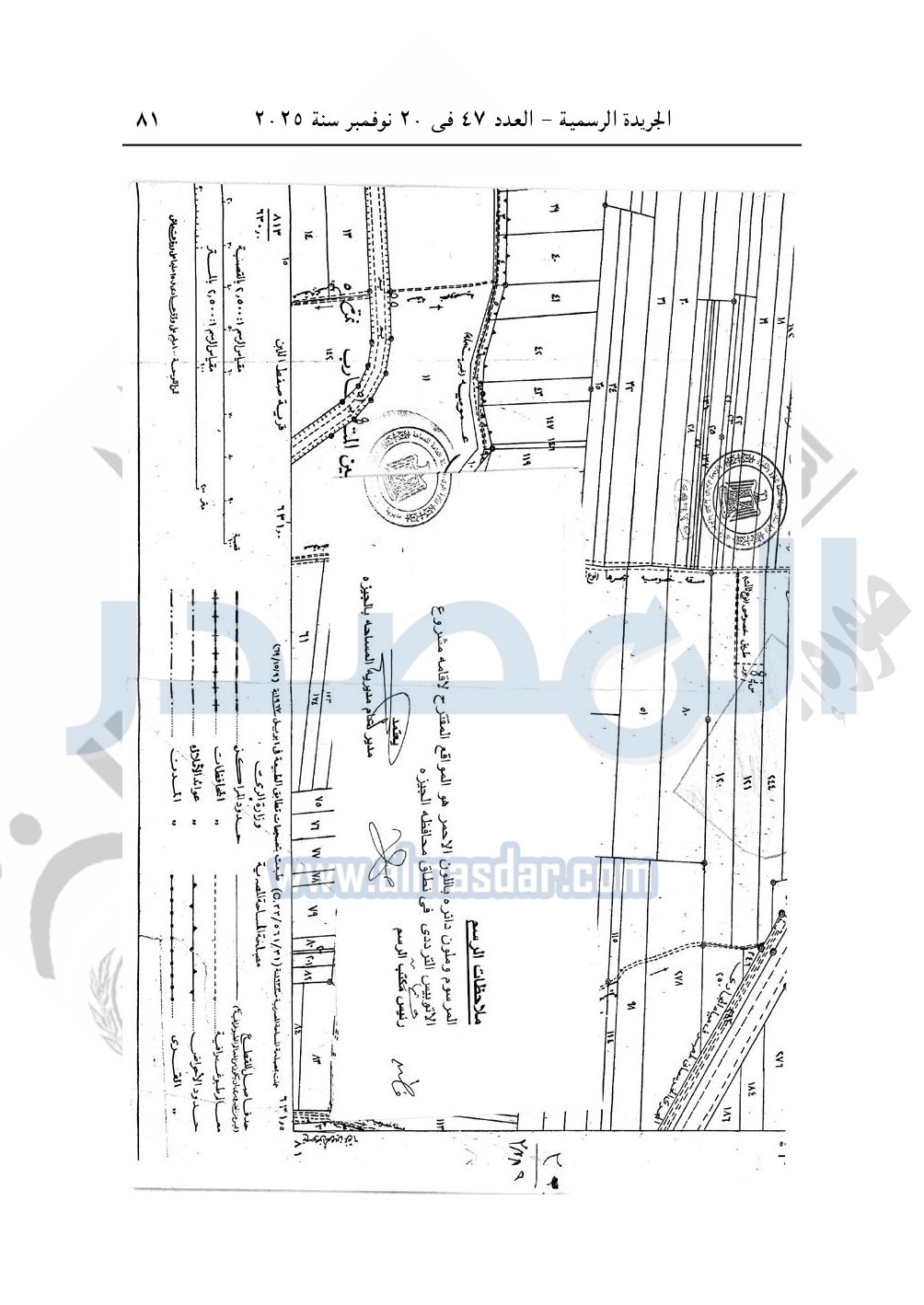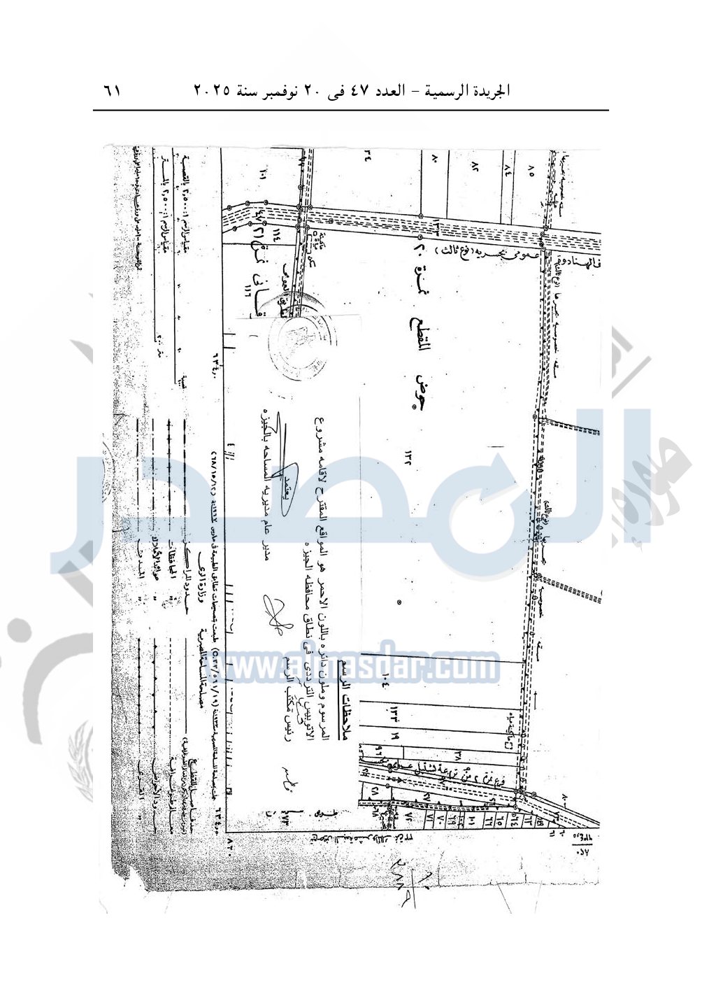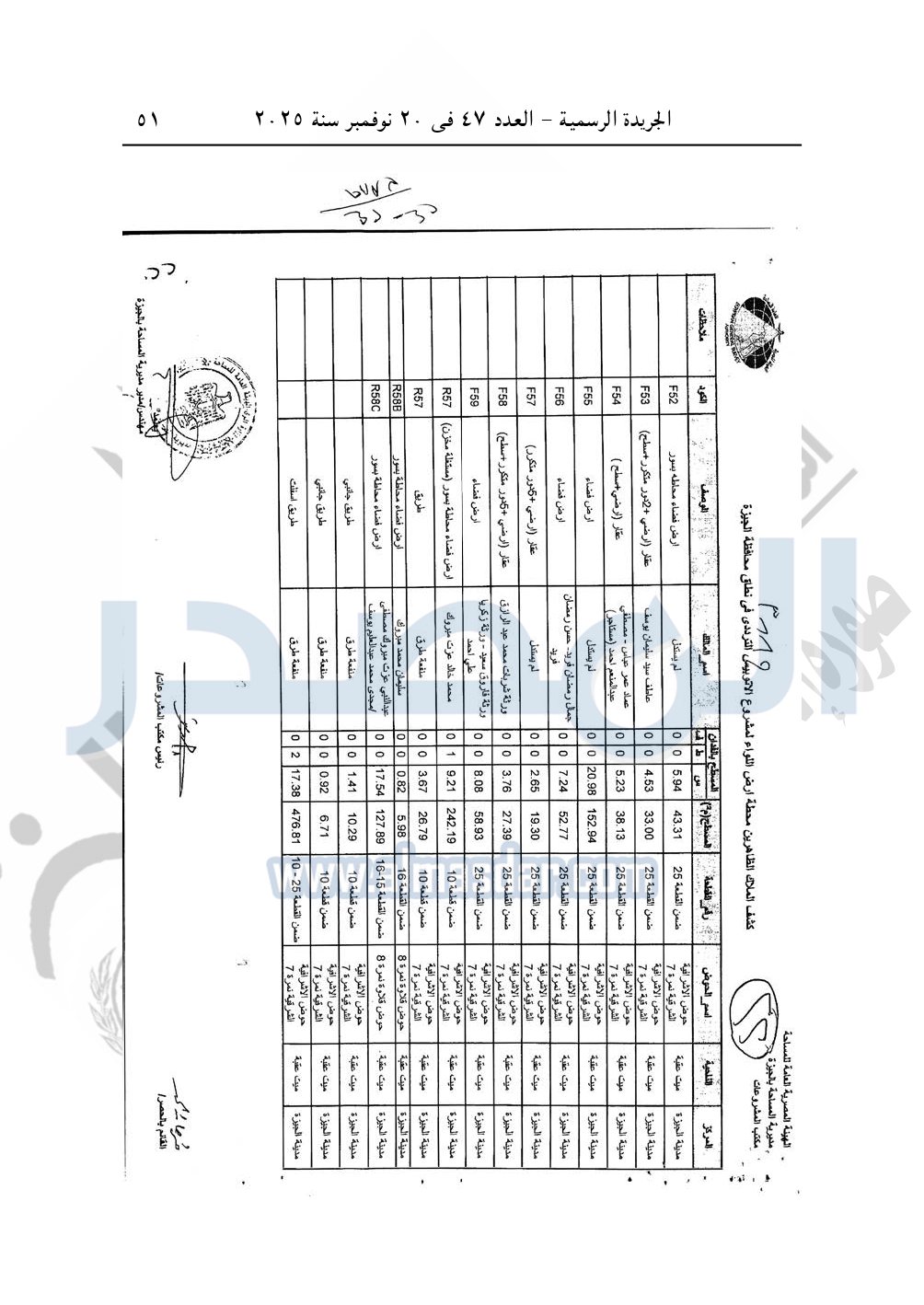 نشرت الجريدة الرسمية في العدد 47، بتاريخ 20 نوفمبر 2025، قرار رئيس مجلس الوزراء، رقم 3889 لسنة 2025، بشأن نزع ملكية قطع أراضي لإنشاء محطات الأتوبيس الترددي السريع على الطريق الدائري بمحافظة الجيزة.