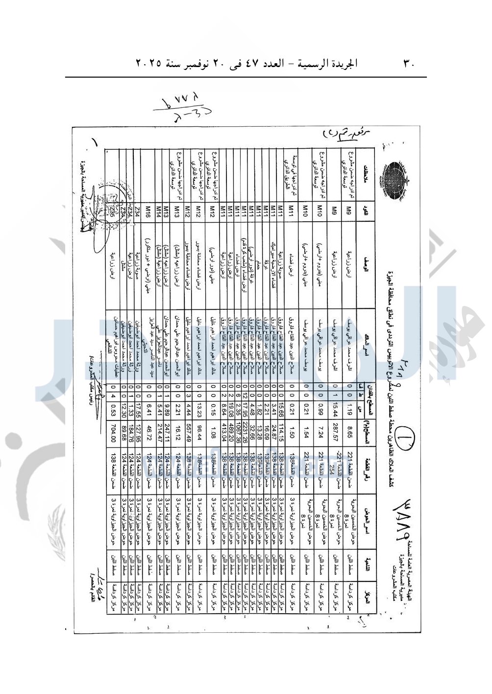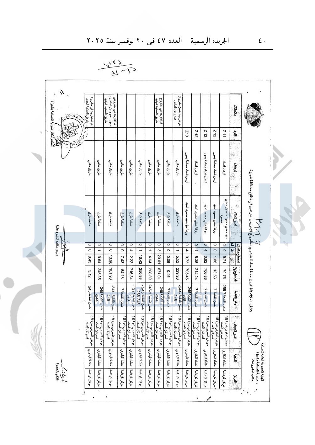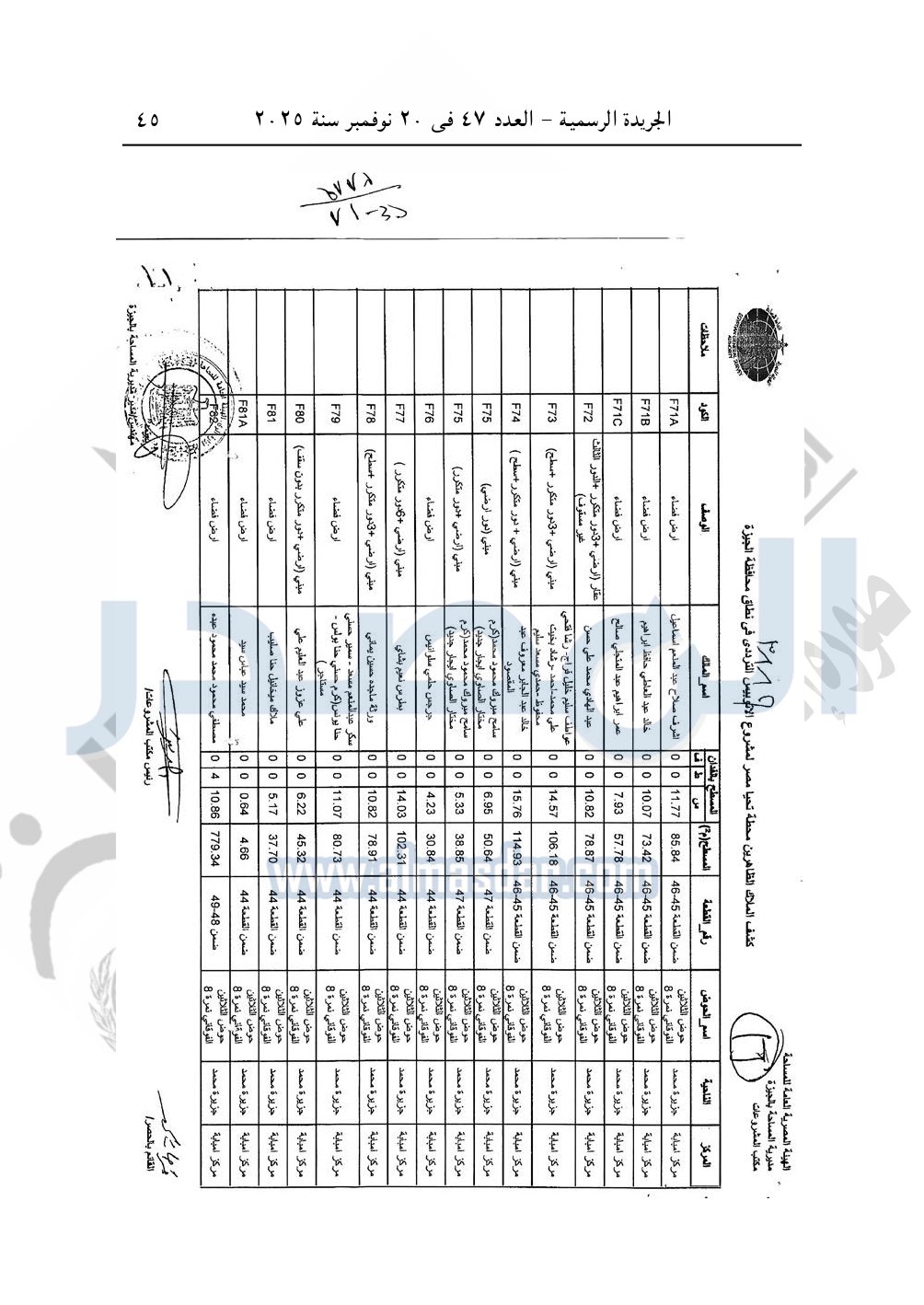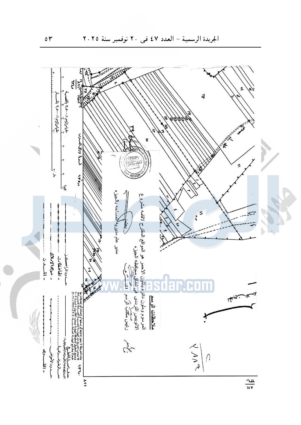نشرت الجريدة الرسمية في العدد 47، بتاريخ 20 نوفمبر 2025، قرار رئيس مجلس الوزراء، رقم 3889 لسنة 2025، بشأن نزع ملكية قطع أراضي لإنشاء محطات الأتوبيس الترددي السريع على الطريق الدائري بمحافظة الجيزة.