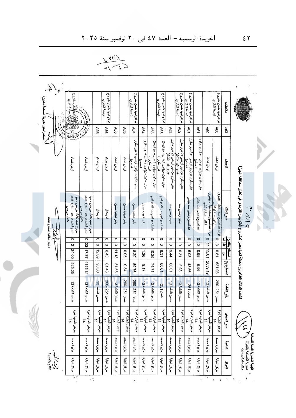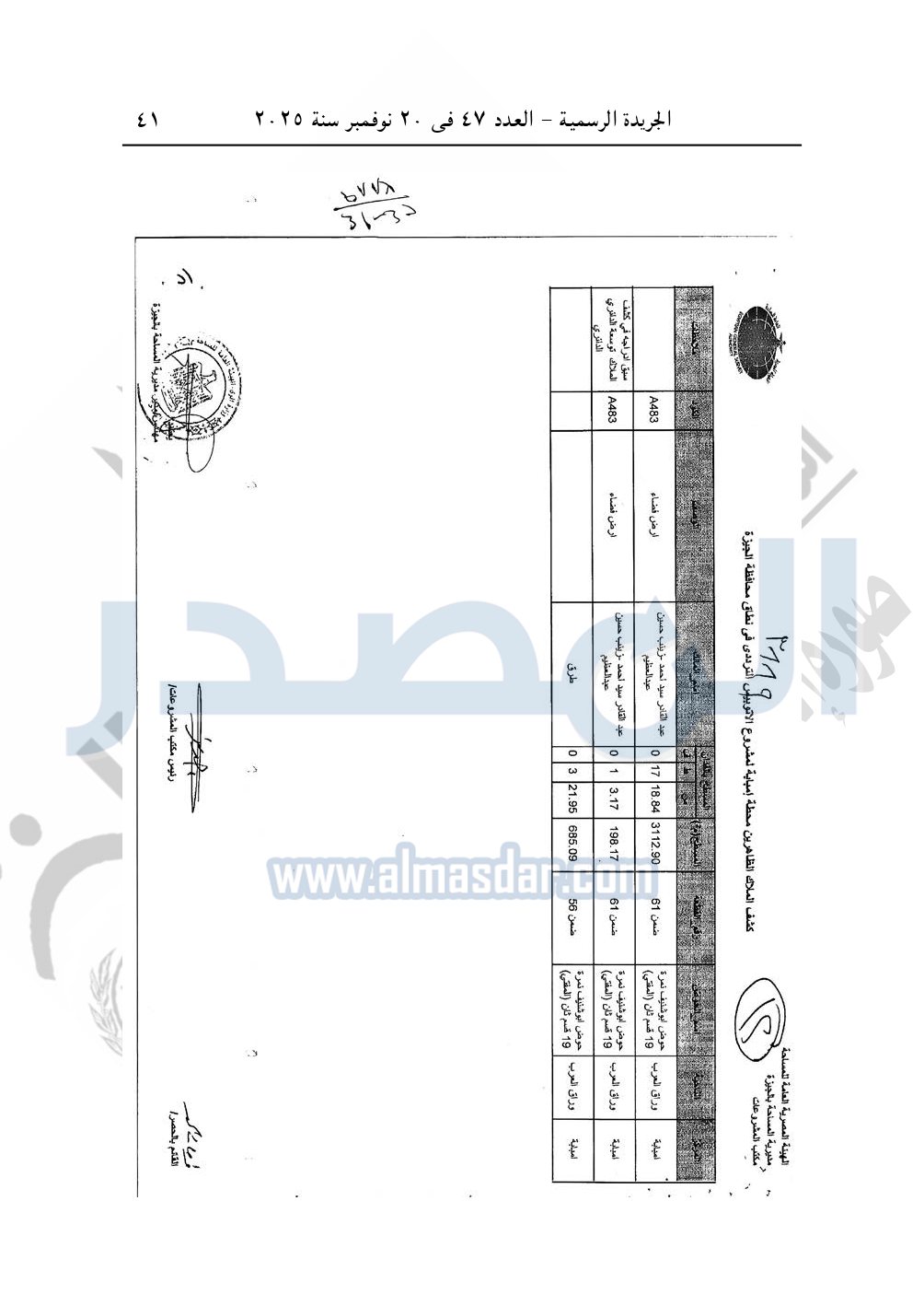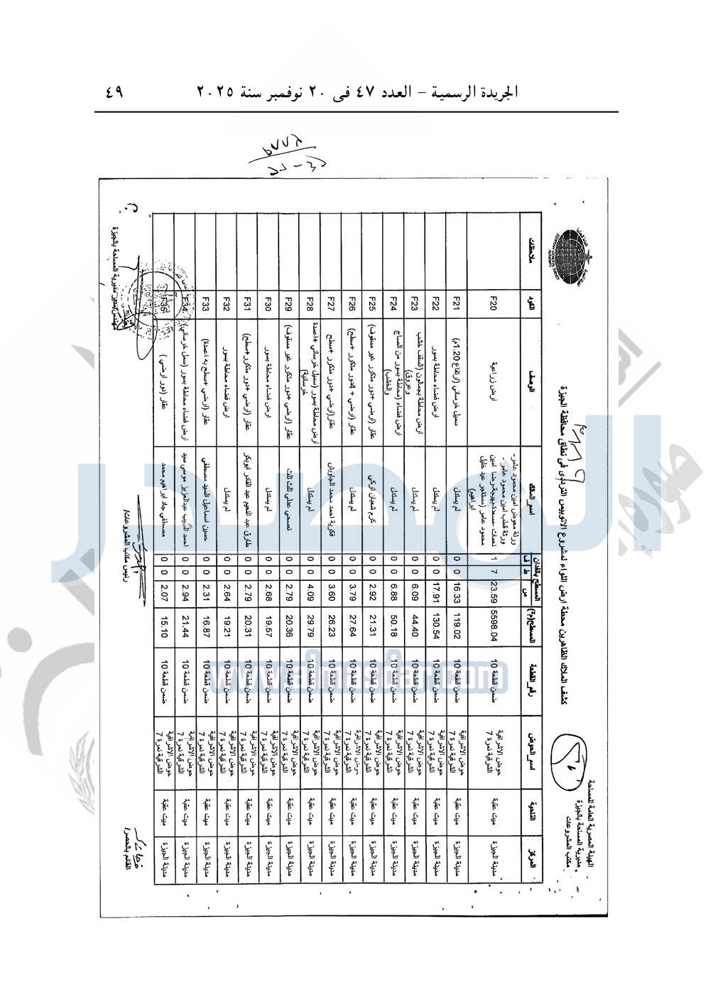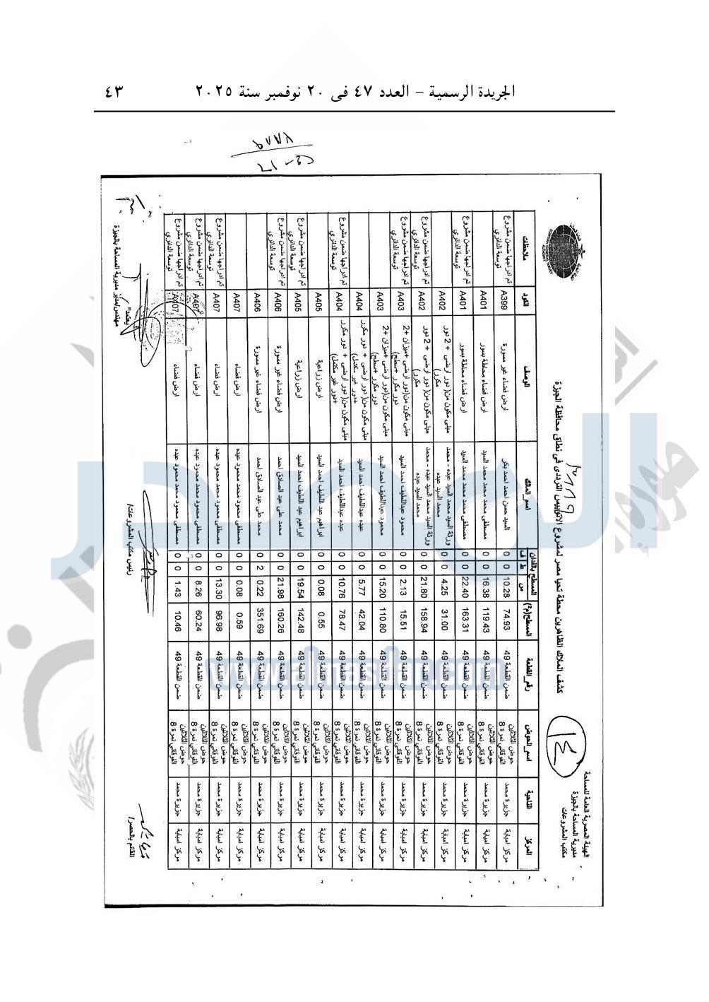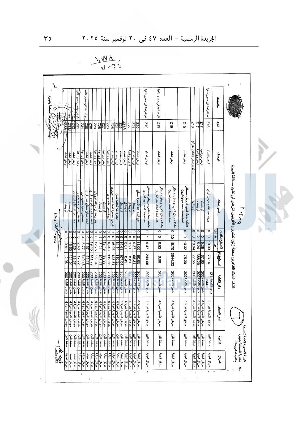 نشرت الجريدة الرسمية في العدد 47، بتاريخ 20 نوفمبر 2025، قرار رئيس مجلس الوزراء، رقم 3889 لسنة 2025، بشأن نزع ملكية قطع أراضي لإنشاء محطات الأتوبيس الترددي السريع على الطريق الدائري بمحافظة الجيزة.
