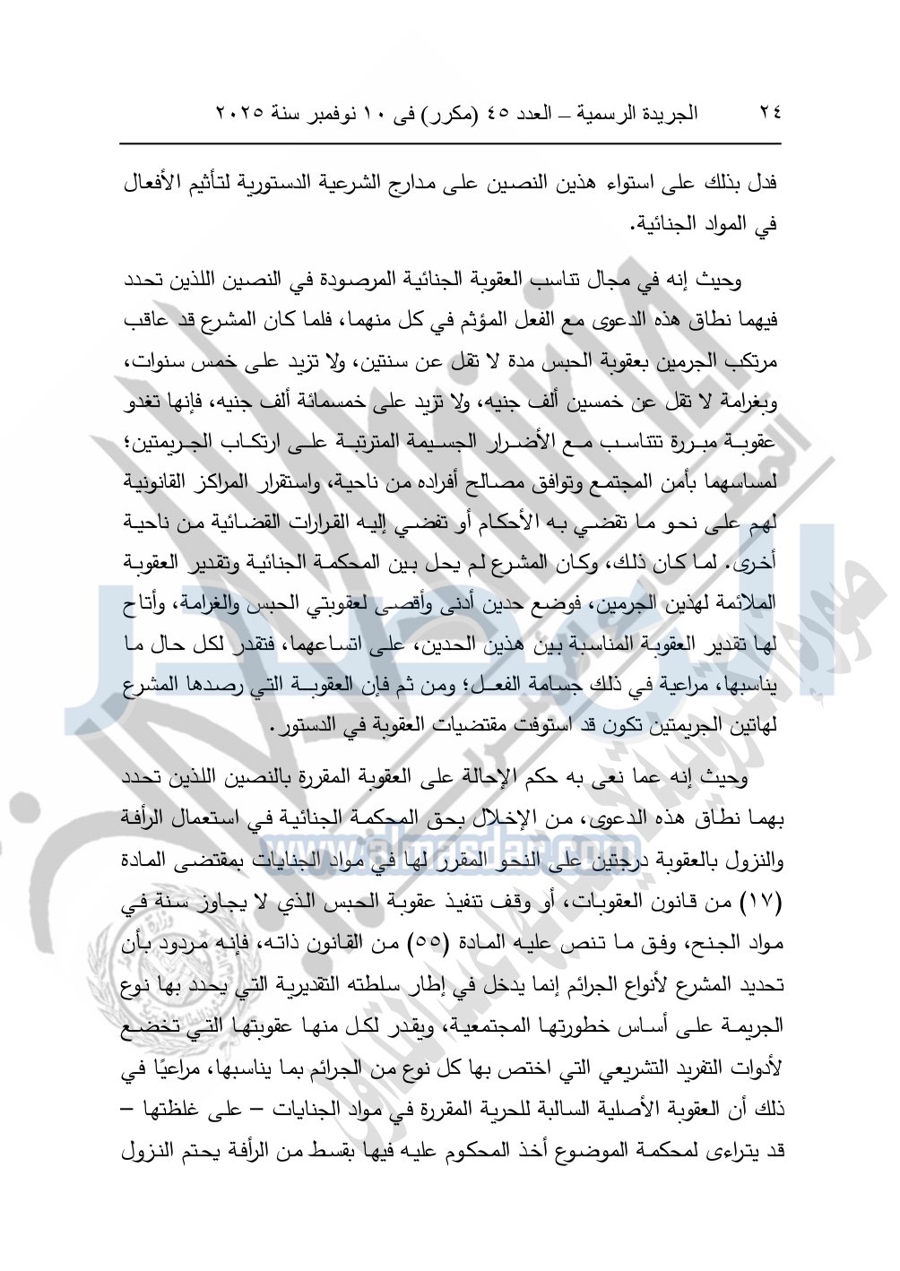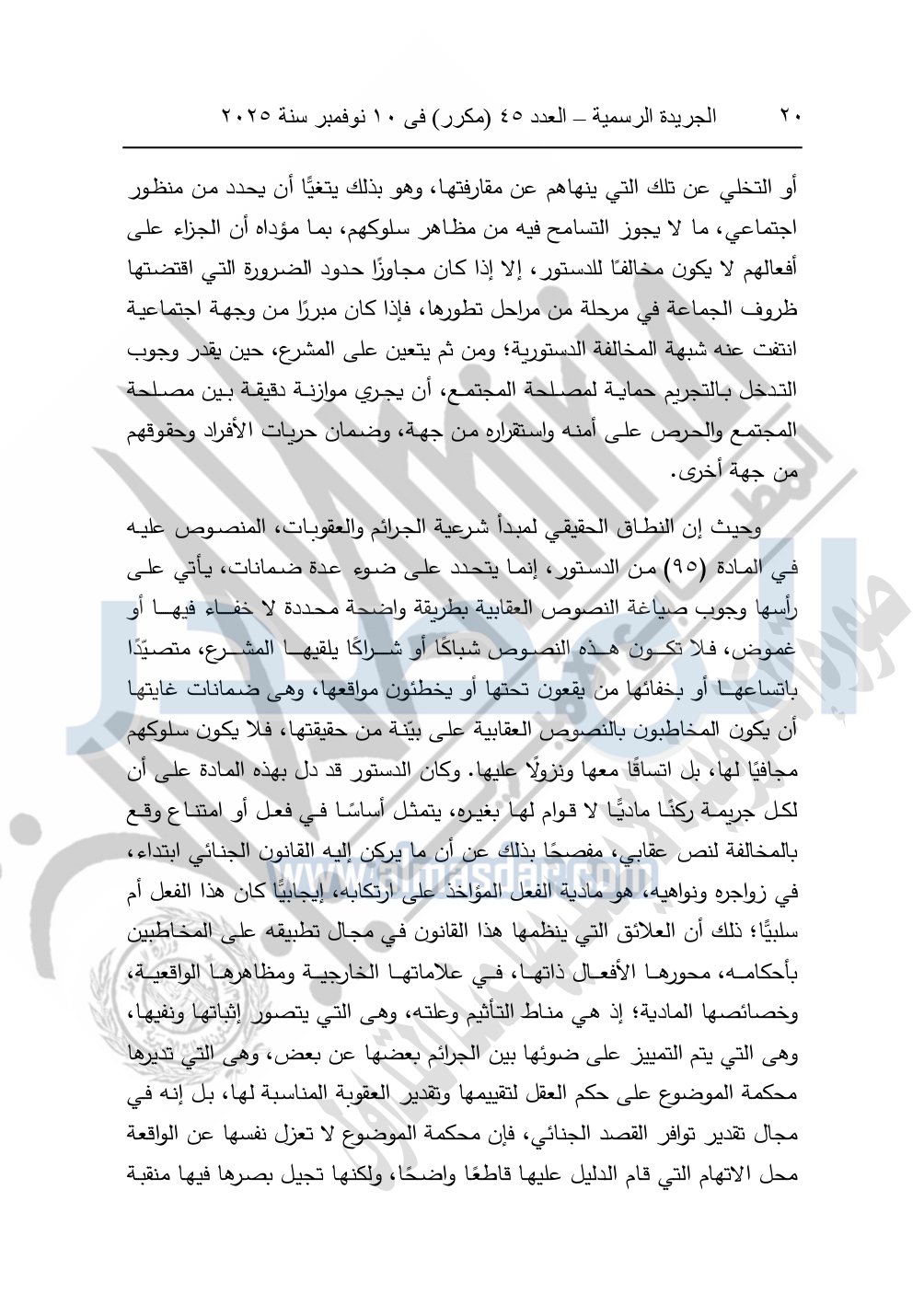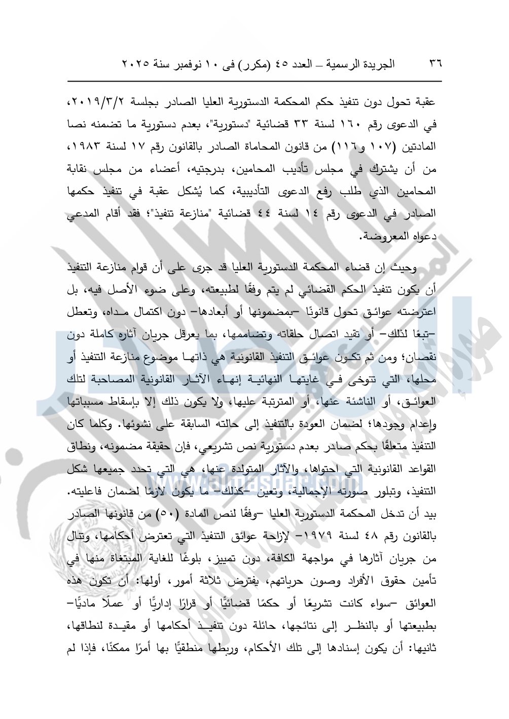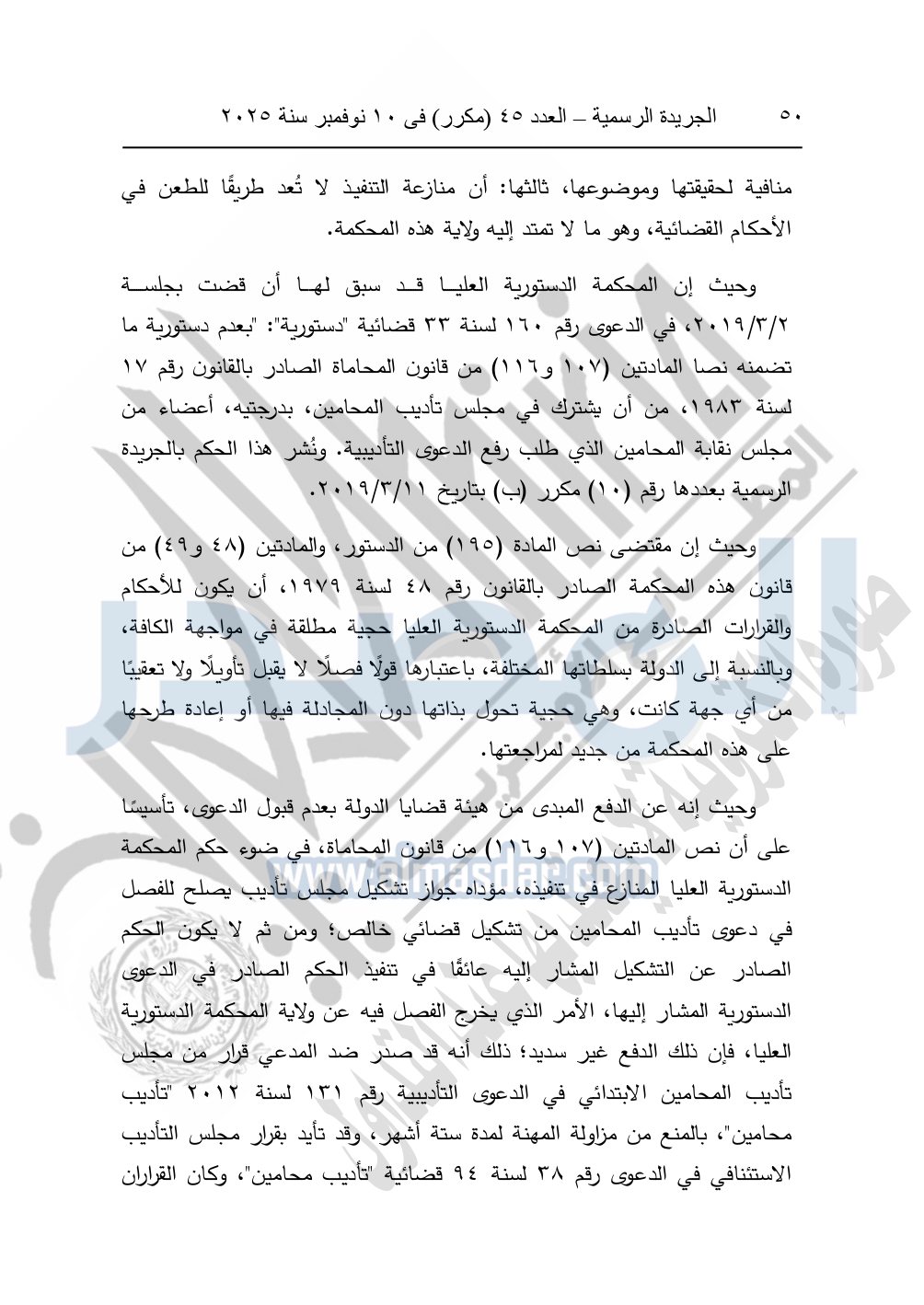 ونشرت الجريدة الرسمية في العدد 45 "مكرر"، في 10 نوفمبر سنة 2025، الأحكام الصادرة من المحكمة الدستورية العليا في عدد من الدعاوي القضائية بجلسة 8 نوفمبر 2025.