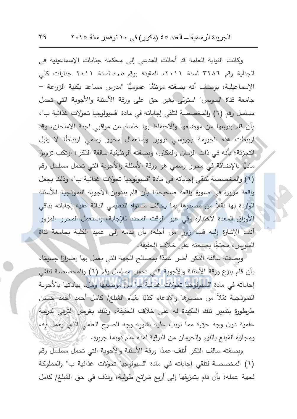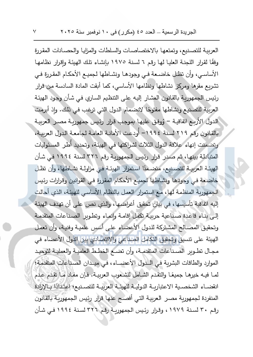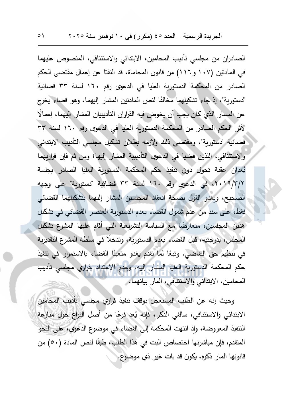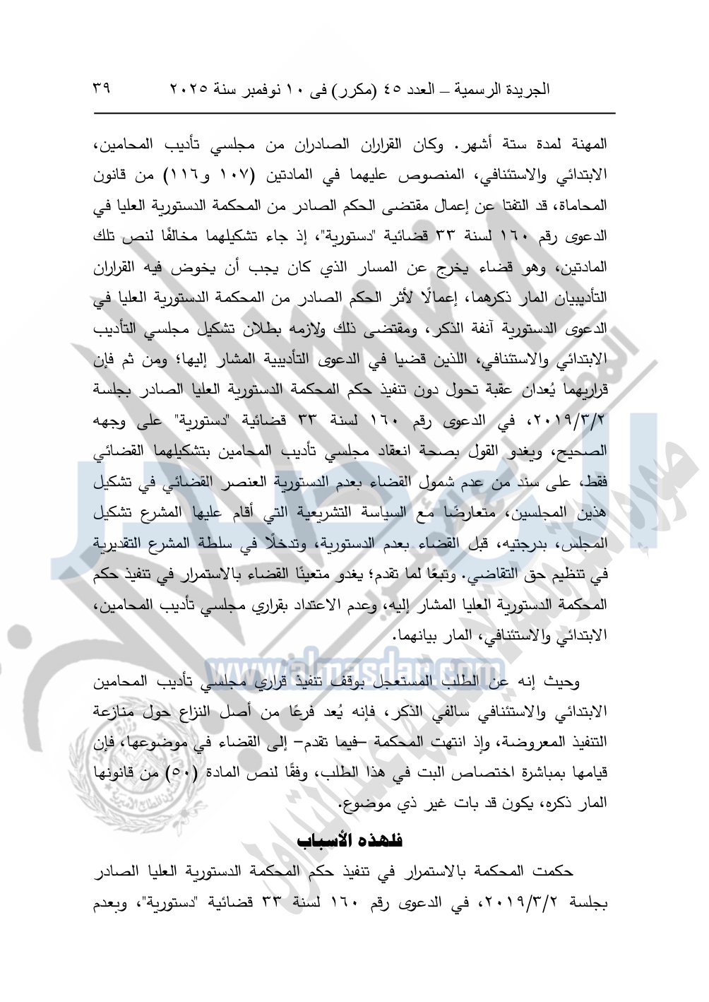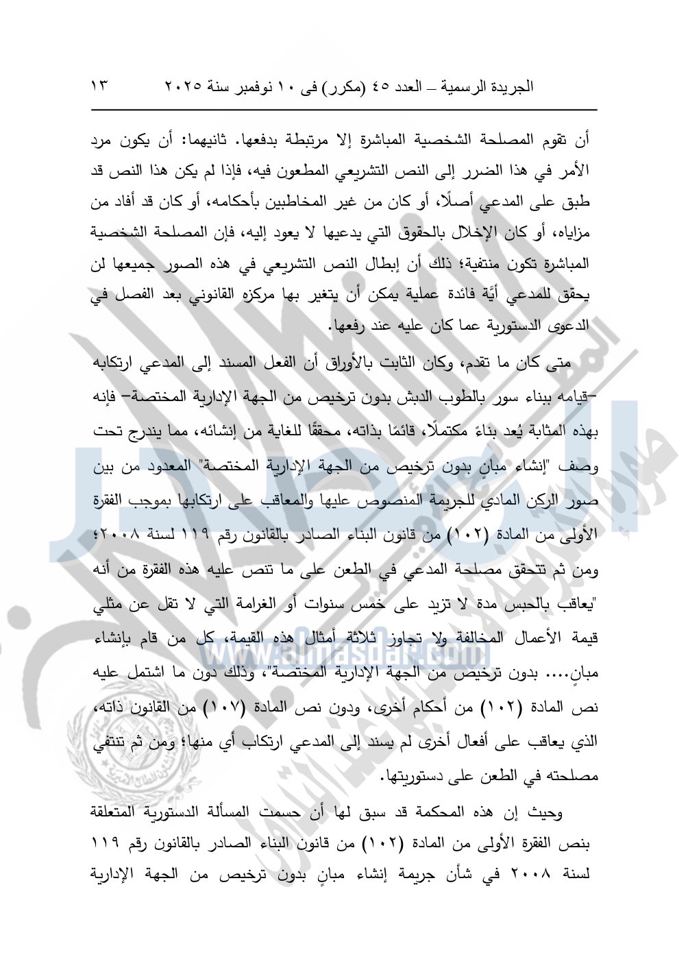 ونشرت الجريدة الرسمية في العدد 45 "مكرر"، في 10 نوفمبر سنة 2025، الأحكام الصادرة من المحكمة الدستورية العليا في عدد من الدعاوي القضائية بجلسة 8 نوفمبر 2025.