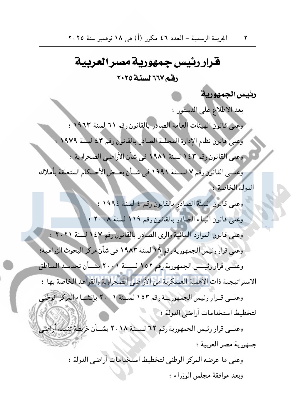 نشرت الجريدة الرسمية، في العدد 46 مكرر "أ"، الصادر في 18 نوفمبر سنة 2025، قرار رئيس جمهورية مصر العربية، رقم 667 لسنة 2025، بشأن إقامة سوق للخضر والفاكهة بمدينة طنطا.
