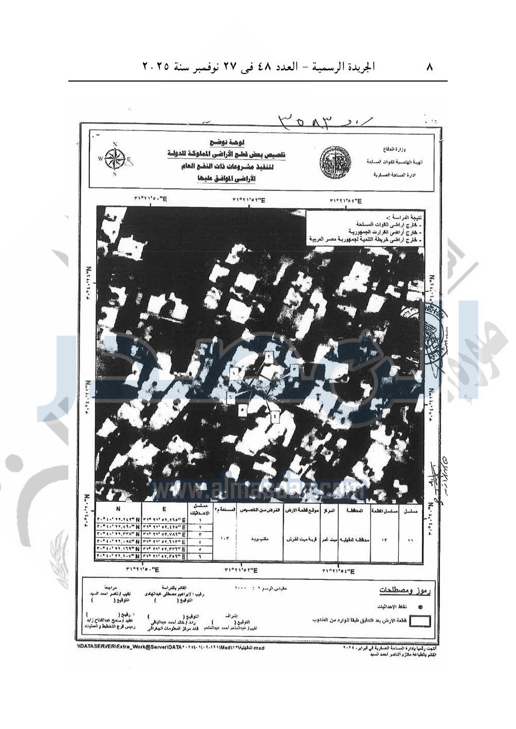 تخصص قطعة أرض من أملاك الدولة الخاصة بمساحة 103م2 زمام قرية میت القرشى ناحية قرية ميت الفرماوى التابعة للوحدة المحلية لمركز ومدينة ميت غمر بمحافظة الدقهلية، وفقًا للوحة وجدول الإحداثيات المرفقين، بإيجار اسمى مقداره خمسة جنيهات، لصالح الهيئة القومية للبريد لإقامة مكتب بريد.