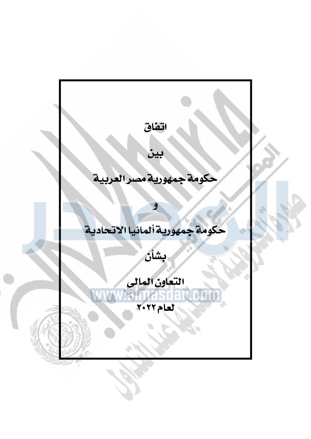أوافق على اتفاق "التعاون المالي لعام 2022" بين حكومة جمهورية مصر العربية، وحكومة جمهورية ألمانيا الاتحادية، وذلك مع ا التحفظ بشرط التصديق.