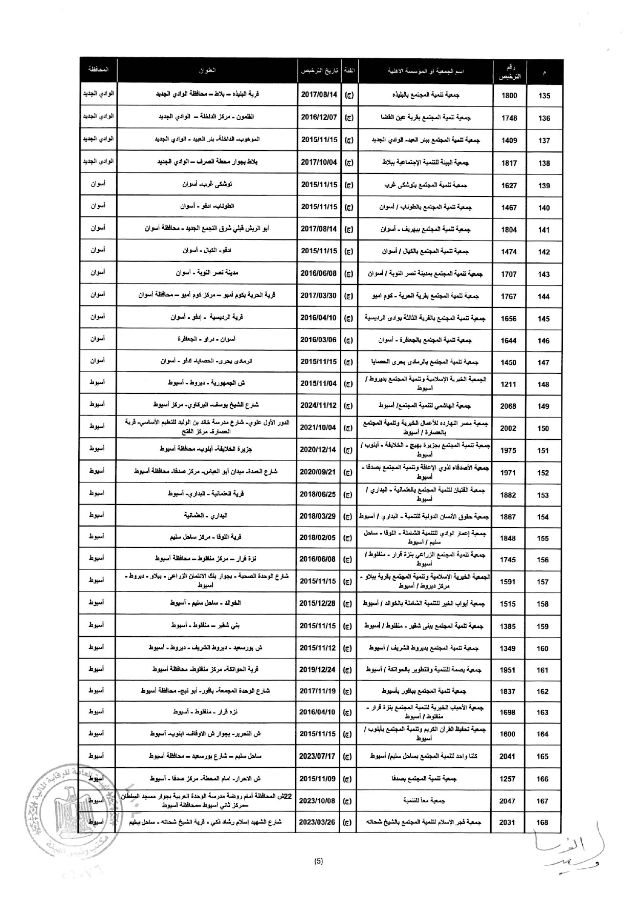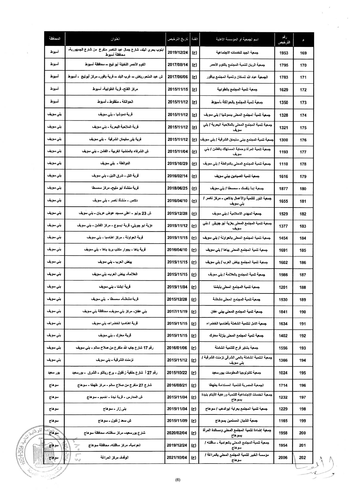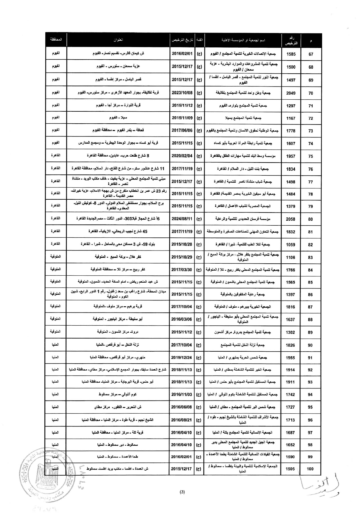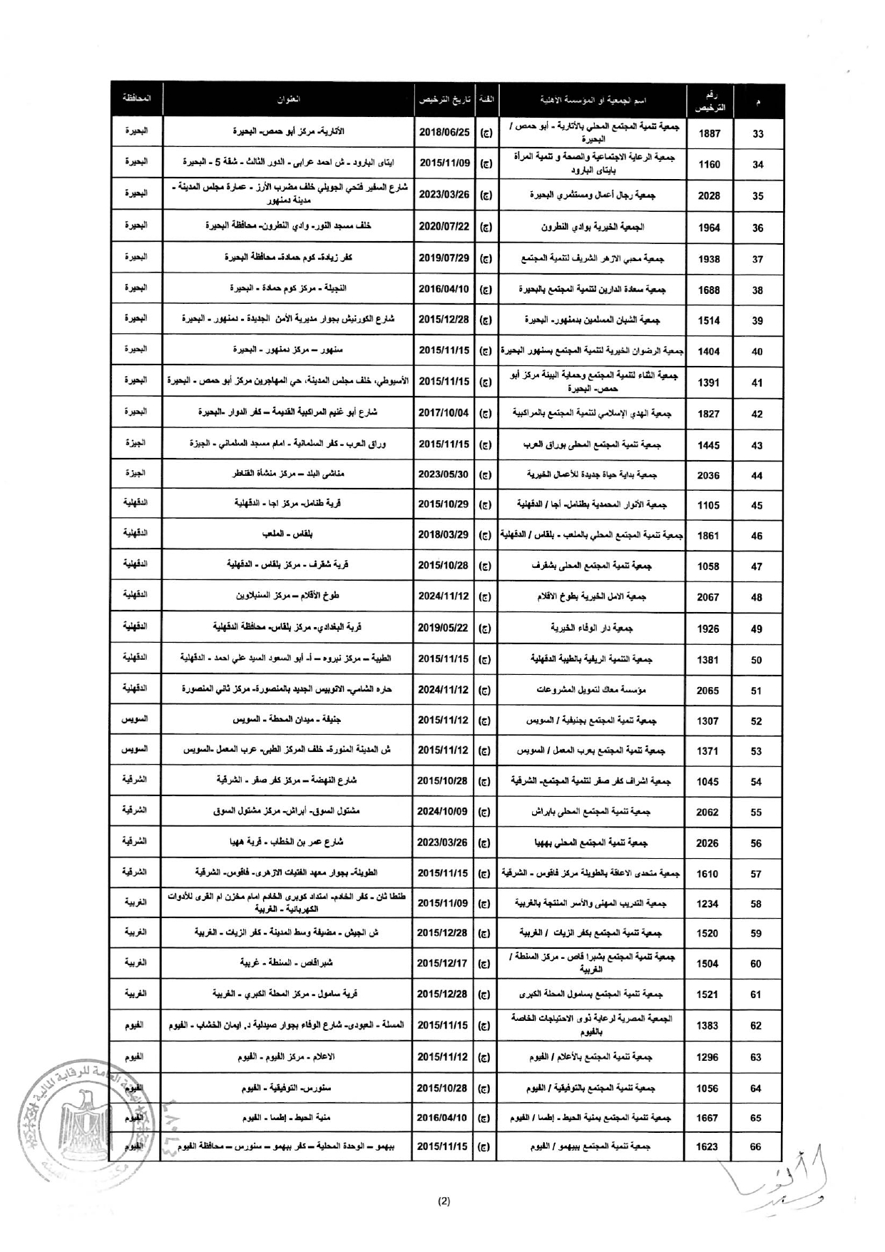 إلغاء ترخيص مزاولة نشاط التمويل متناهى الصغر لعدد "260" جمعية ومؤسسة أهلية المذكورين بالمحلق المرافق لهذا القرار وذلك إعمالًا لأحكام المادة 13 مكرر 1 من القانون رقم 141 لسنة 2014.