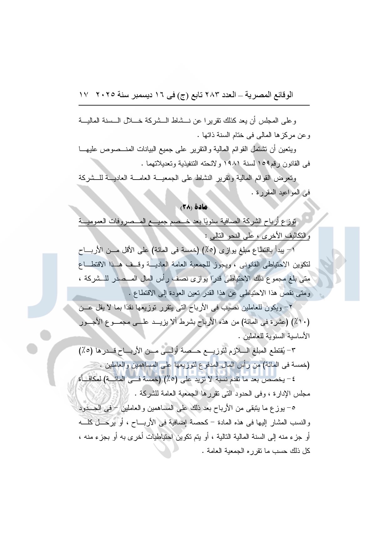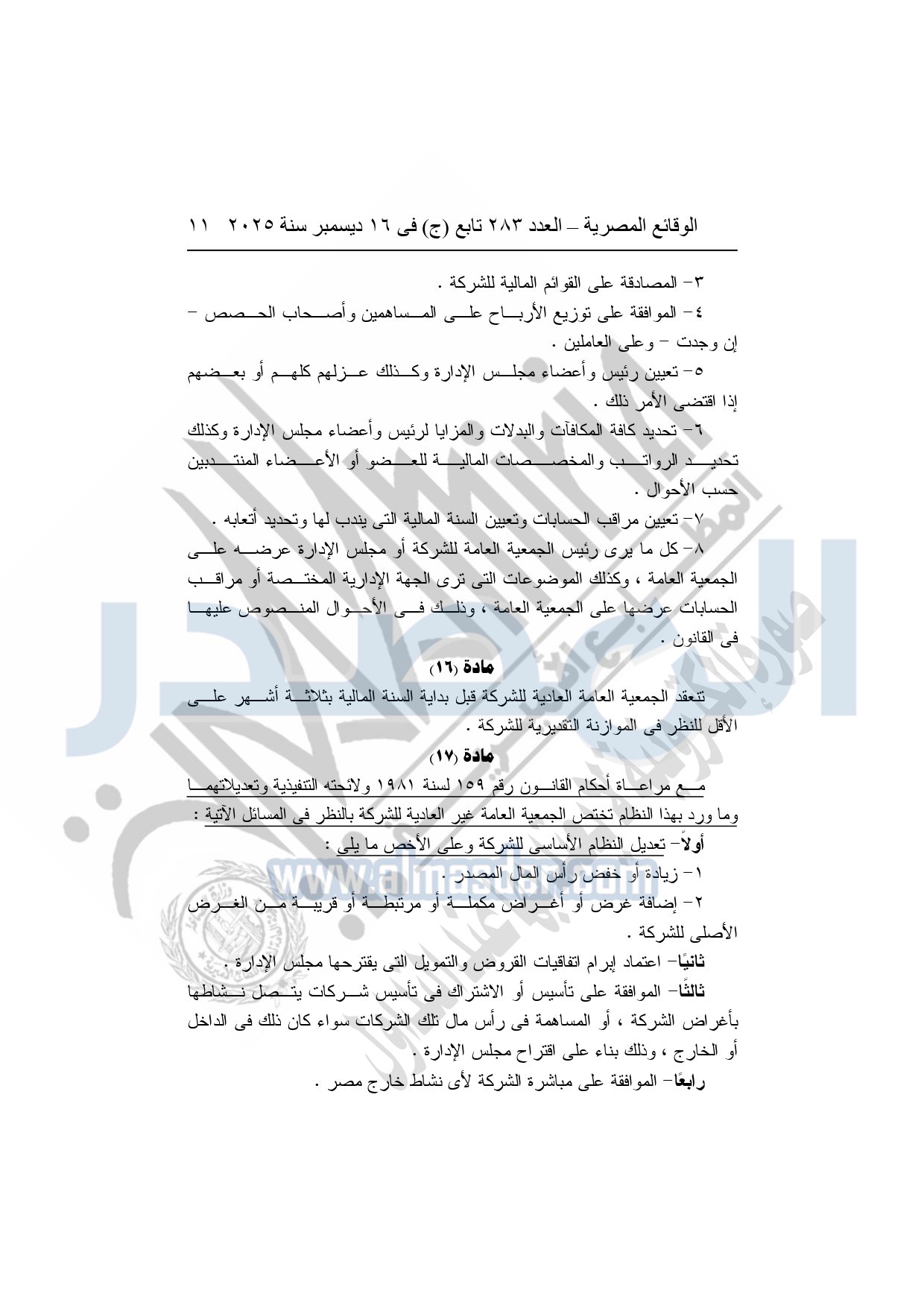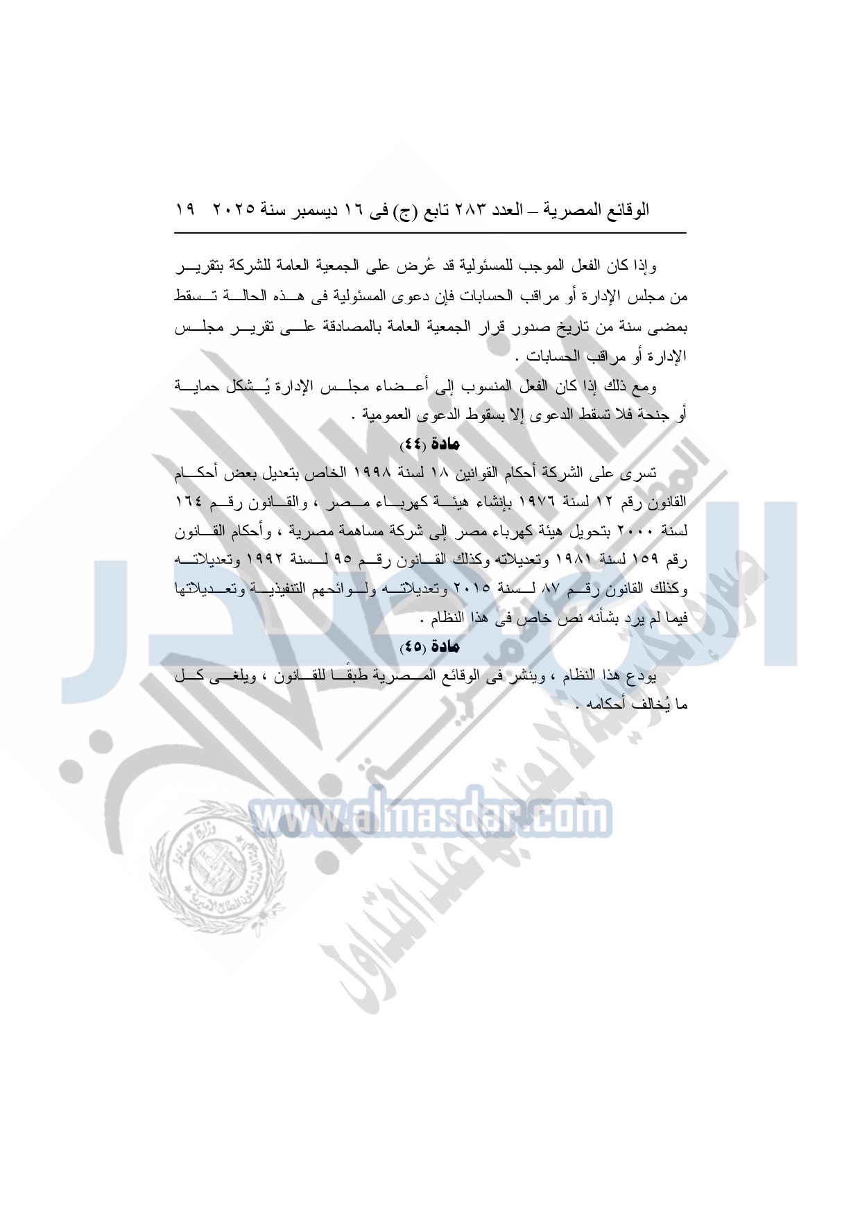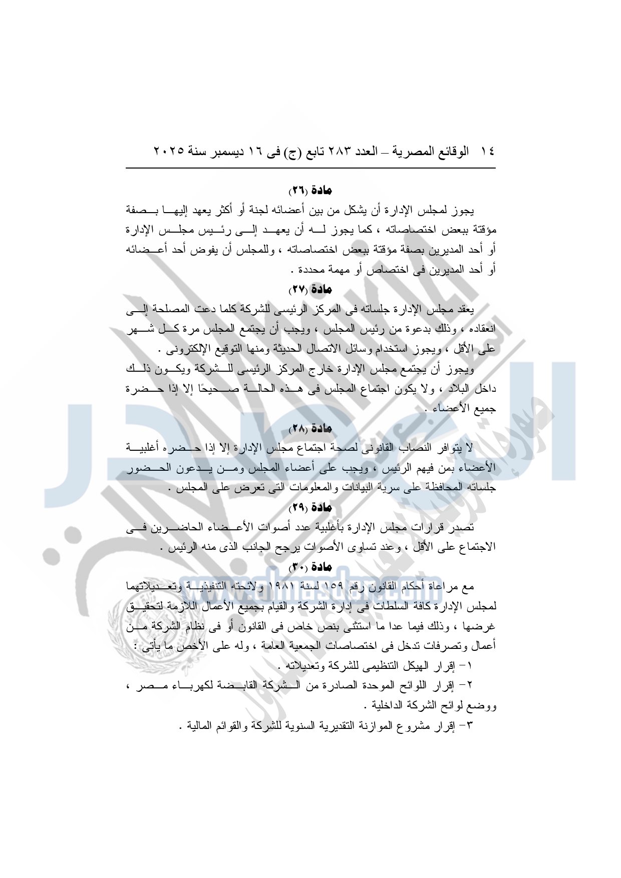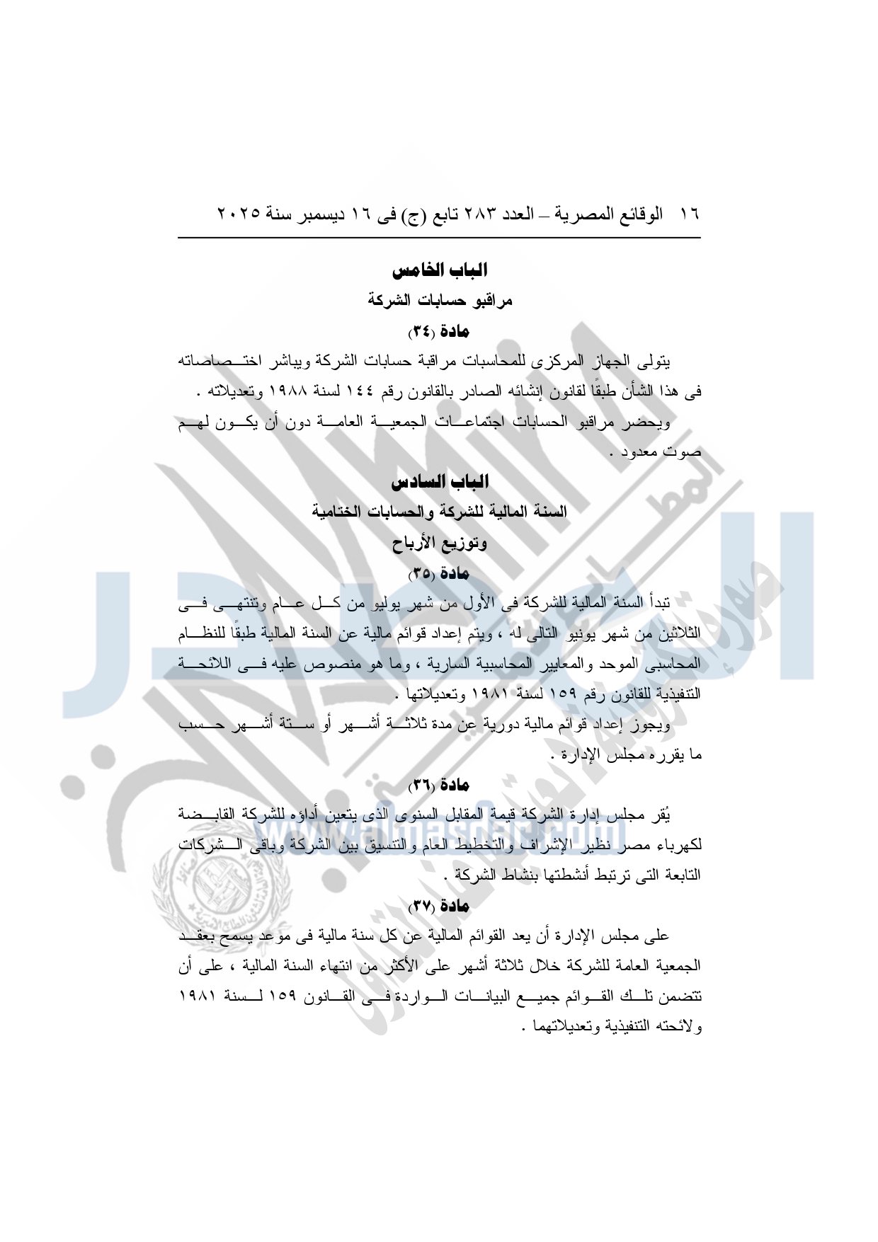 نشرت الوقائع المصرية في العدد 283 تابع "ج" الصادر في 16 ديسمبر سنة 2025، الشركة القابضة لكهرباء مصر، قرار الجمعية العامة غير العادية لشركة وسط الدلتا لإنتاج الكهرباء، المنعقدة بتاريخ 16-11-2025.