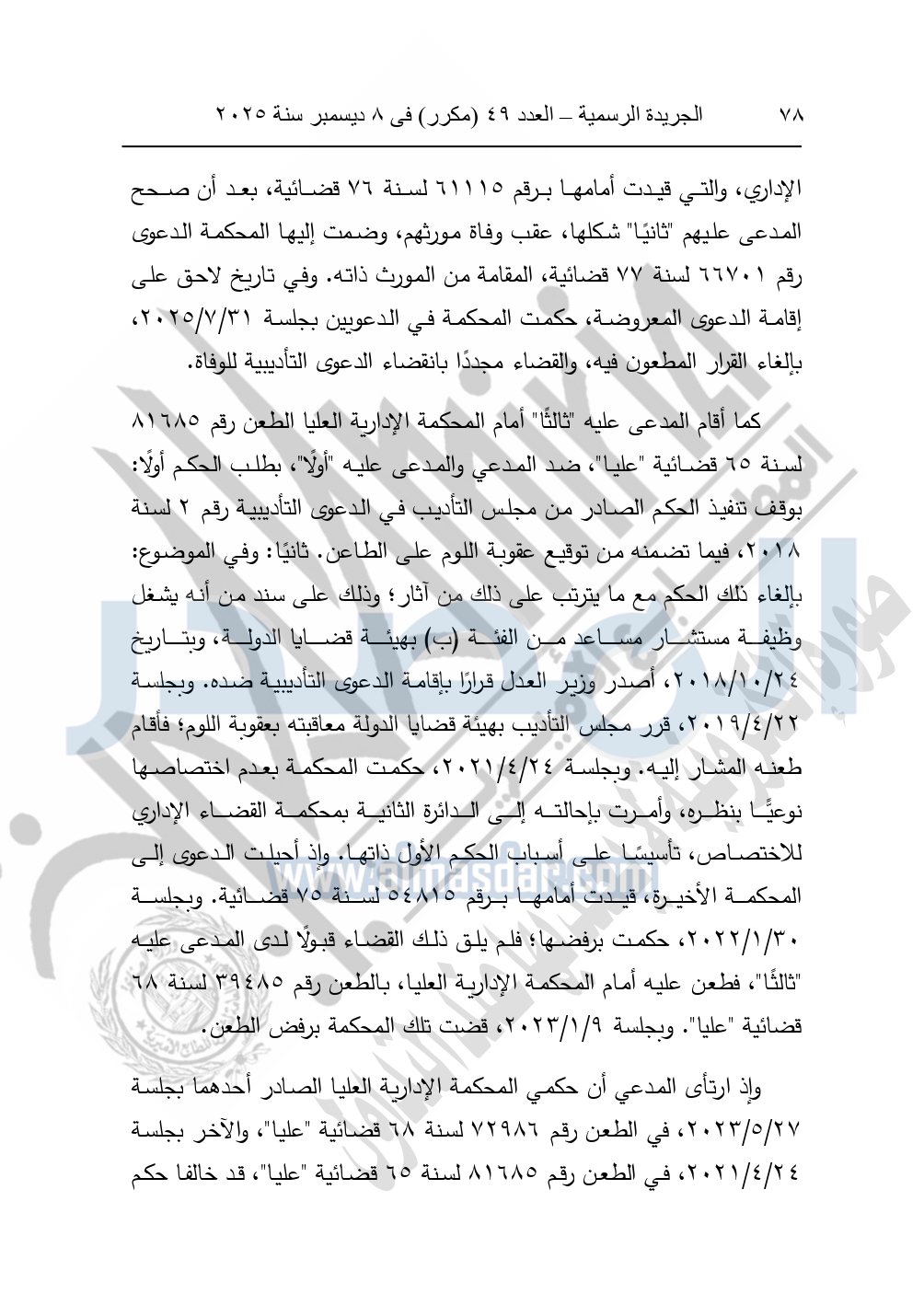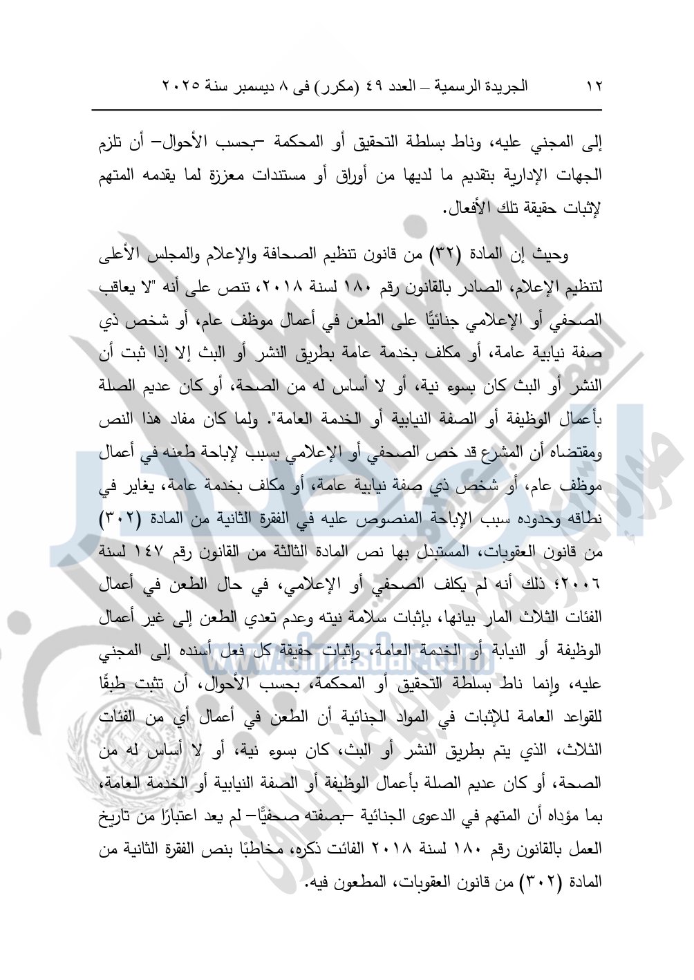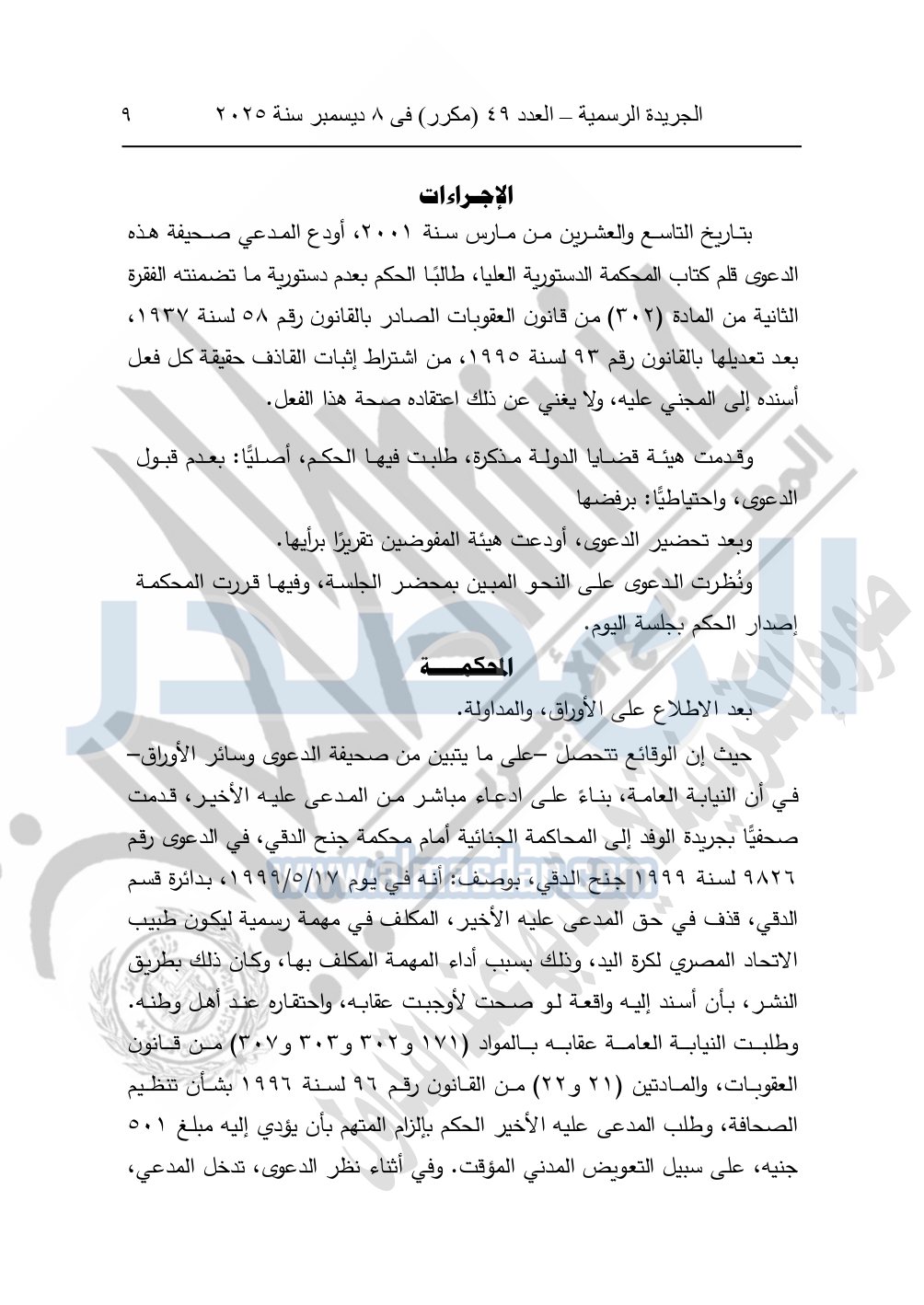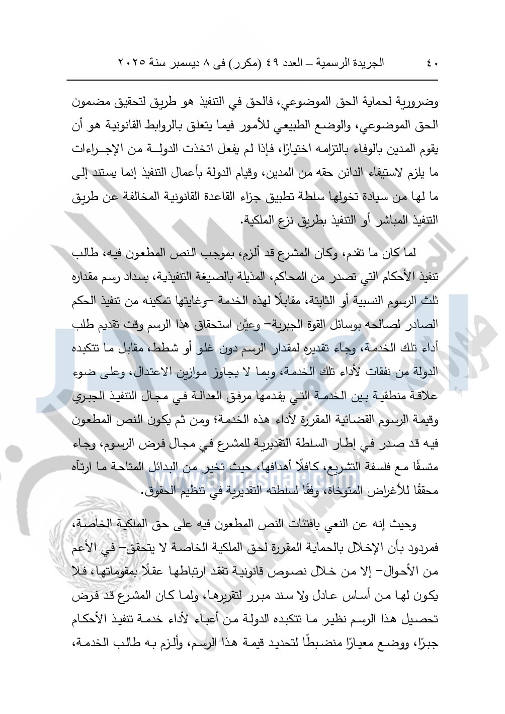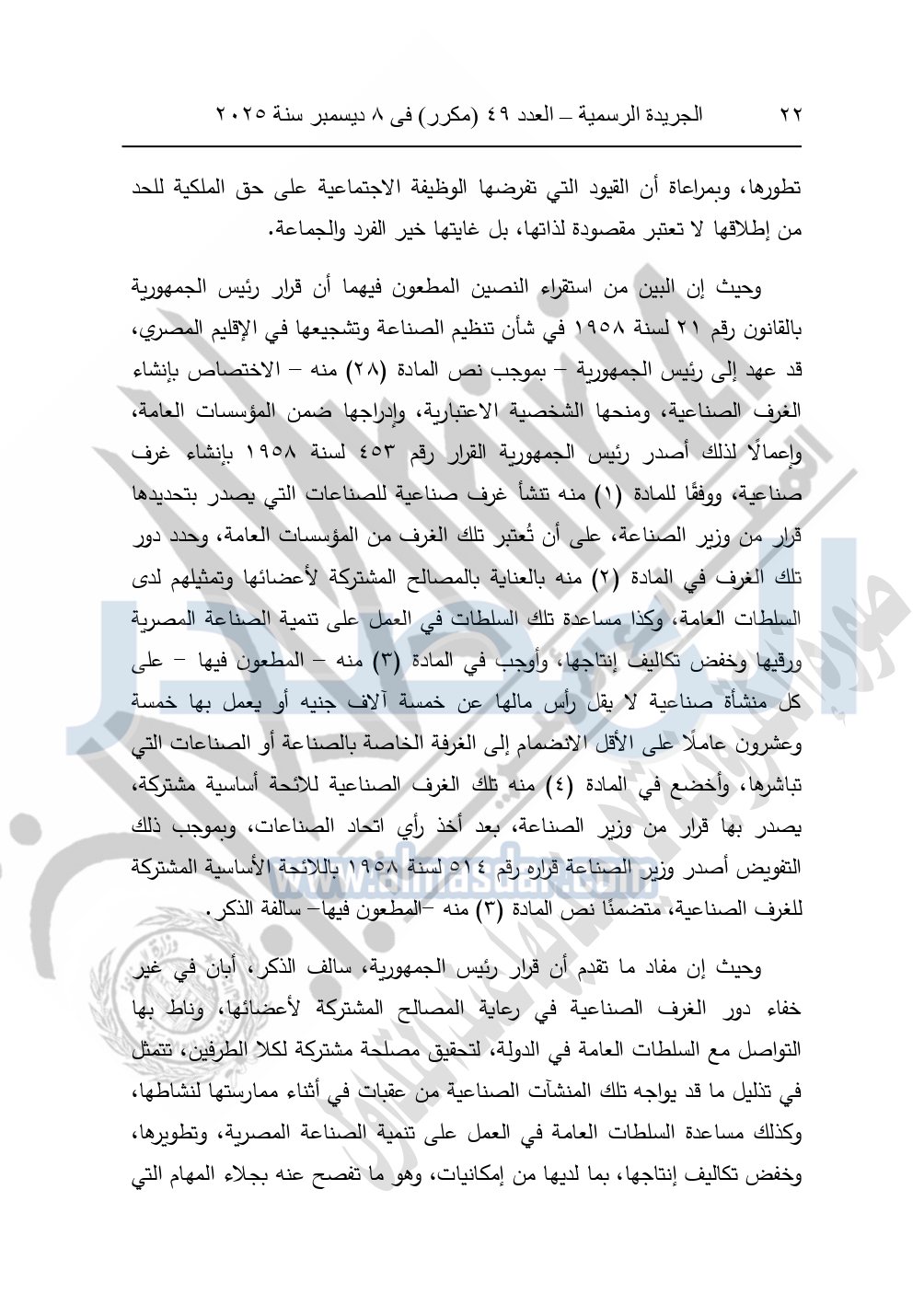 ونشرت الجريدة الرسمية في العدد 49 "مكرر"، في 6 أكتوبر سنة 2025، الأحكام الصادرة من المحكمة الدستورية العليا في عدد من الدعاوي القضائية بجلسة 6 ديسمبر 2025.