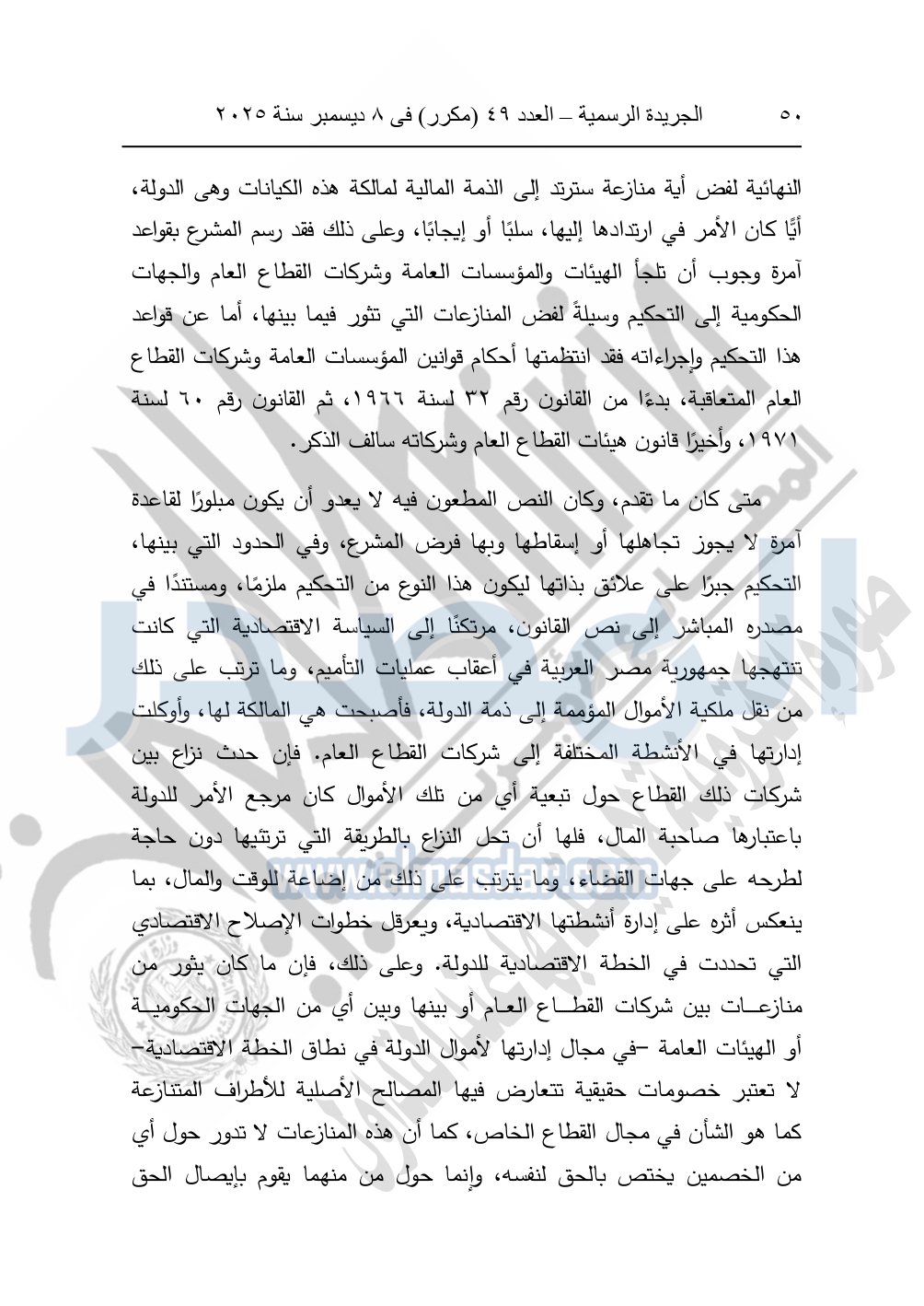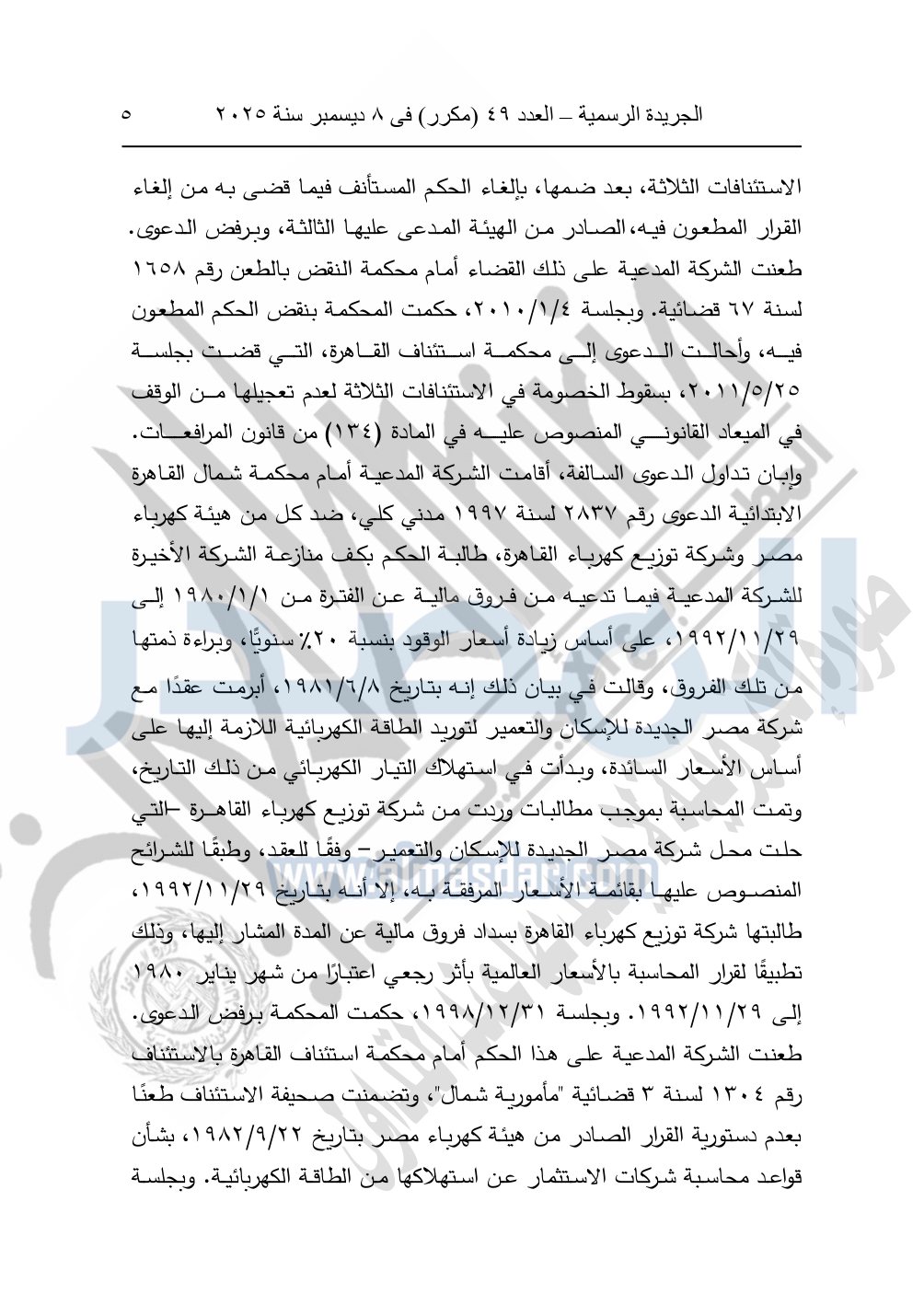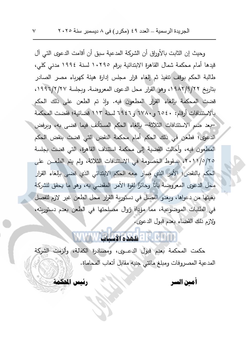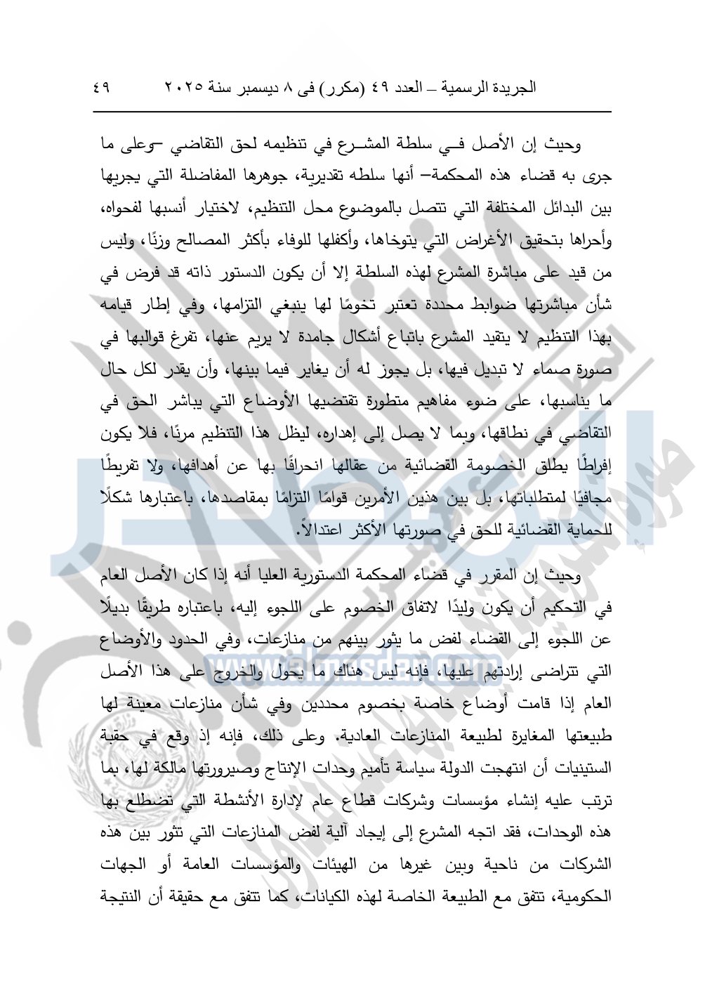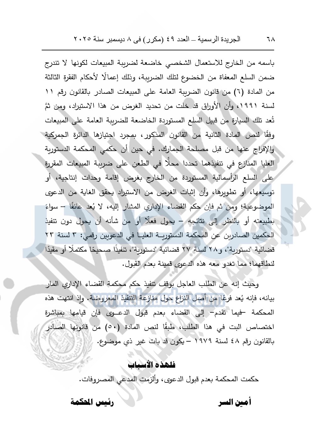 وأيضا نشرت الجريدة الرسمية في العدد 49 "مكرر"، في 6 أكتوبر سنة 2025، الأحكام الصادرة من المحكمة الدستورية العليا في عدد من الدعاوي القضائية بجلسة 6 ديسمبر 2025.