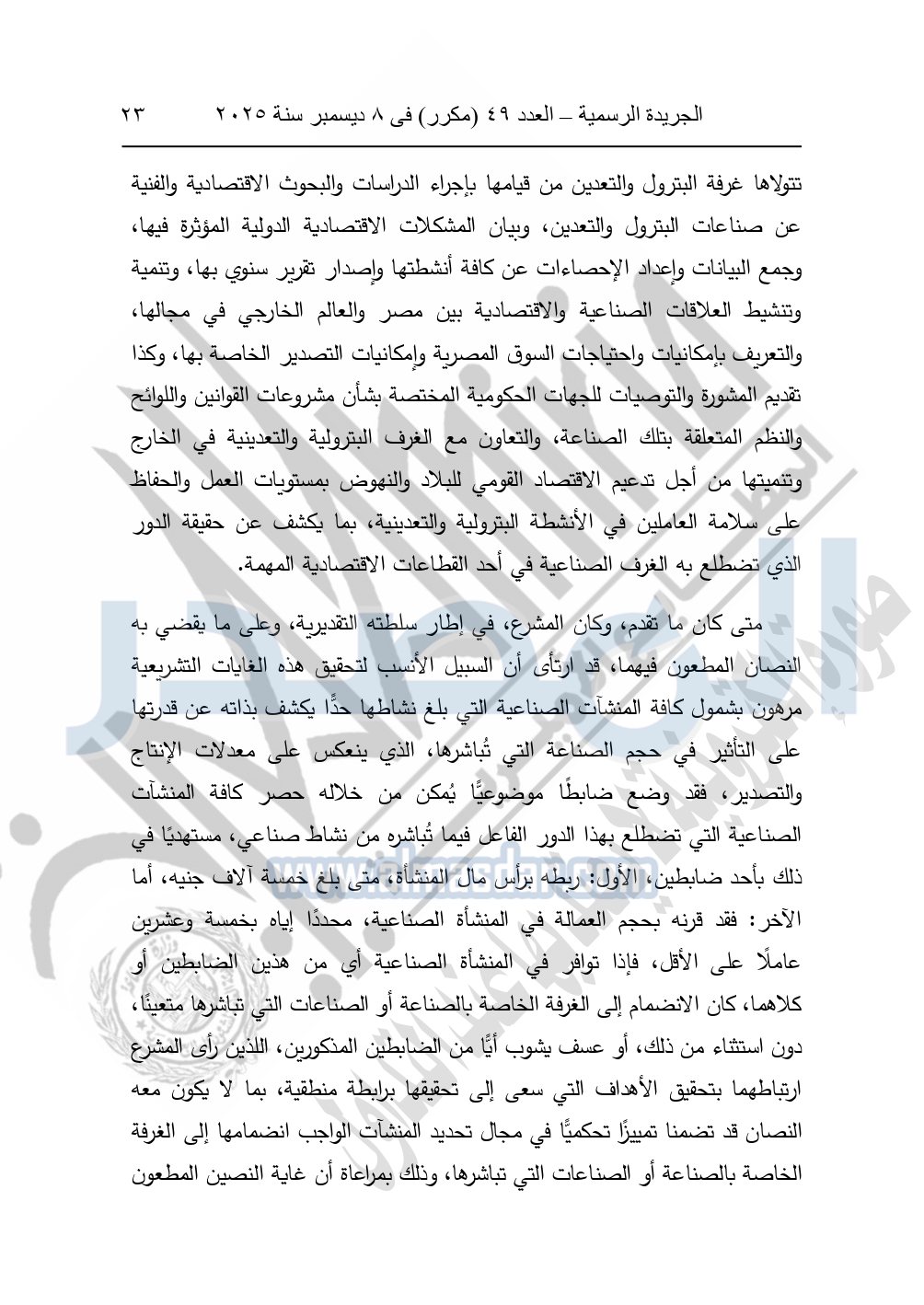رئيس الجمهورية، رئيس مجلس النواب، رئيس مجلس الشعب "النواب حاليا"، الممثل القانوني لغرفة صناعة البترول والتعدين.