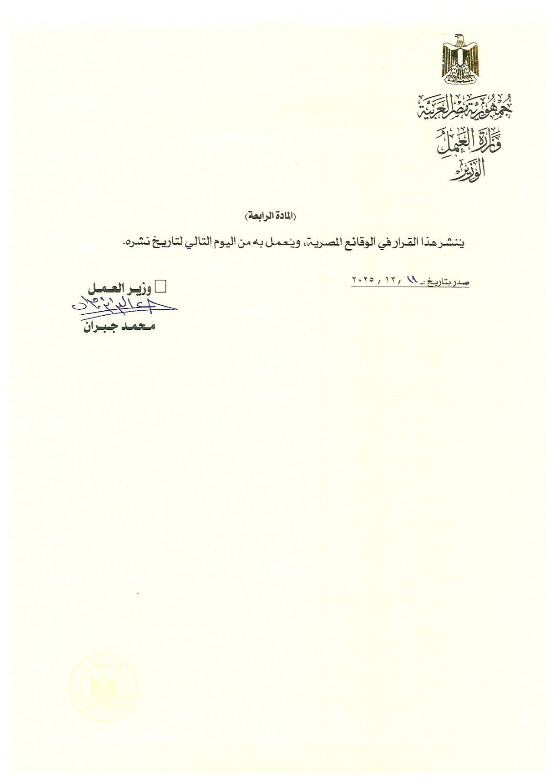 وفي هذا السياق، وجّه وزير العمل بنشر تفاصيل القرار ضمن سلسلة نشر القرارات التنفيذية لقانون العمل الجديد، نظرًا لأهميته البالغة لكل من أصحاب الأعمال، والعاملين، والباحثين عن فرص العمل، باعتباره أحد الأعمدة الرئيسية لتطوير منظومة التشغيل ومعلومات سوق العمل في مصر.