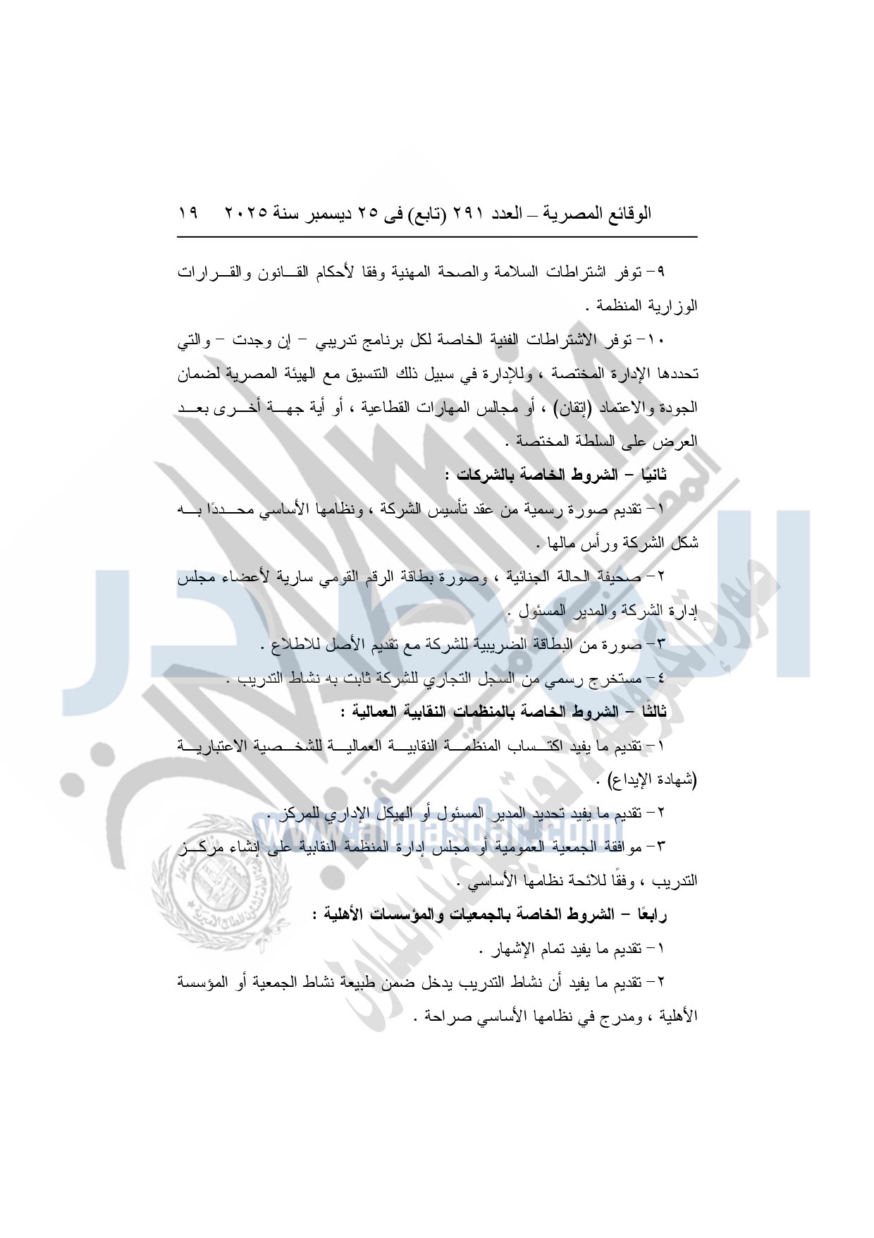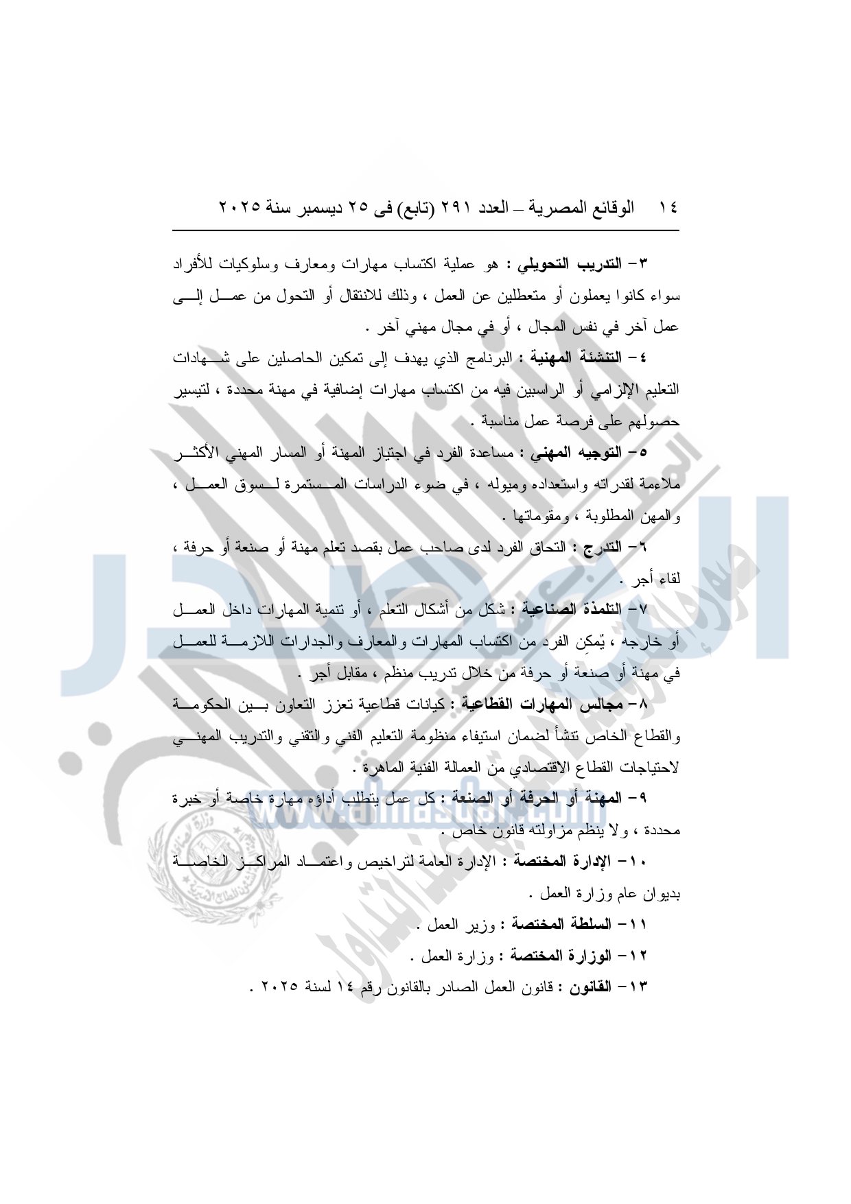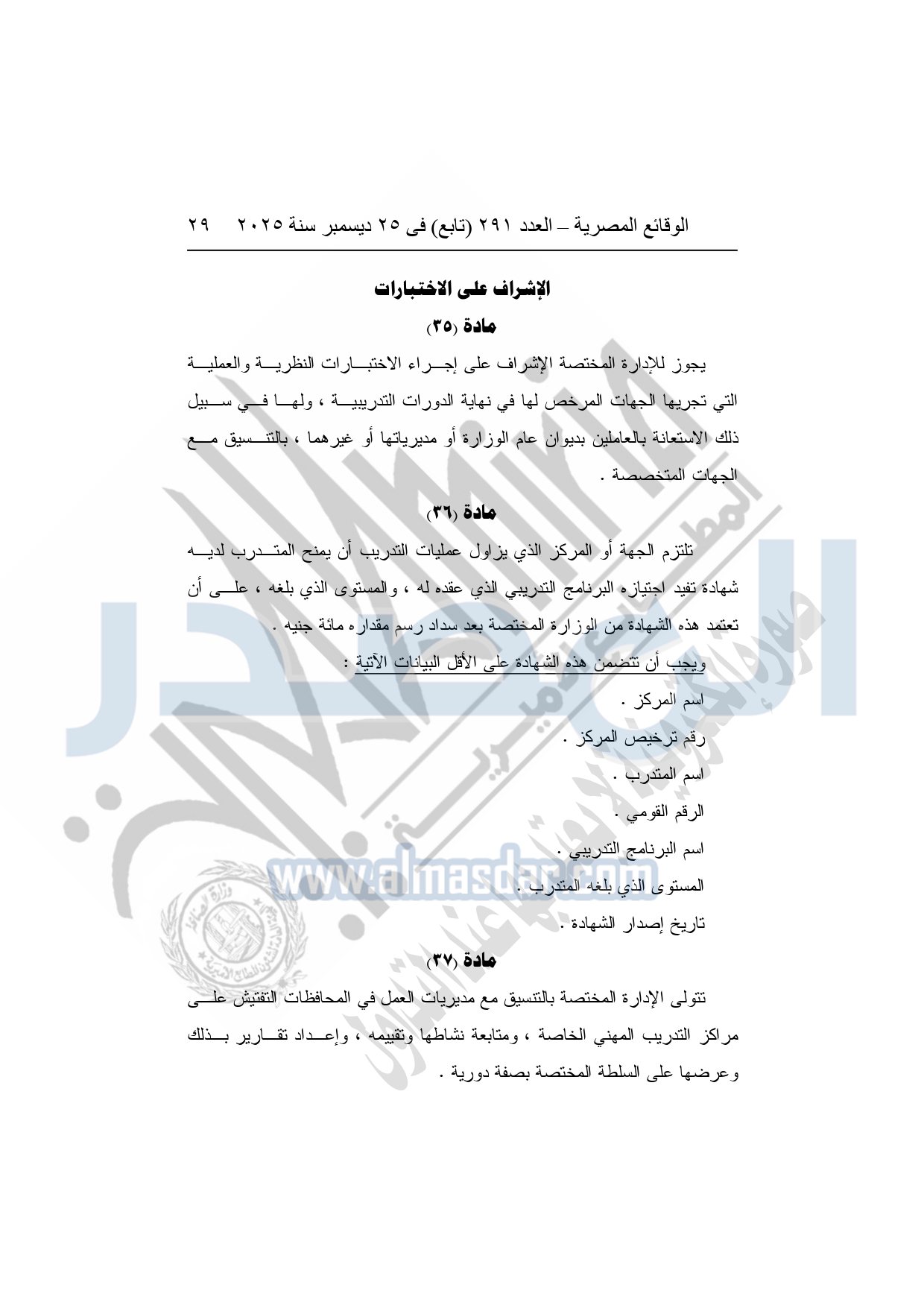 وأشار وزير العمل، إلى أن القرار يُلزم الجهات التي تزاول عمليات التدريب بالحصول على ترخيص من وزارة العمل، واعتماد البرامج والخطط التدريبية مسبقًا، وإنشاء قواعد بيانات دقيقة للمتدربين والمدربين، مع تشديد الرقابة والتفتيش الدوري على مراكز التدريب، ومنع أية ممارسات احتيالية أو تضليلية، أو استغلال للمتدربين، أو الخلط بين أنشطة التدريب والتعليم الأكاديمي.