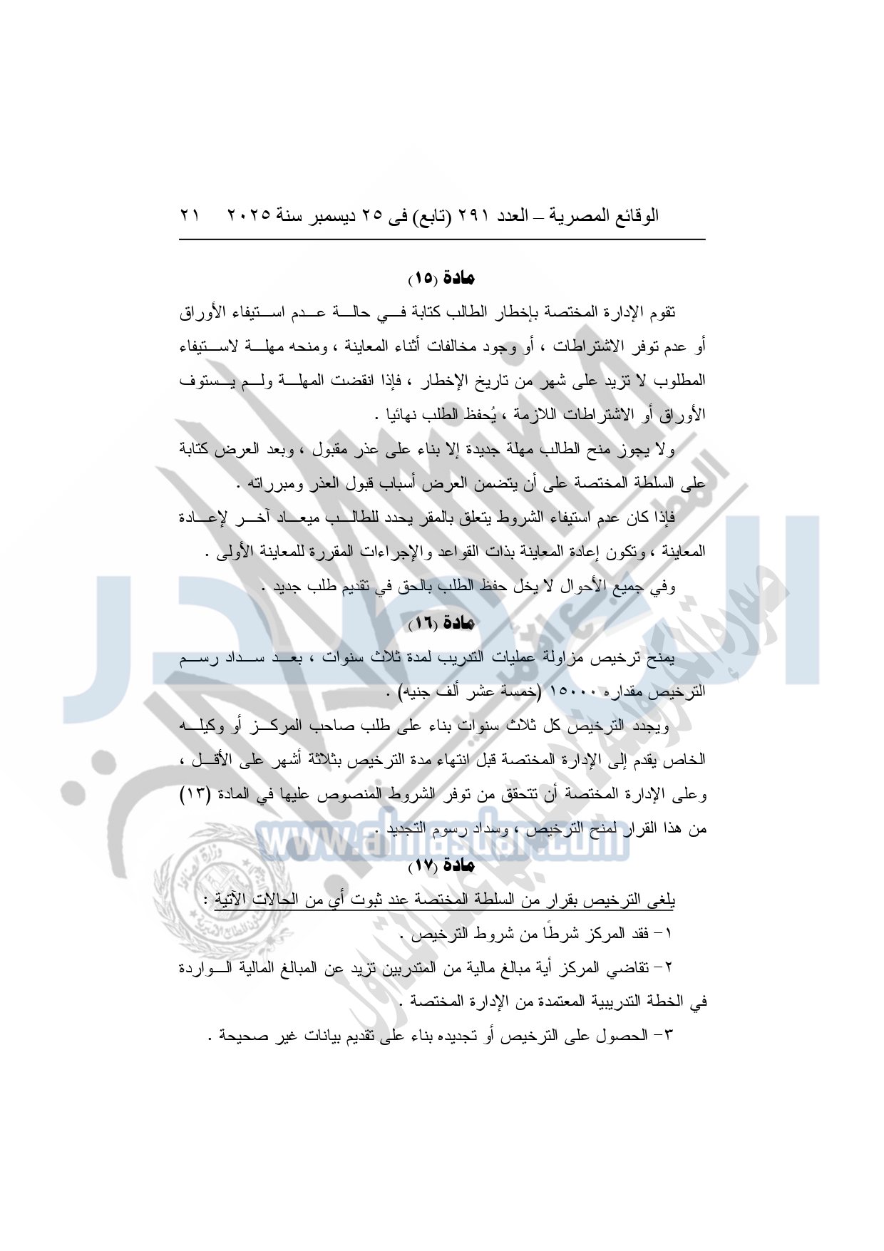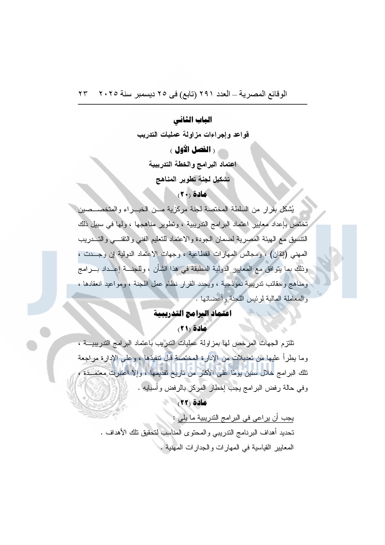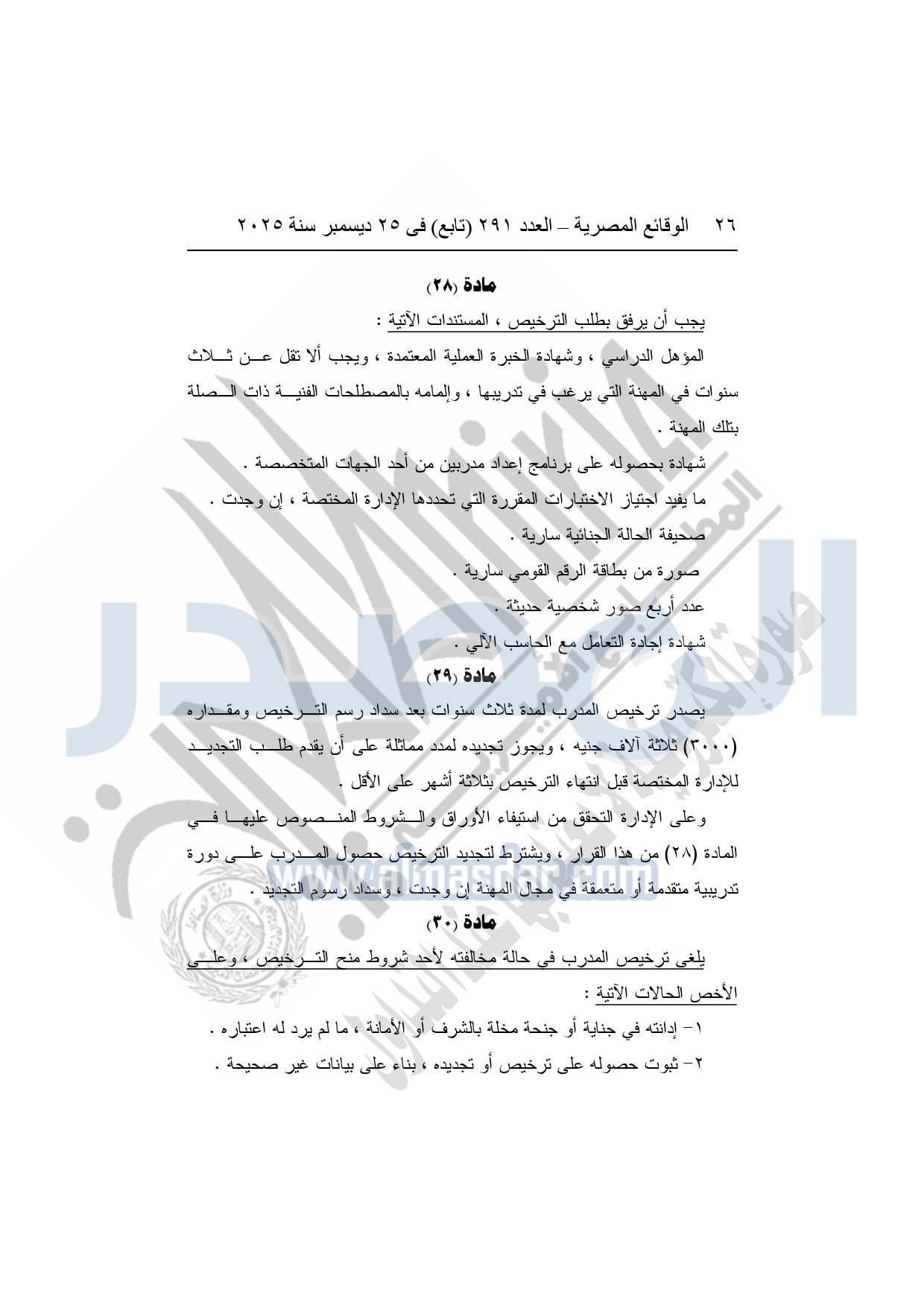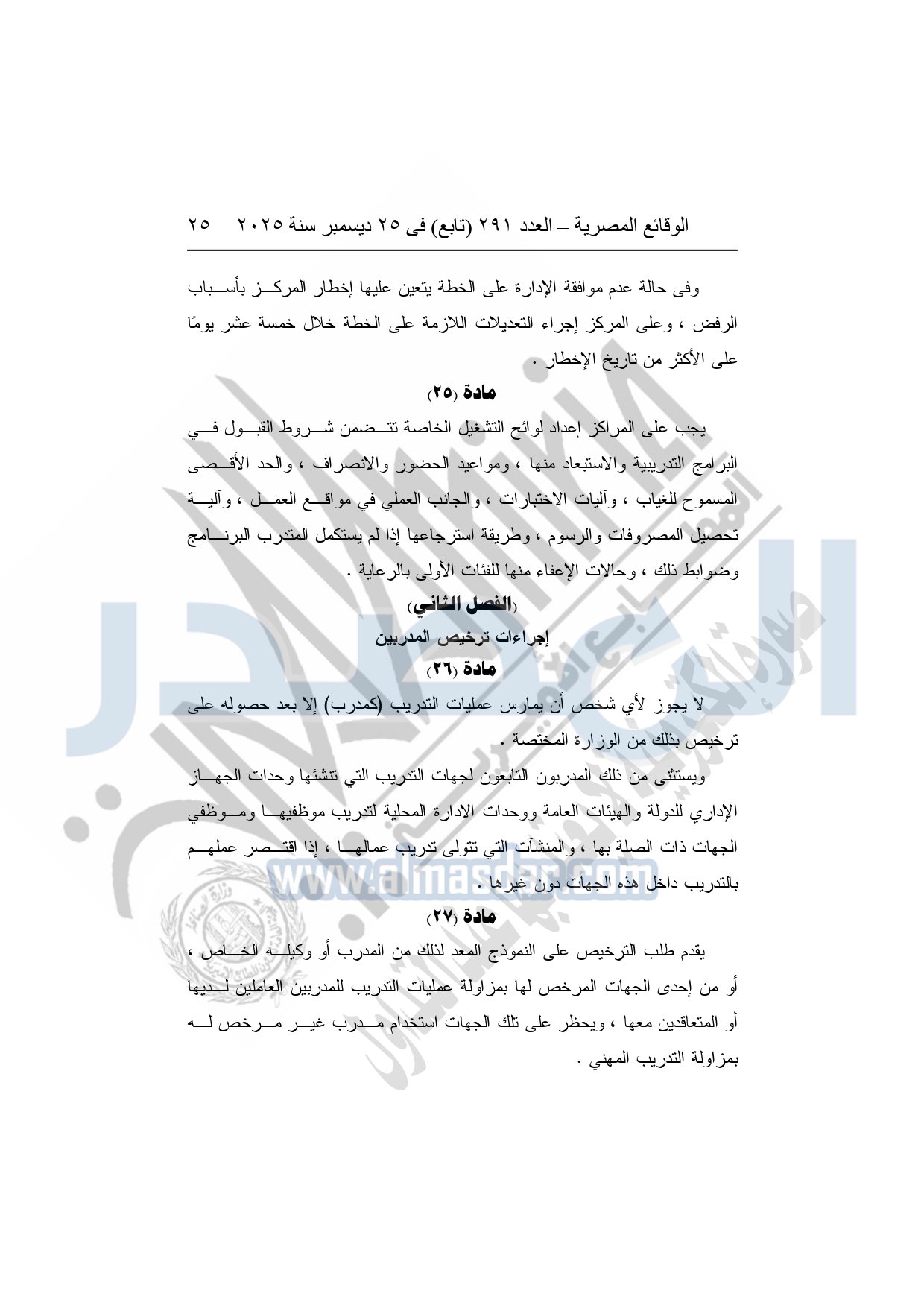 وأشار وزير العمل، إلى أن القرار يُلزم الجهات التي تزاول عمليات التدريب بالحصول على ترخيص من وزارة العمل، واعتماد البرامج والخطط التدريبية مسبقًا، وإنشاء قواعد بيانات دقيقة للمتدربين والمدربين، مع تشديد الرقابة والتفتيش الدوري على مراكز التدريب، ومنع أية ممارسات احتيالية أو تضليلية، أو استغلال للمتدربين، أو الخلط بين أنشطة التدريب والتعليم الأكاديمي.