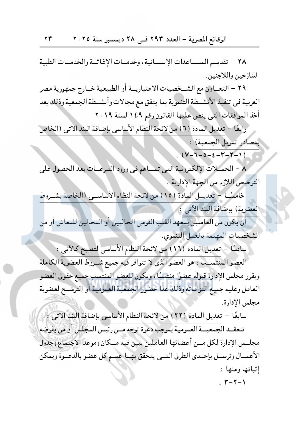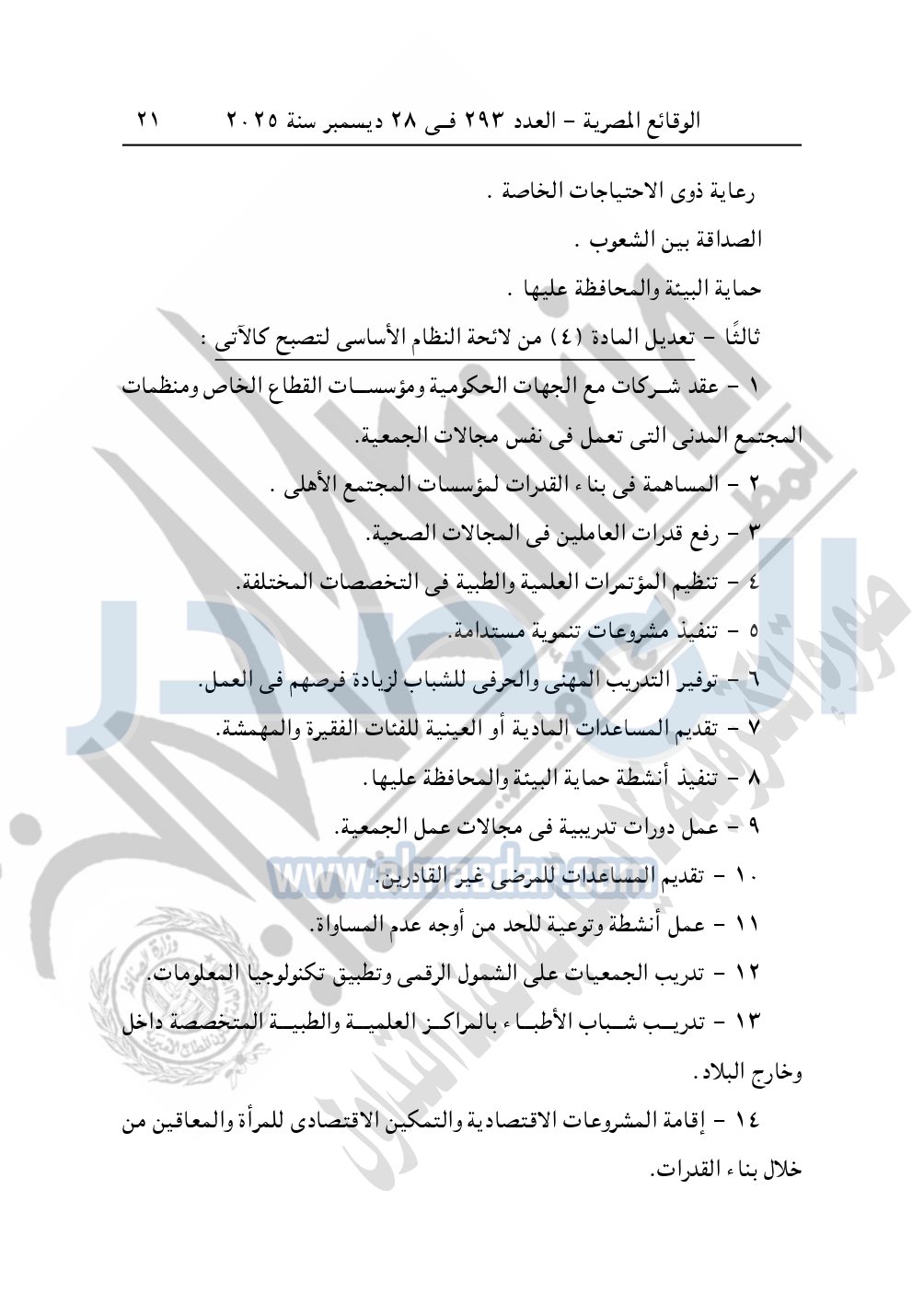 نشرت الوقائع المصرية في العدد 293، بتاريخ 28 ديسمبر 2025، قرار وزارة التضامن الاجتماعي، قرار تعديل لائحة النظام الأساسي رقم 782 لسنة 2016.