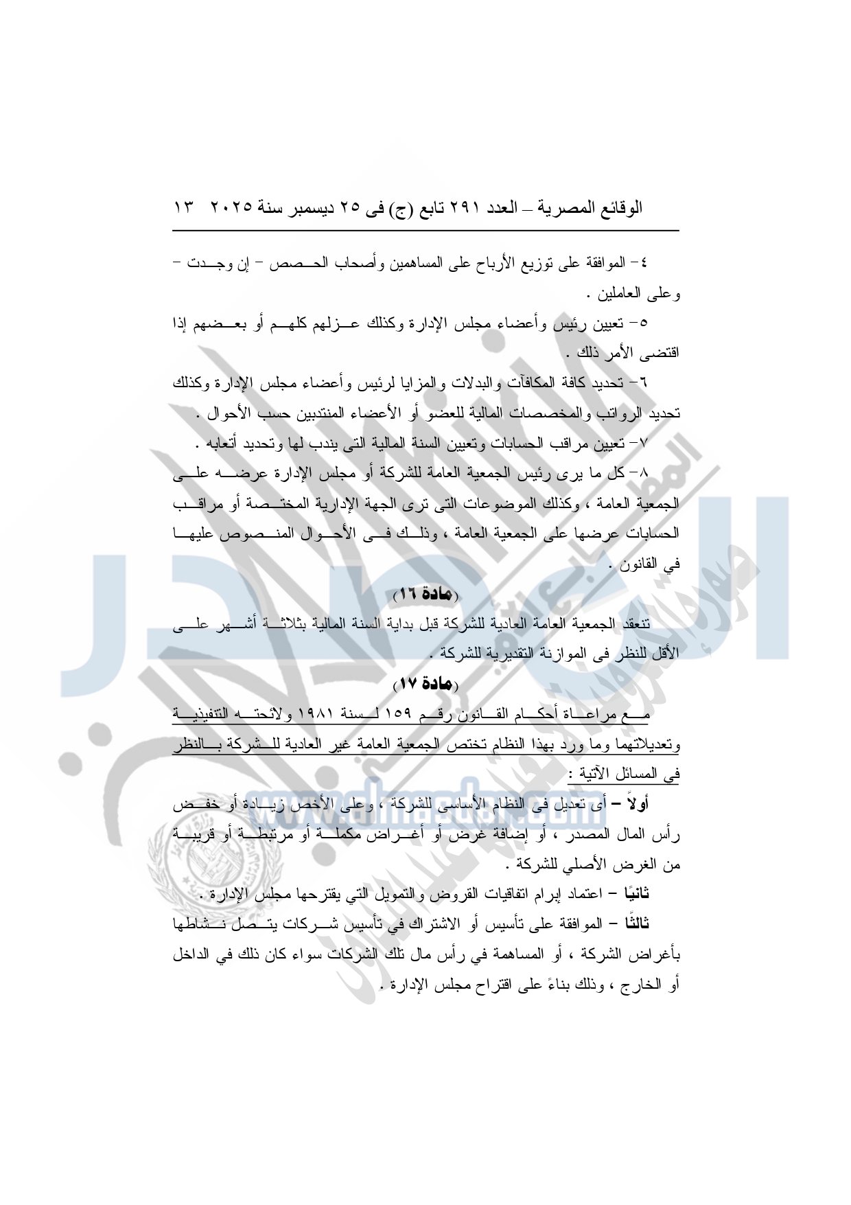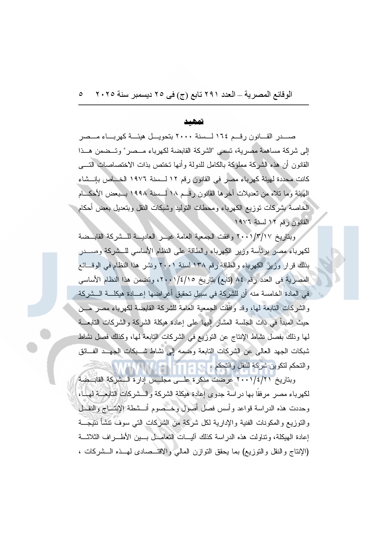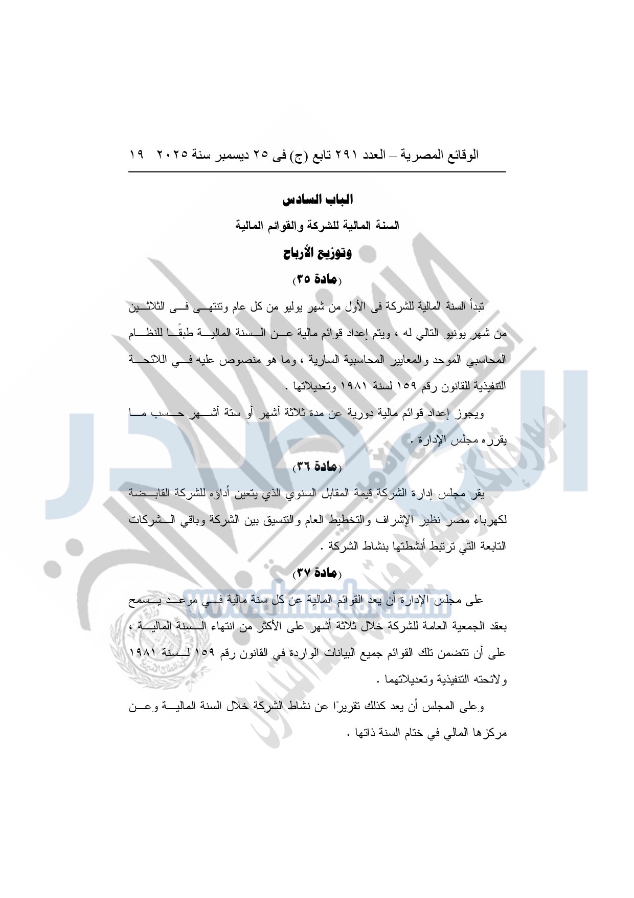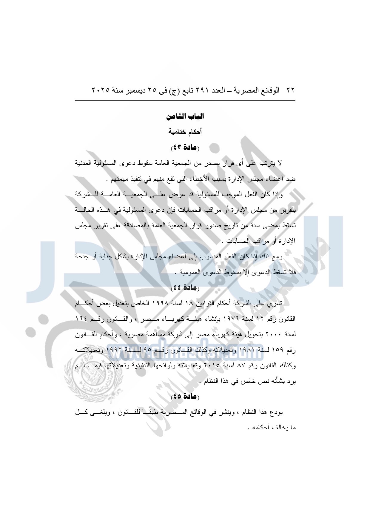 نشرت الوقائع المصرية في العدد 291 تابع "ج"، الصادر في 25 ديسمبر سنة 2025، الشركة القابضة لكهرباء مصر، قرار الجمعية العامة غير العادية لشركة مصر العليا لتوزيع الكهرباء، المنعقدة بتاريخ 18-11-2025
