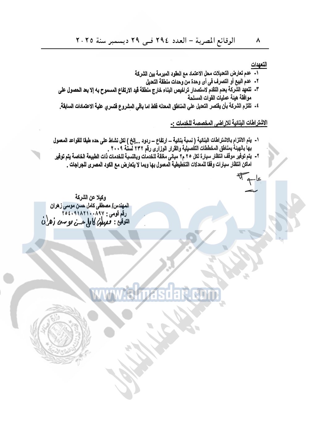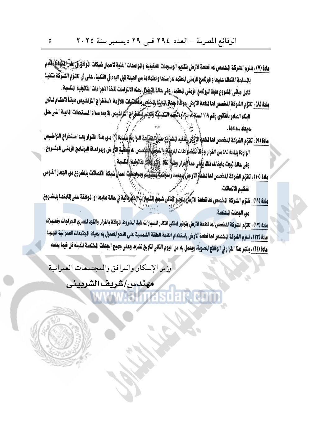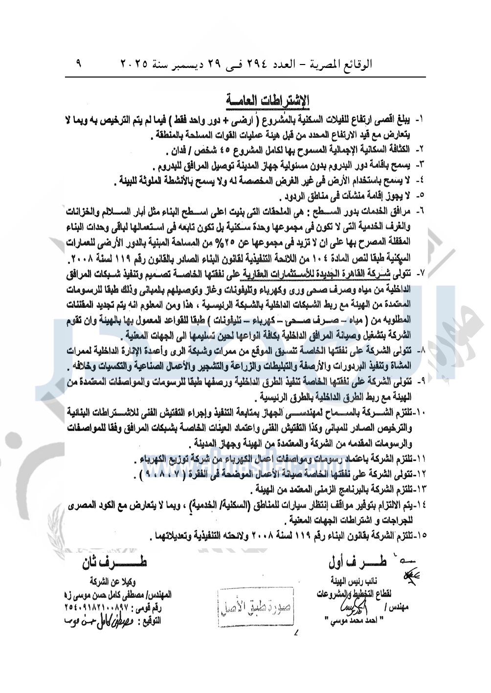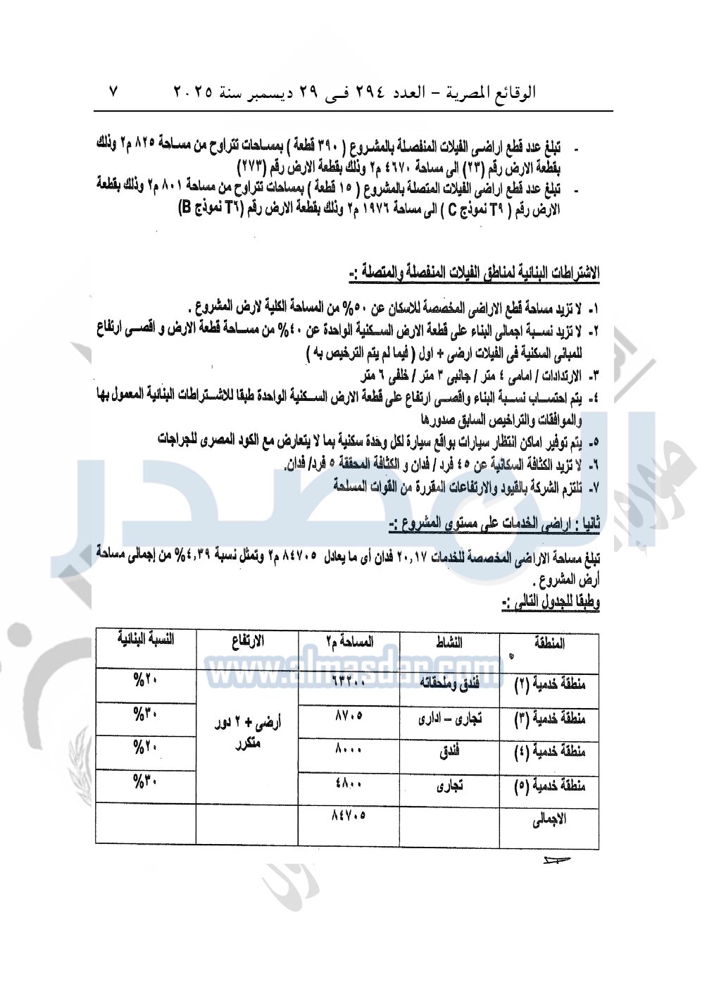 نشرت الوقائع المصرية في العدد 294، بتاريخ 29 ديسمبر 2025، قرار وزارة الإسكان والمرافق والمجتمعات العمرانية، قرار رقم 212 لسنة 2025، بتاريخ 8-2-2025، بشأن اعتماد تعديل المخطط العام المقدم من شركة القاهرة الجديدة للاستثمارات العقارية المخصص لها قطعة الأرض رقم "7" بمساحة 459.41 فدان بمنطقة الامتداد الشرقي للمستثمرين الجنوبية بمدينة القاهرة الجديدة لإقامة مشروع مجتمع عمراني متكامل "سكنى فيلات جولف وفندق".