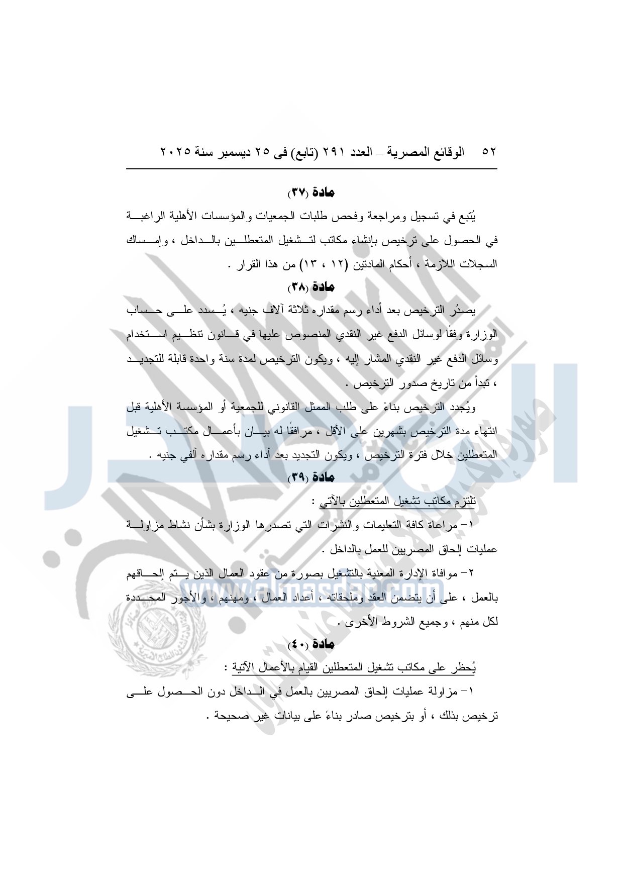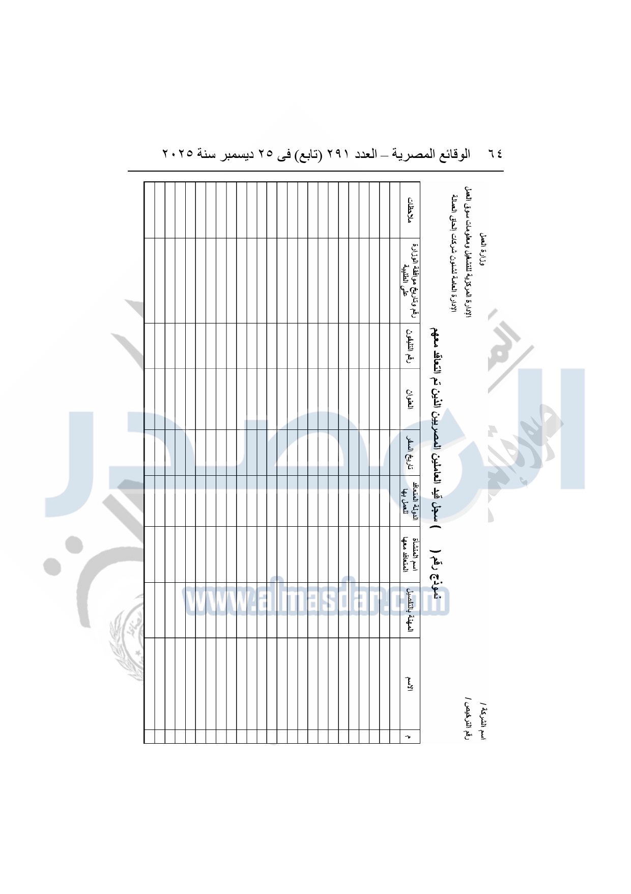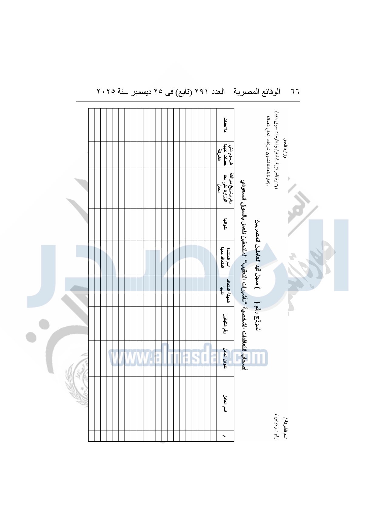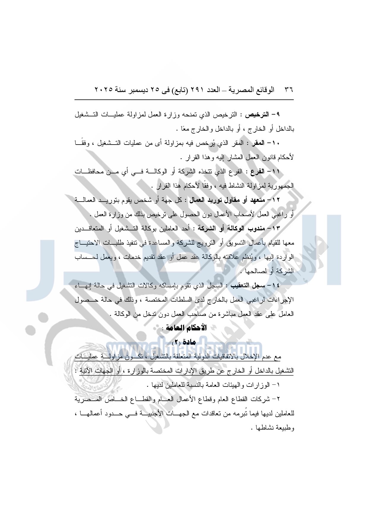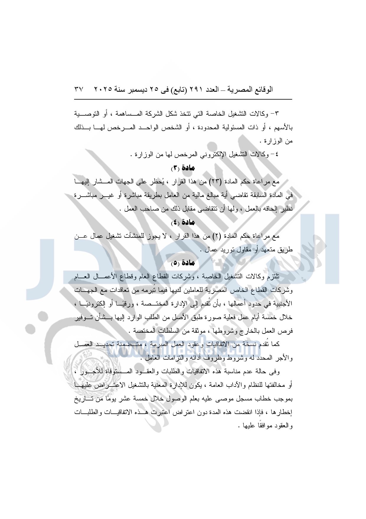 نشرت الوقائع المصرية في العدد 291 "تابع"، بتاريخ 25 ديسمبر 2025، قرار وزارة العمل، رقم 272 لسنة 2025، بشأن تنظيم عمليات التشغيل بالداخل والخارج.