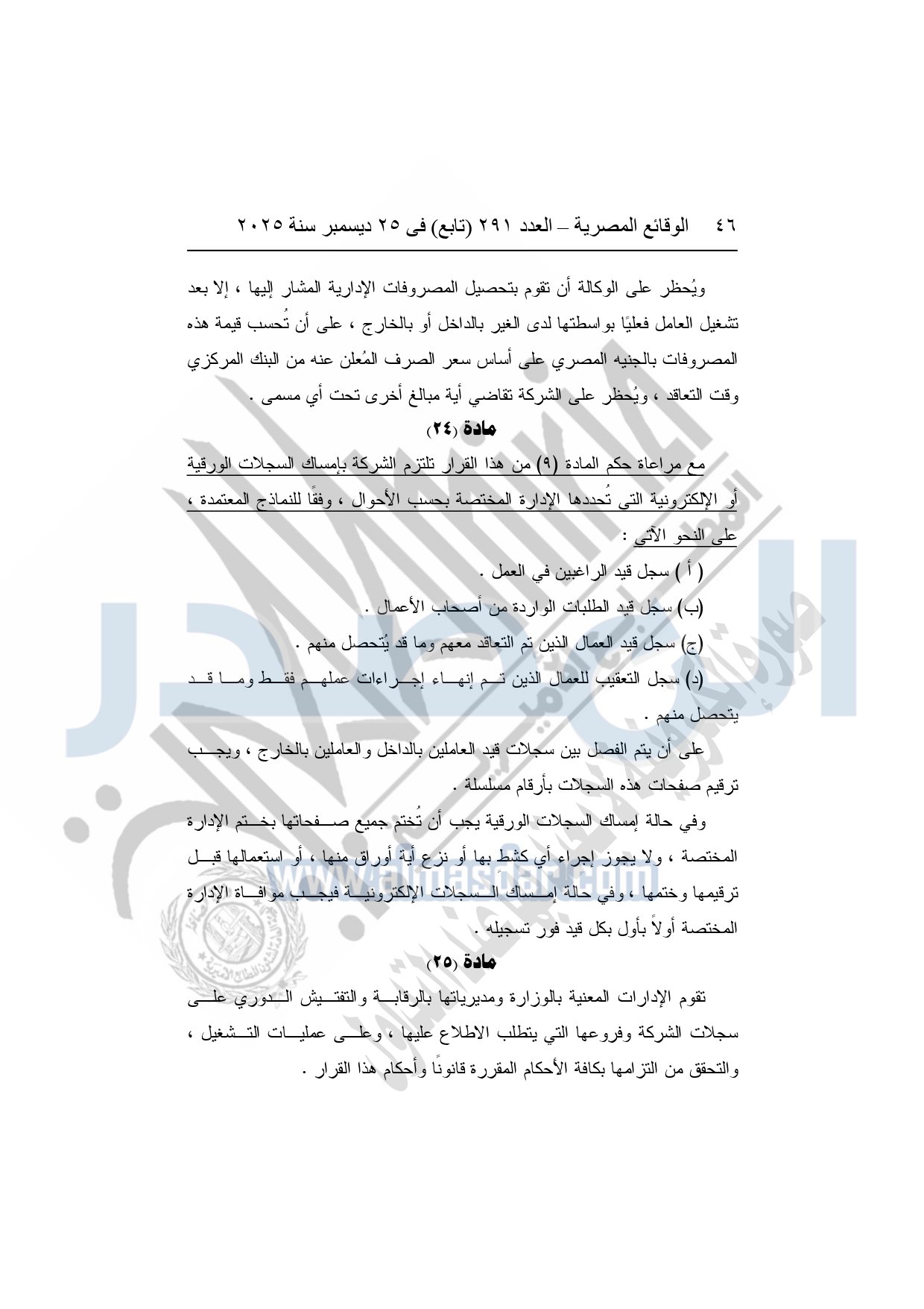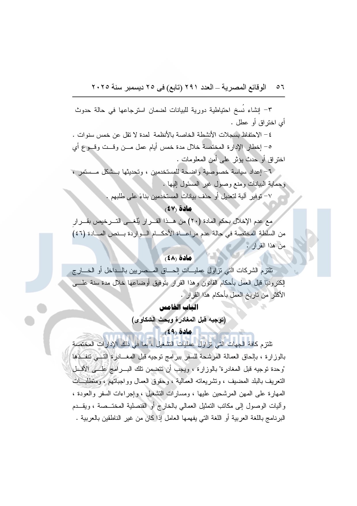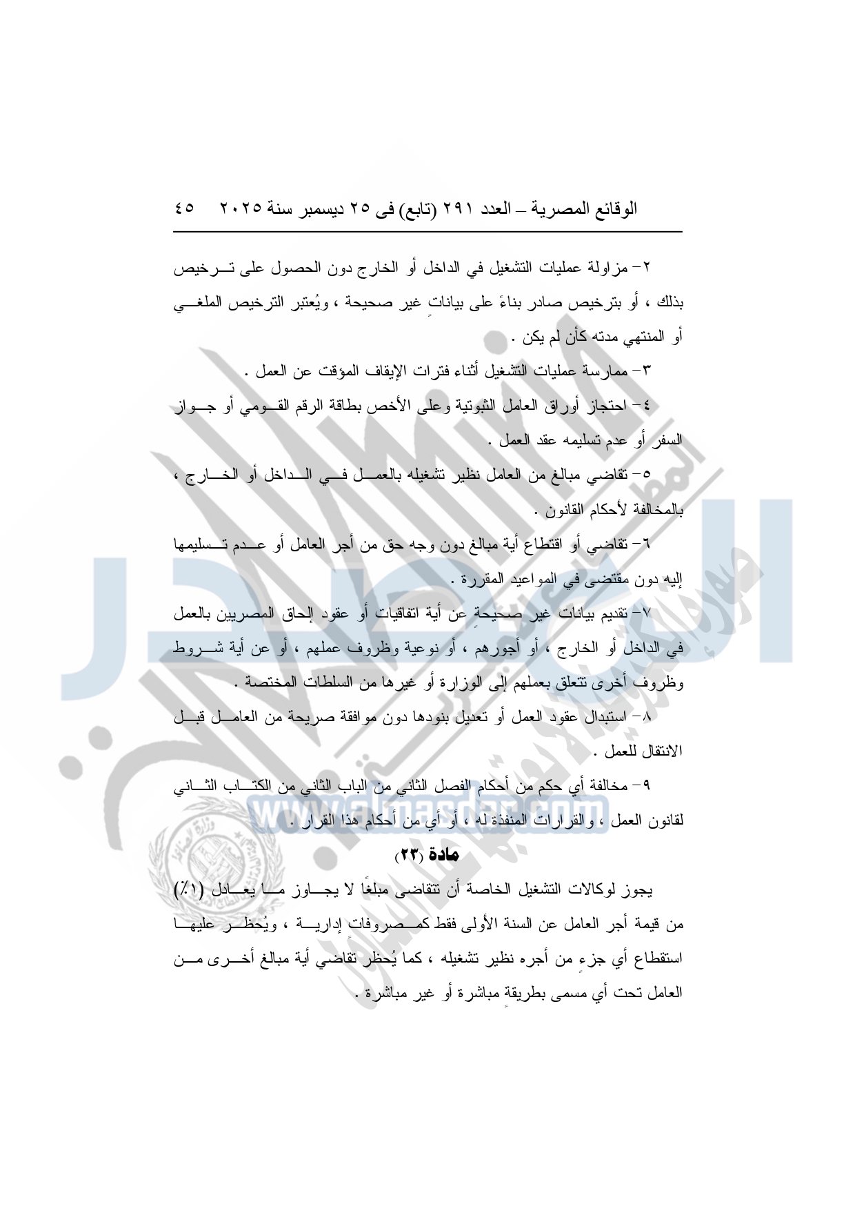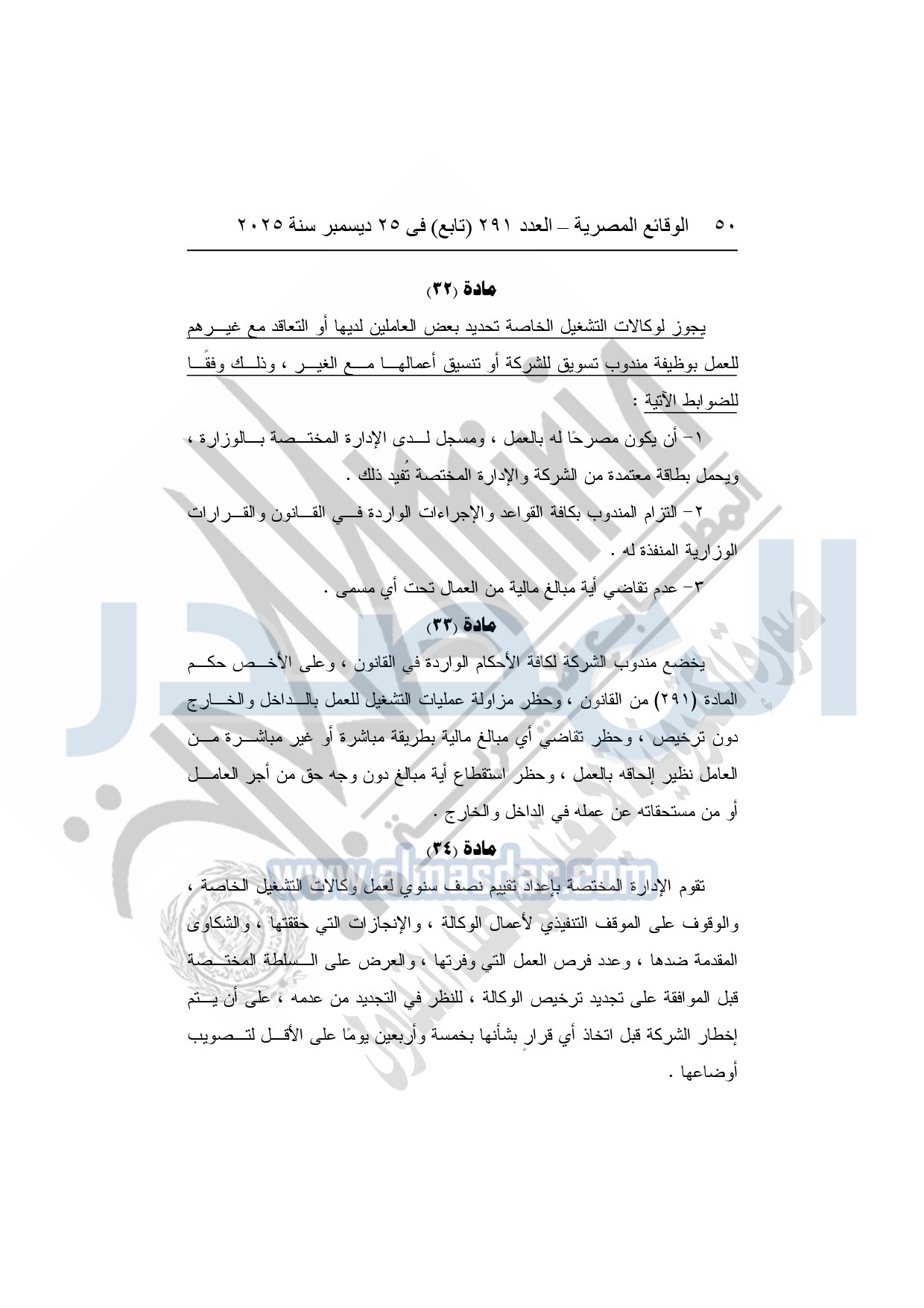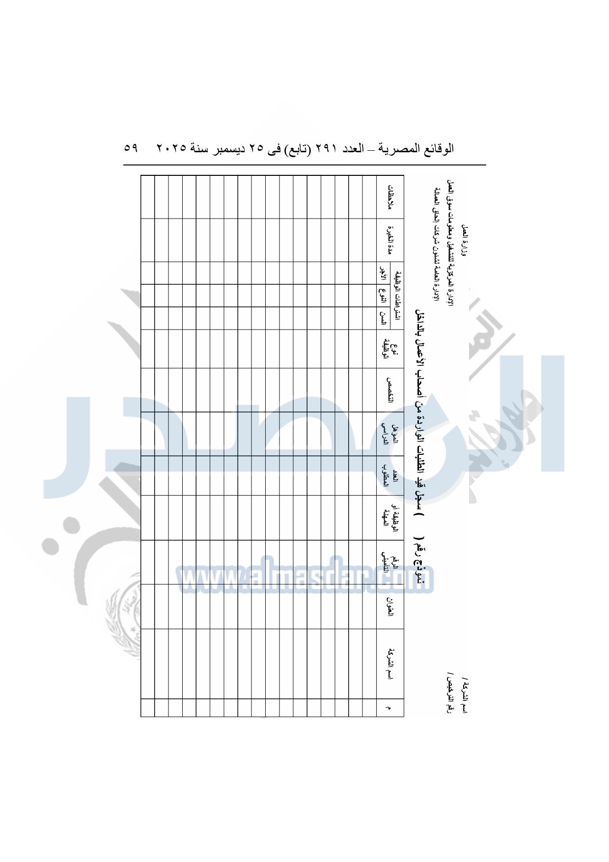 نشرت الوقائع المصرية في العدد 291 "تابع"، بتاريخ 25 ديسمبر 2025، قرار وزارة العمل، رقم 272 لسنة 2025، بشأن تنظيم عمليات التشغيل بالداخل والخارج.