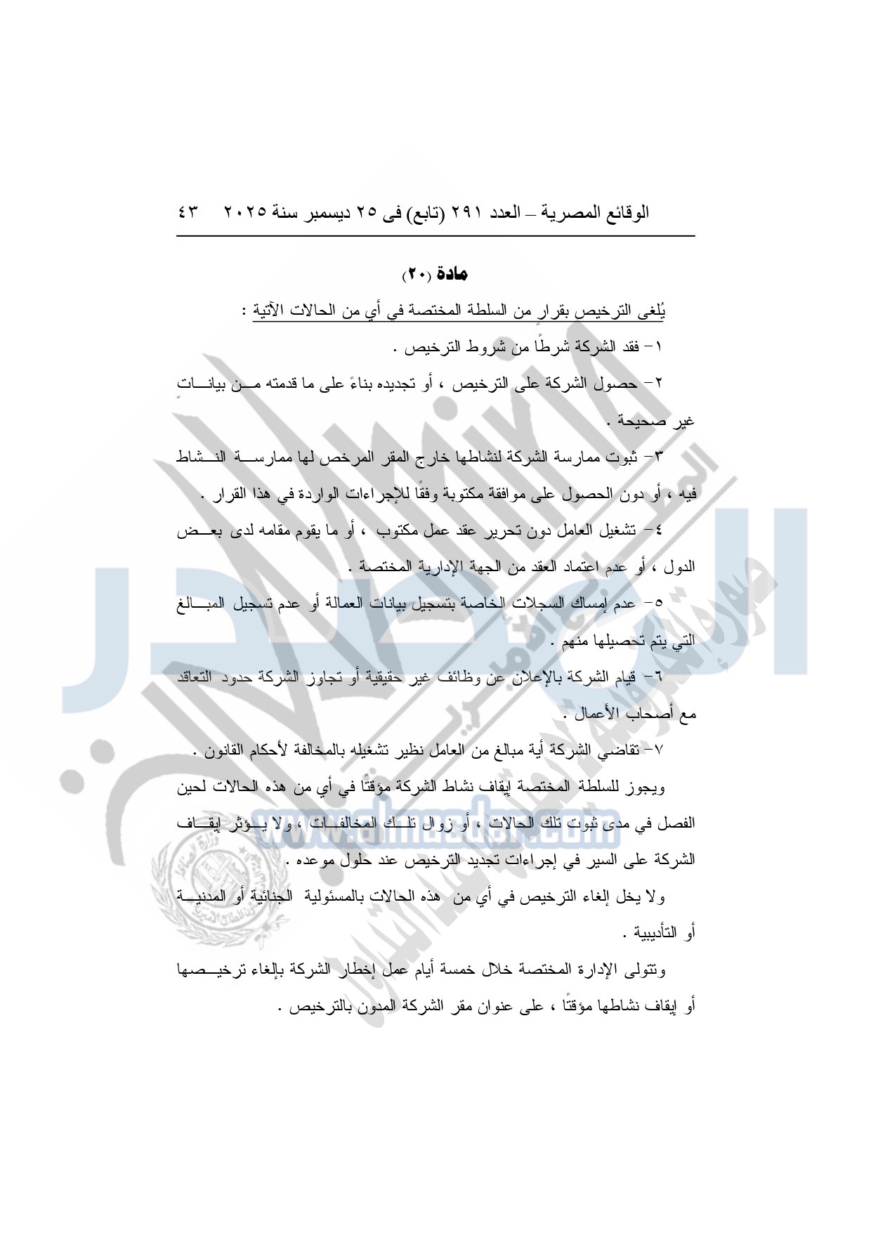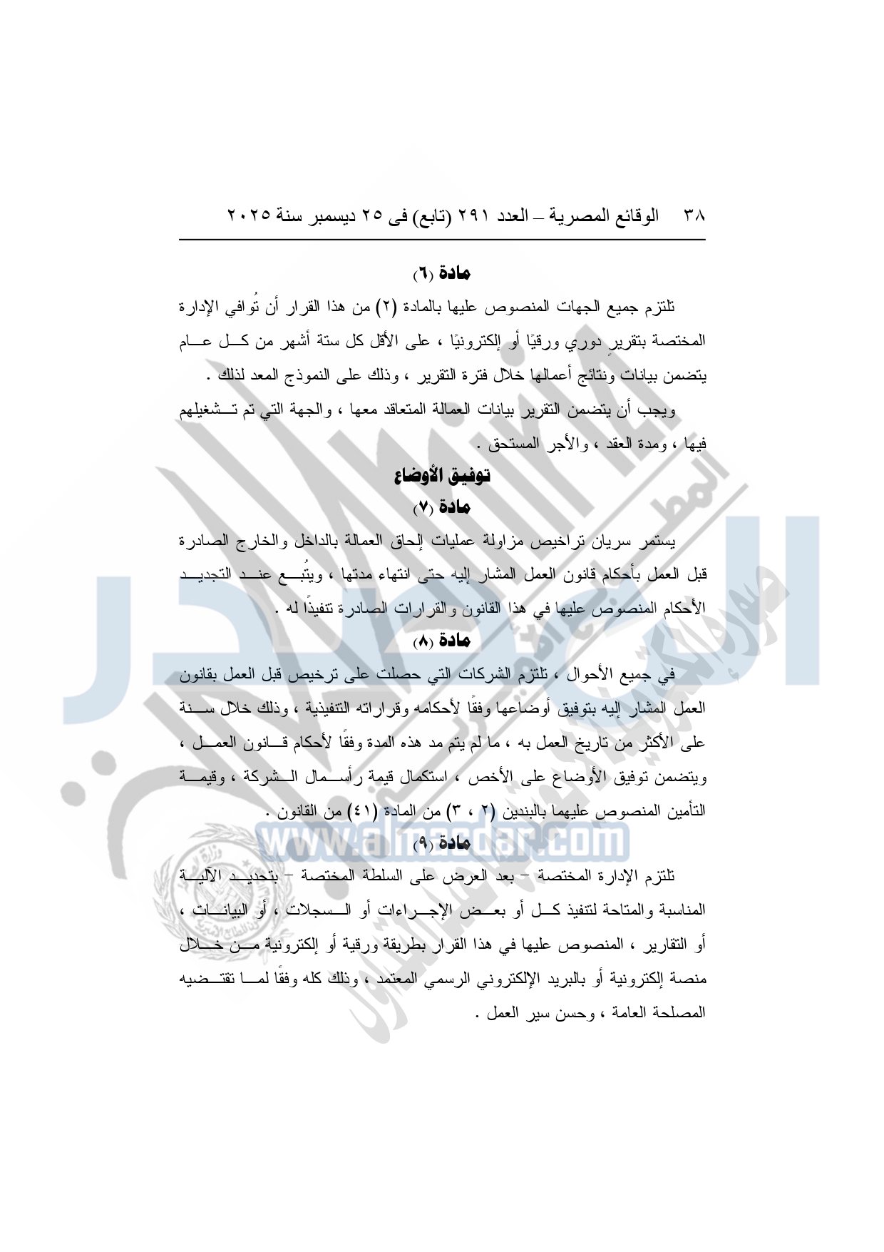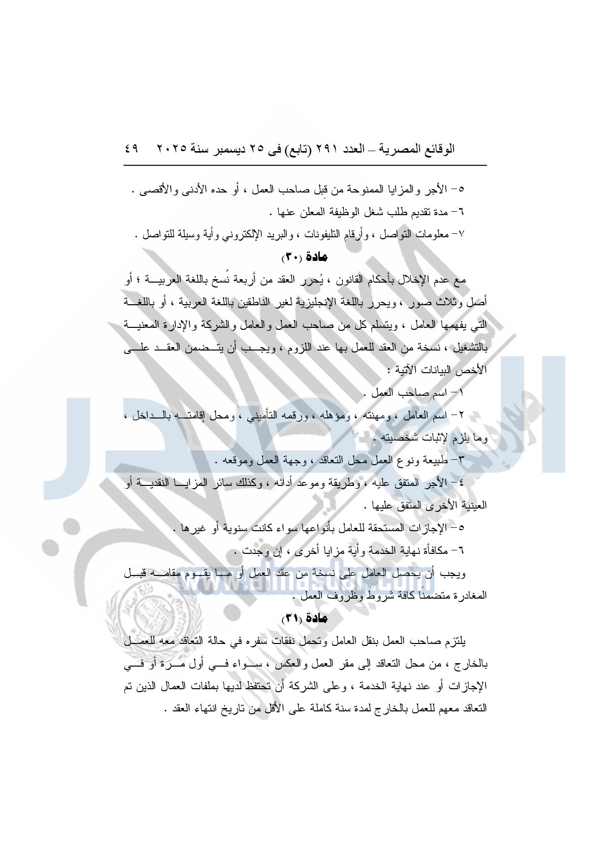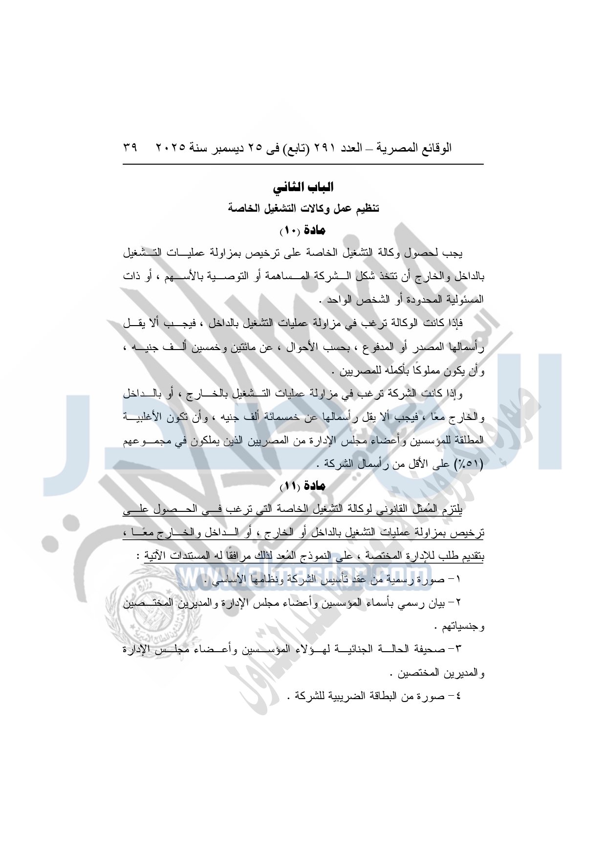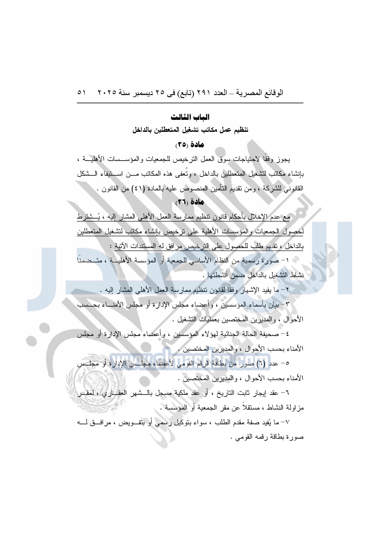نشرت الوقائع المصرية في العدد 291 "تابع"، بتاريخ 25 ديسمبر 2025، قرار وزارة العمل، رقم 272 لسنة 2025، بشأن تنظيم عمليات التشغيل بالداخل والخارج.