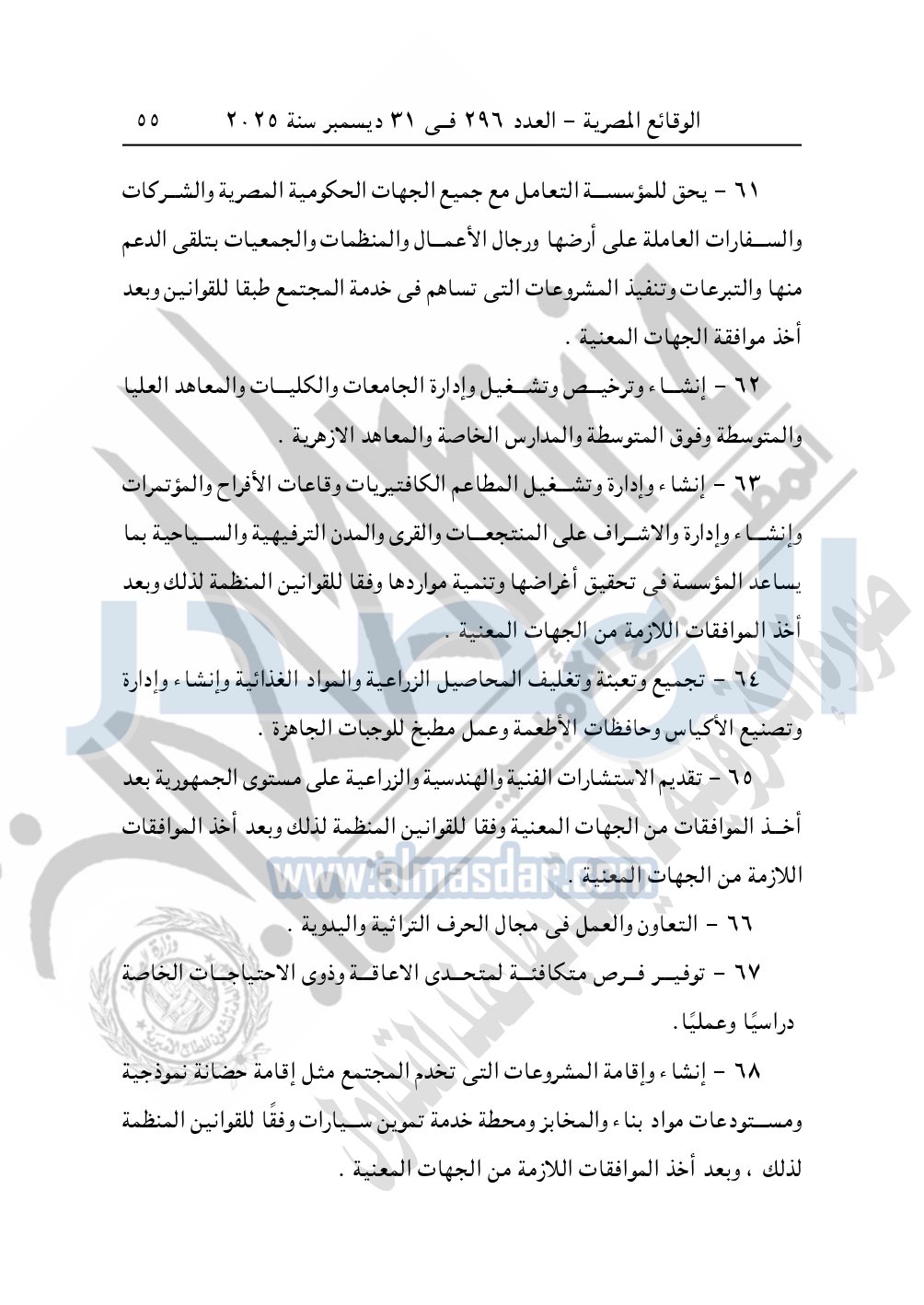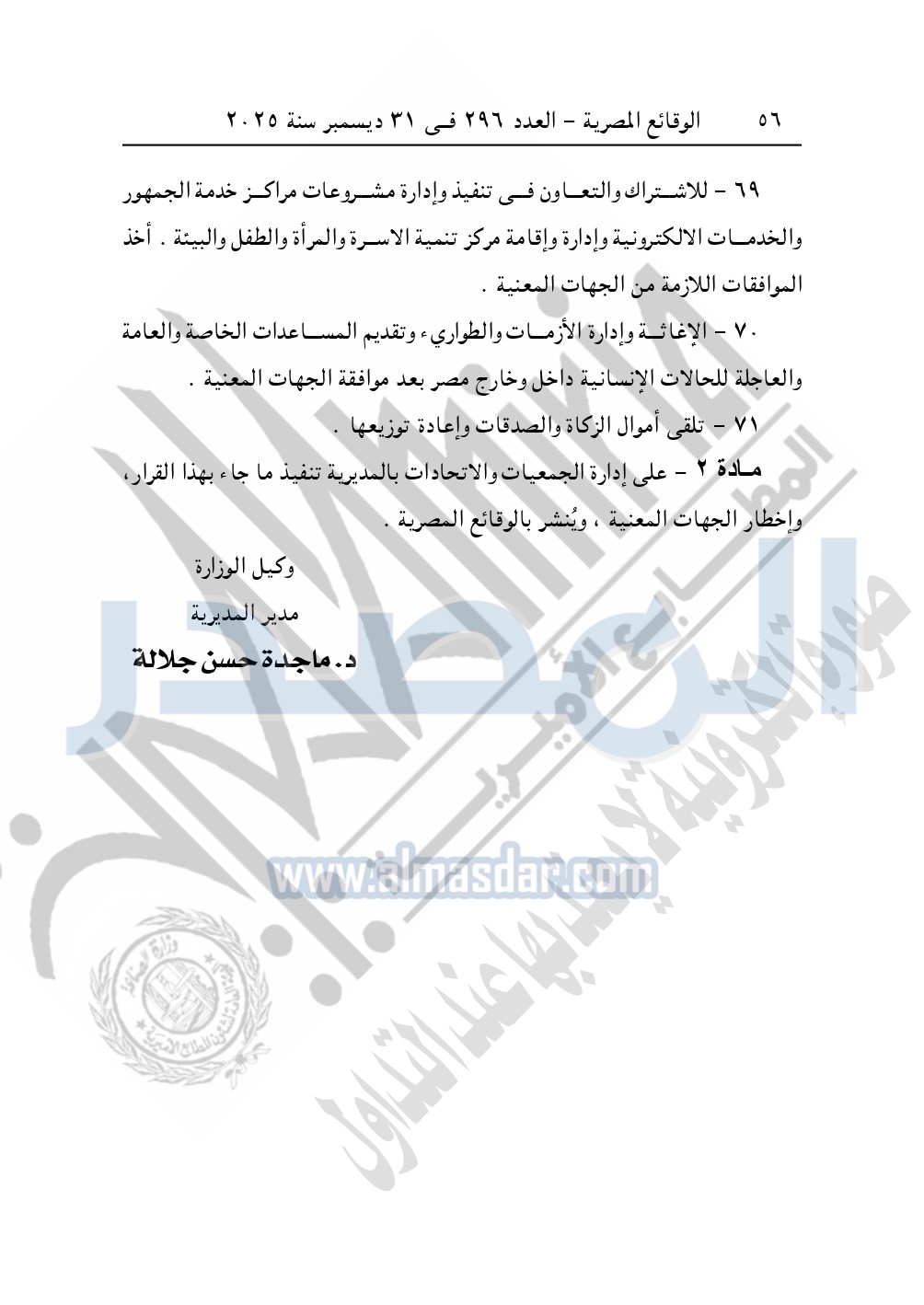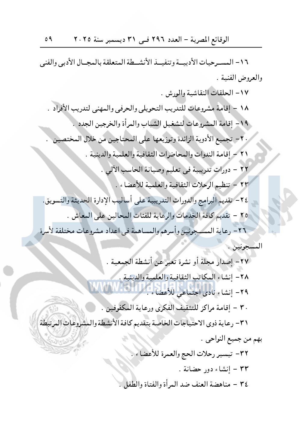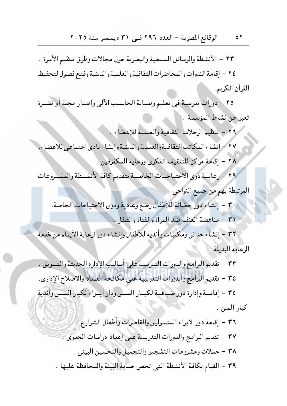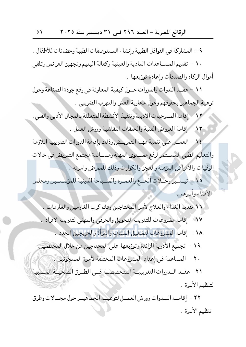 كما نشرت الوقائع المصرية في العدد 296 الصادر في 31 ديسمبر سنة 2025، مديرية التضامن الاجتماعي بالبحيرة، إدارة الجمعيات والاتحادات، قرار تعديل قيد رقم 63 لسنة 2025 بتاريخ 4-11-2025، بشأن تعديل لائحة النظام الأساسي لجمعية أبناء رشيد الخيرية – مدينة رشيد.