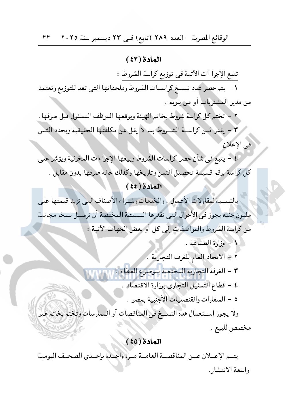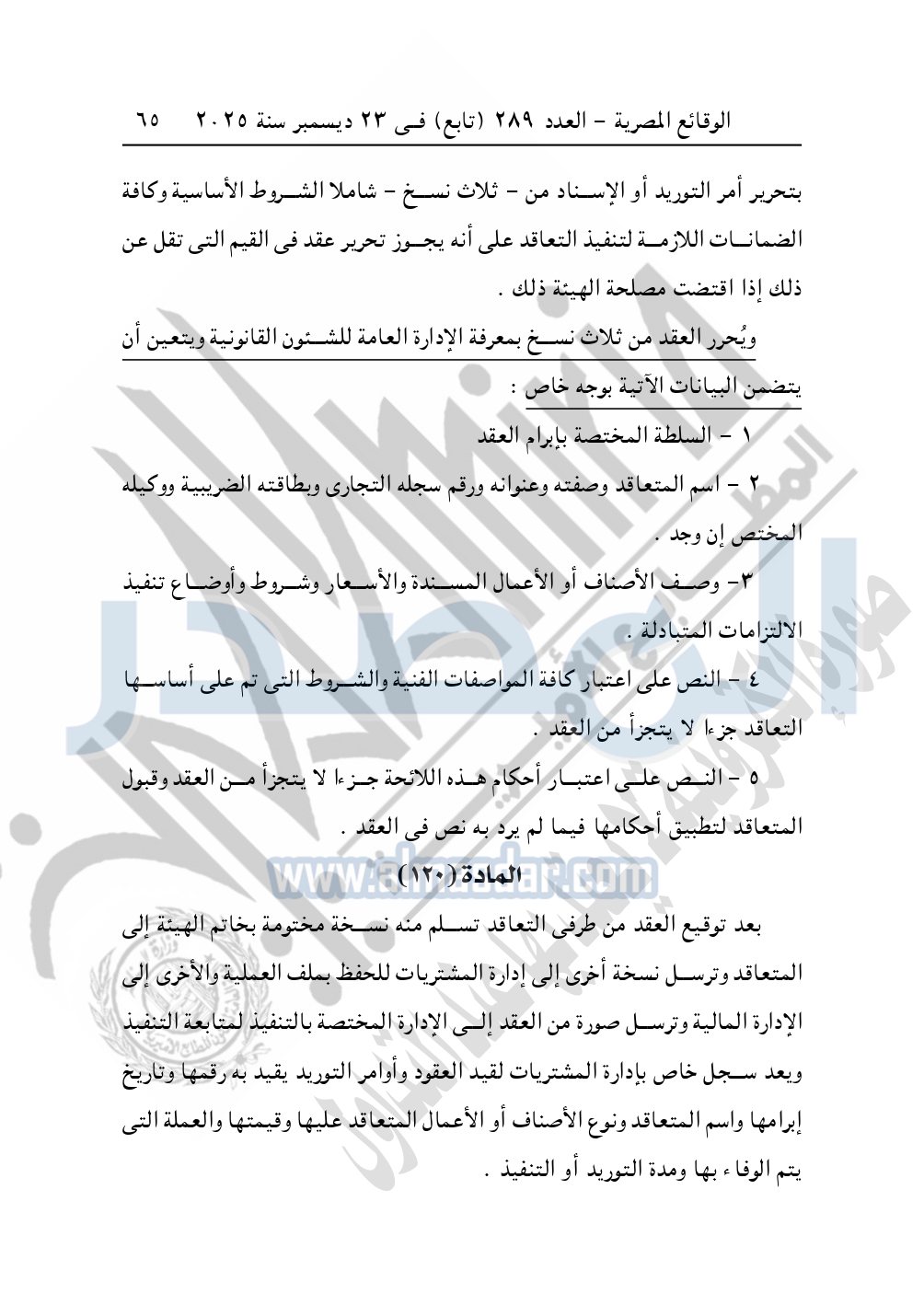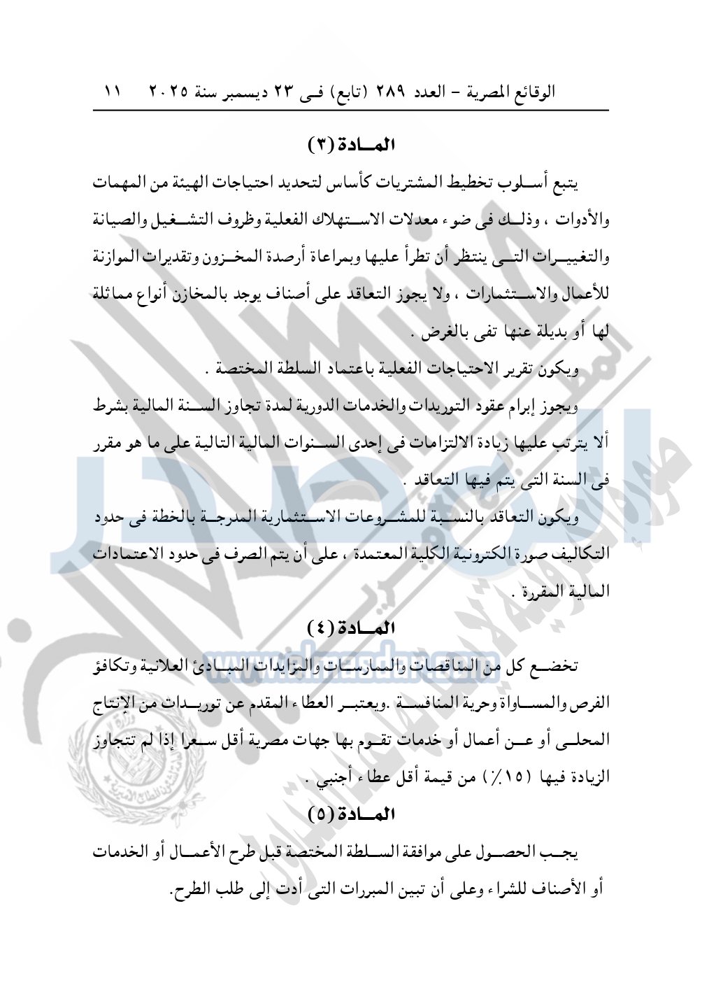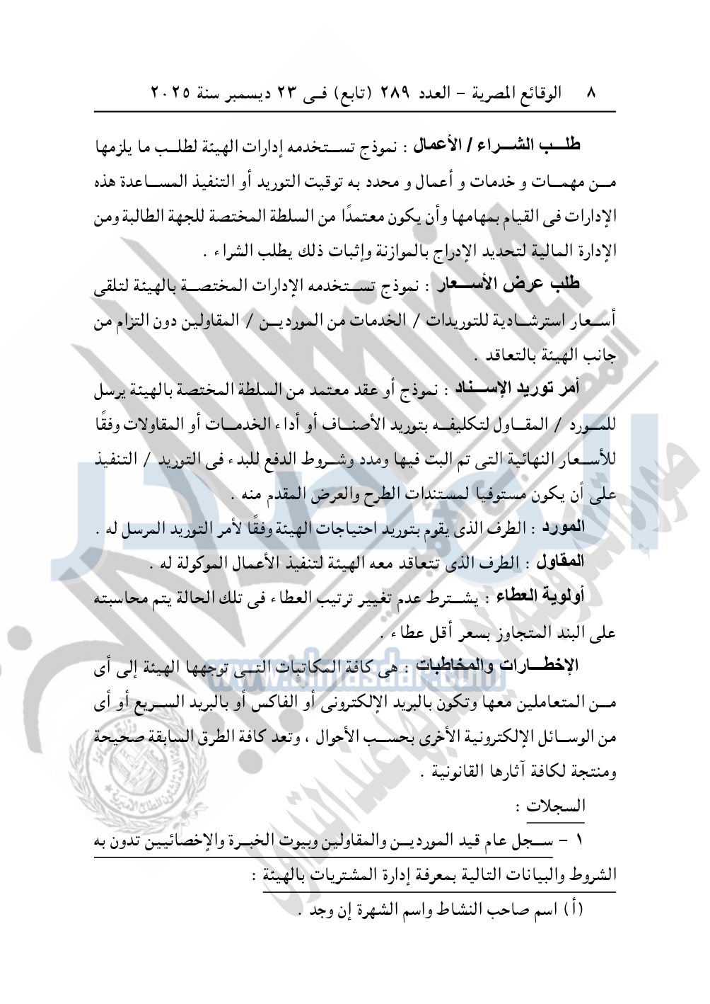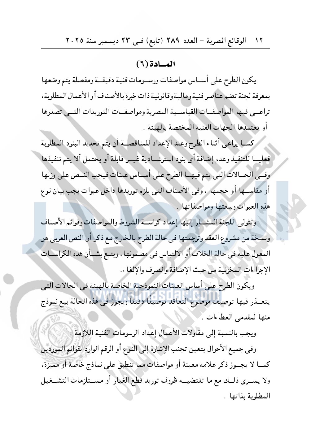 نشرت الوقائع المصرية، في العدد 289 "تابع"، الصادر في 23 ديسمبر 2025، قرار الهيئة العامة للمنطقة الاقتصادية للمثلث الذهبي، رقم 29 لسنة 2025، بشأن إصدار لائحة المشتريات والعقود.