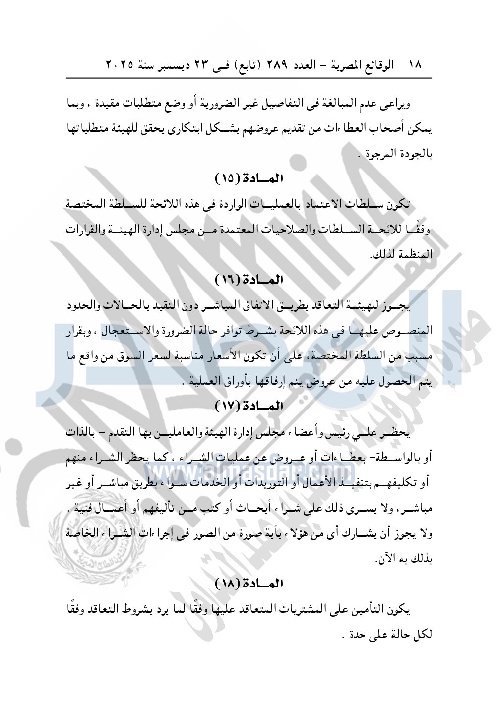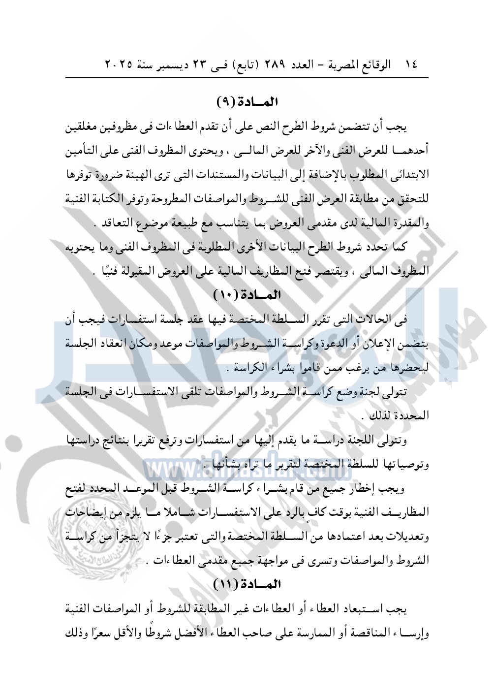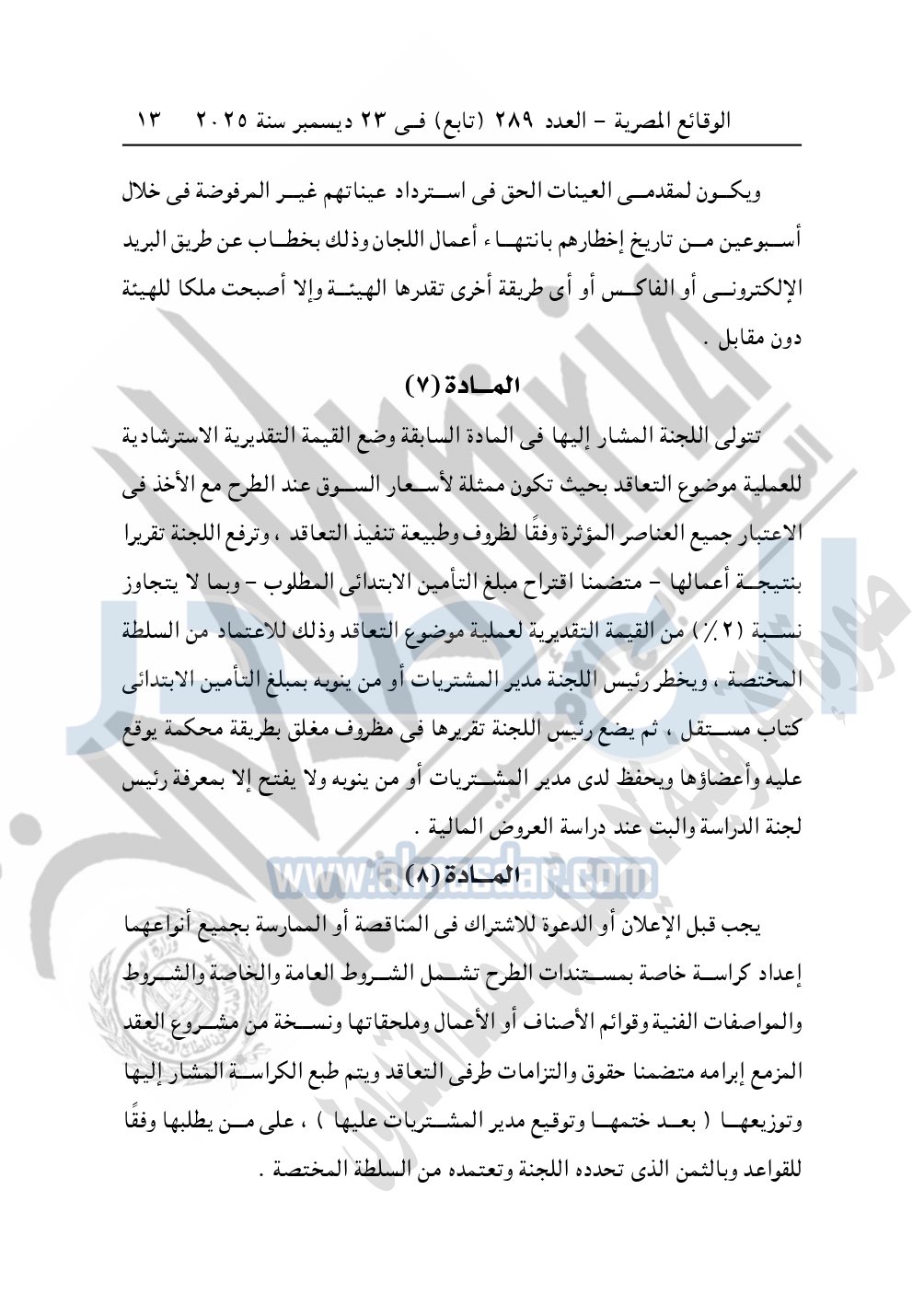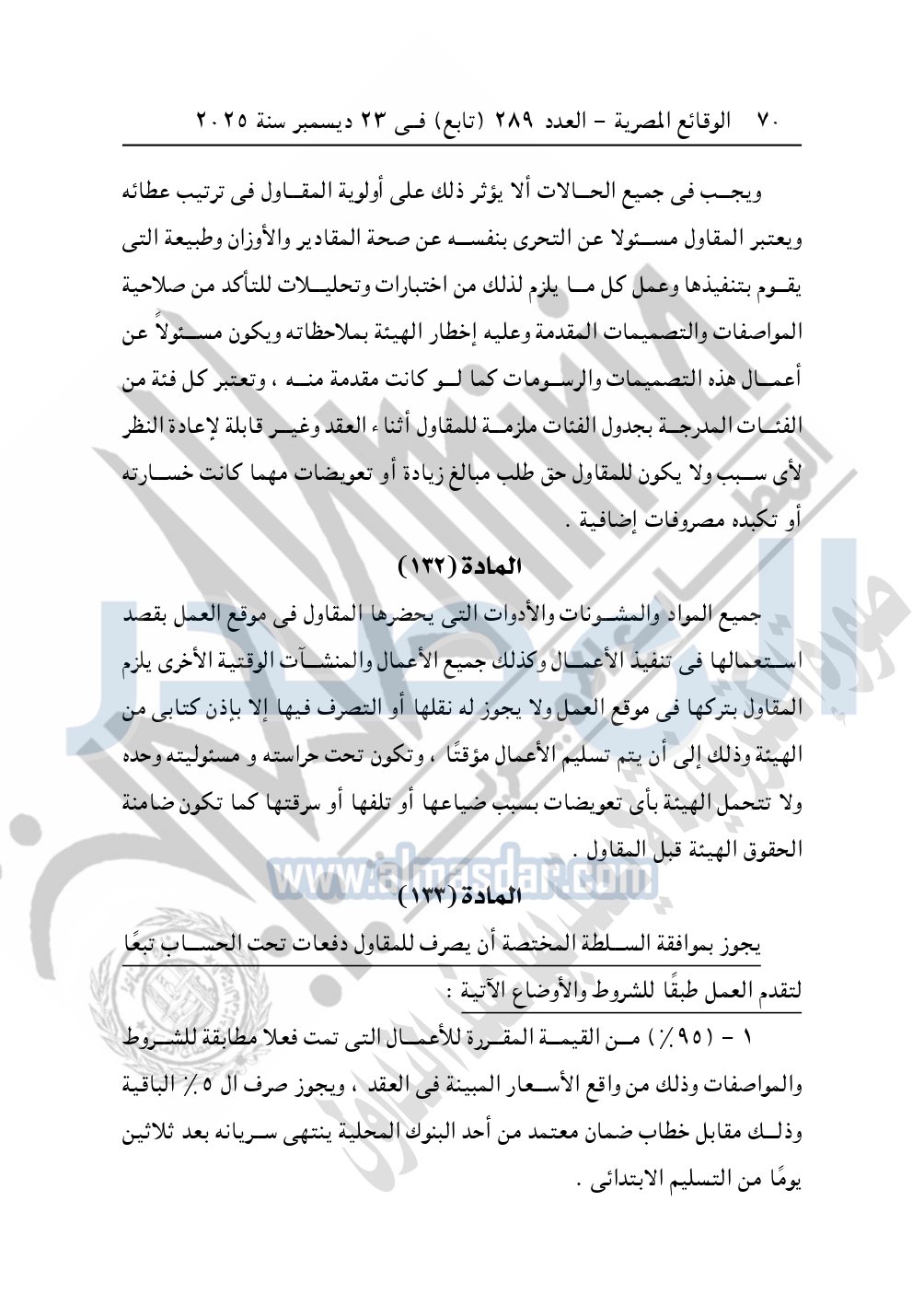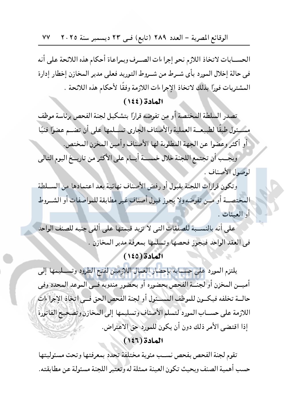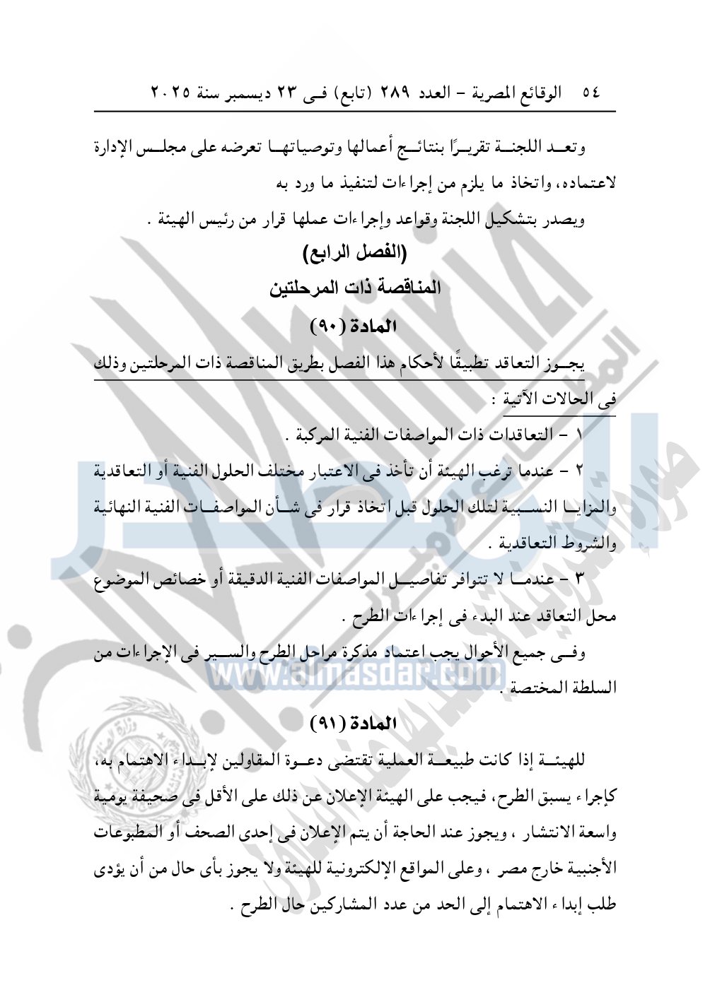 نشرت الوقائع المصرية، في العدد 289 "تابع"، الصادر في 23 ديسمبر 2025، قرار الهيئة العامة للمنطقة الاقتصادية للمثلث الذهبي، رقم 29 لسنة 2025، بشأن إصدار لائحة المشتريات والعقود.
