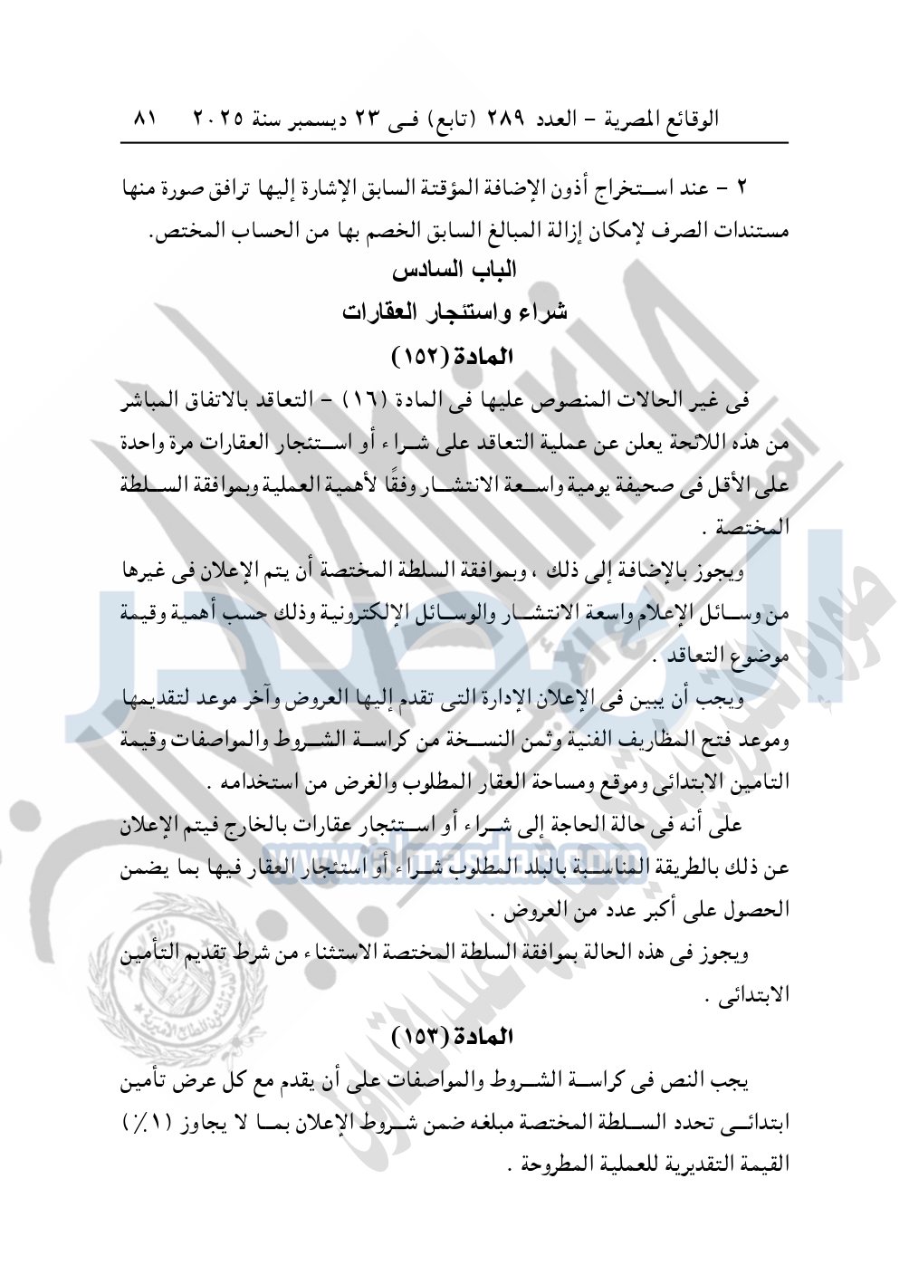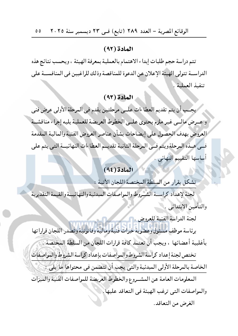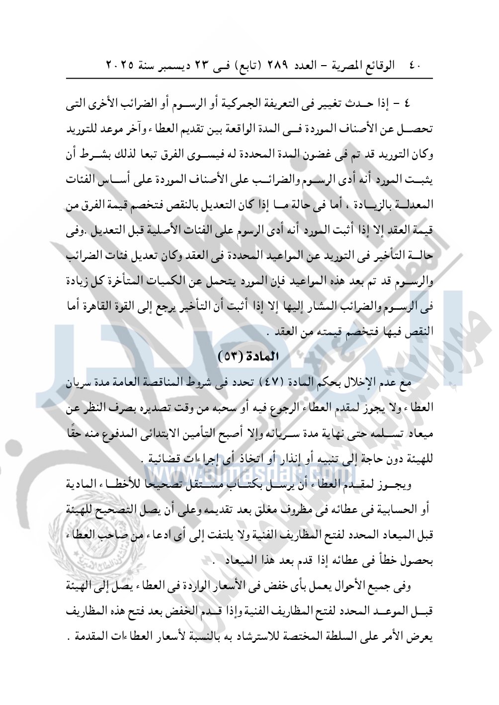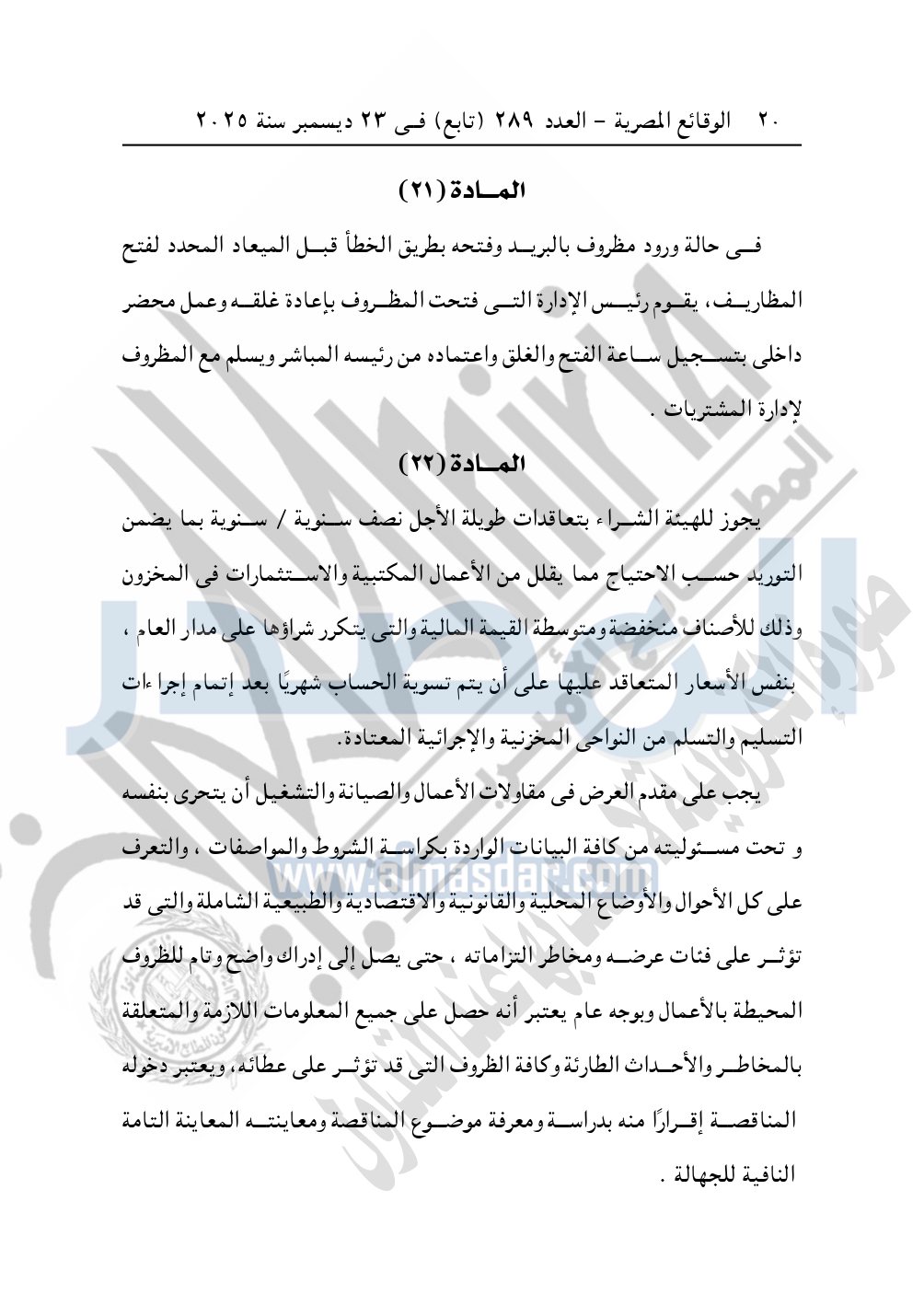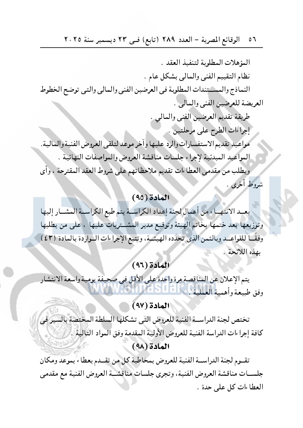 نشرت الوقائع المصرية، في العدد 289 "تابع"، الصادر في 23 ديسمبر 2025، قرار الهيئة العامة للمنطقة الاقتصادية للمثلث الذهبي، رقم 29 لسنة 2025، بشأن إصدار لائحة المشتريات والعقود.