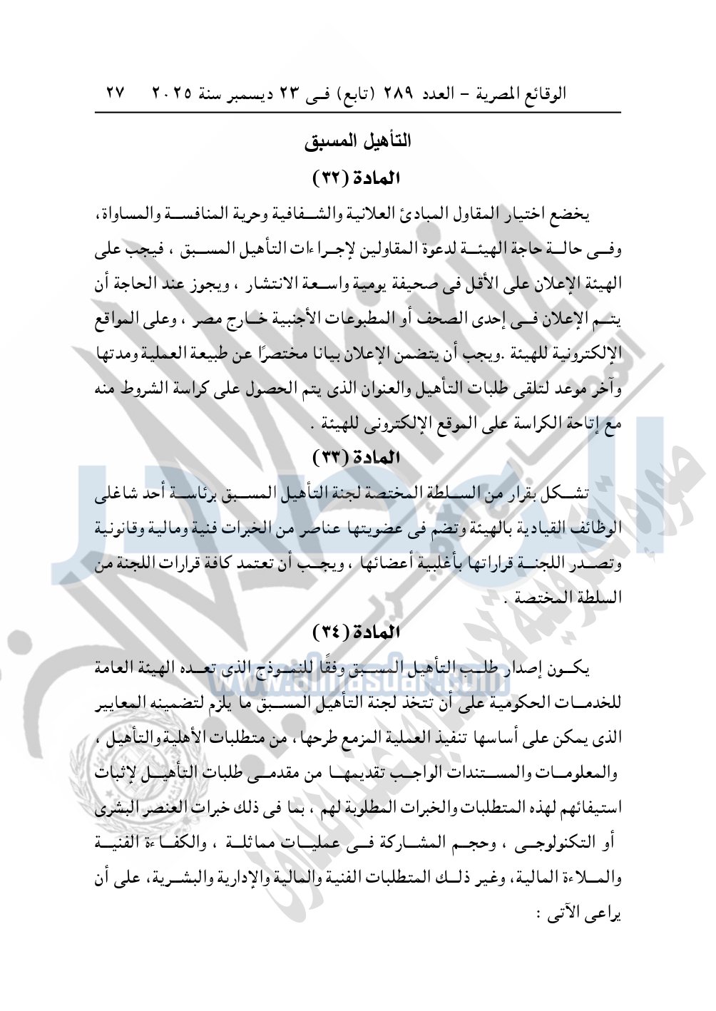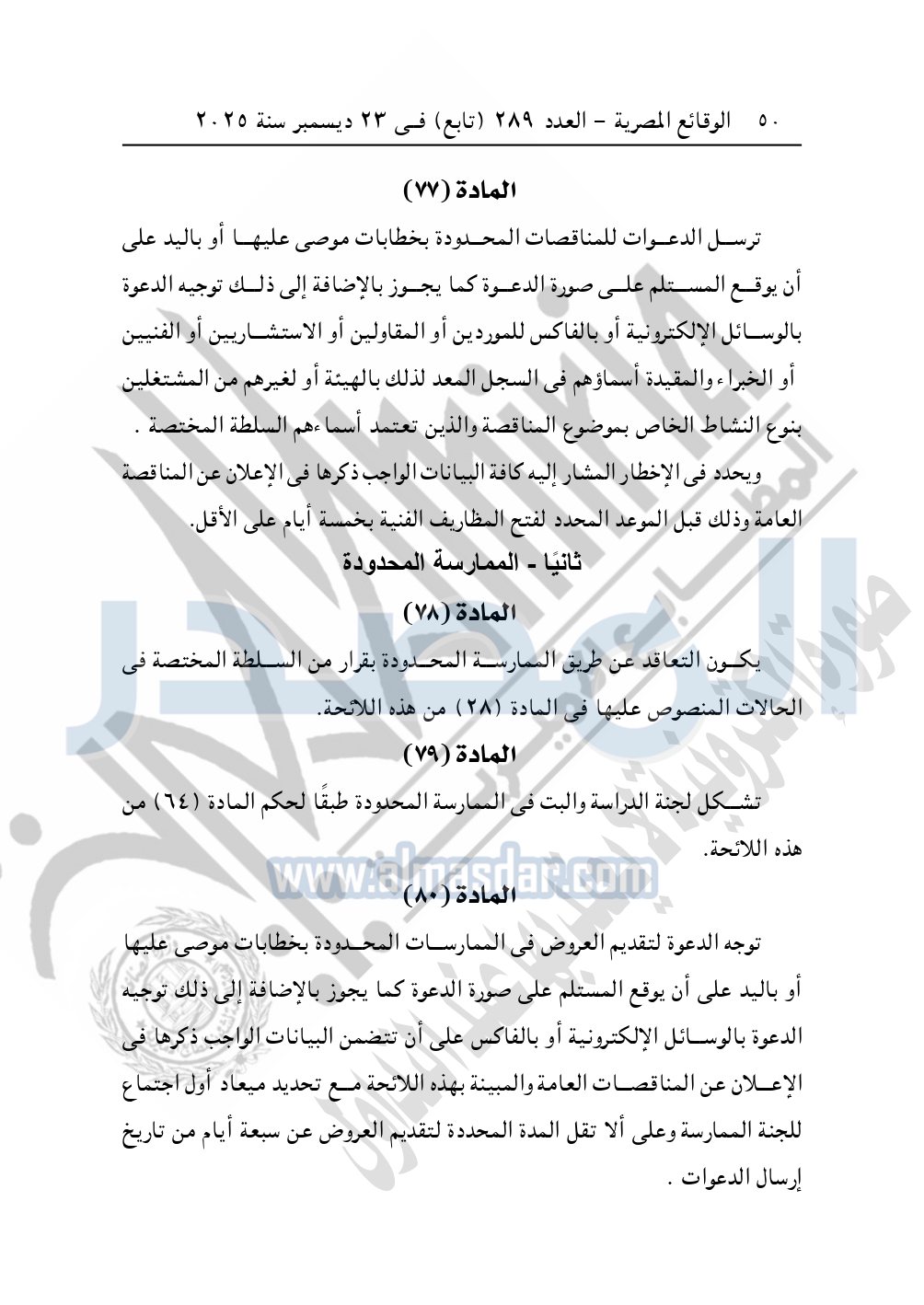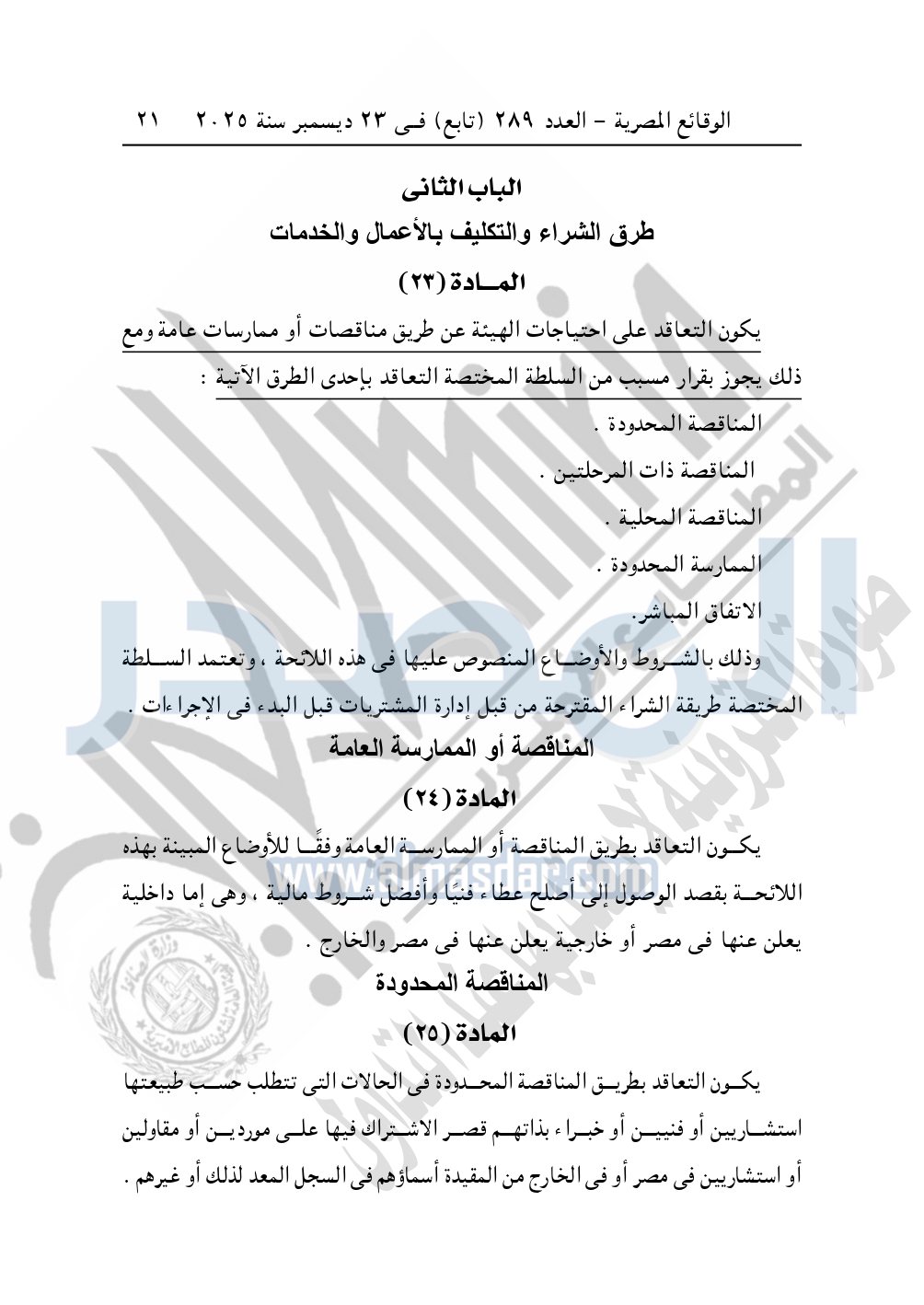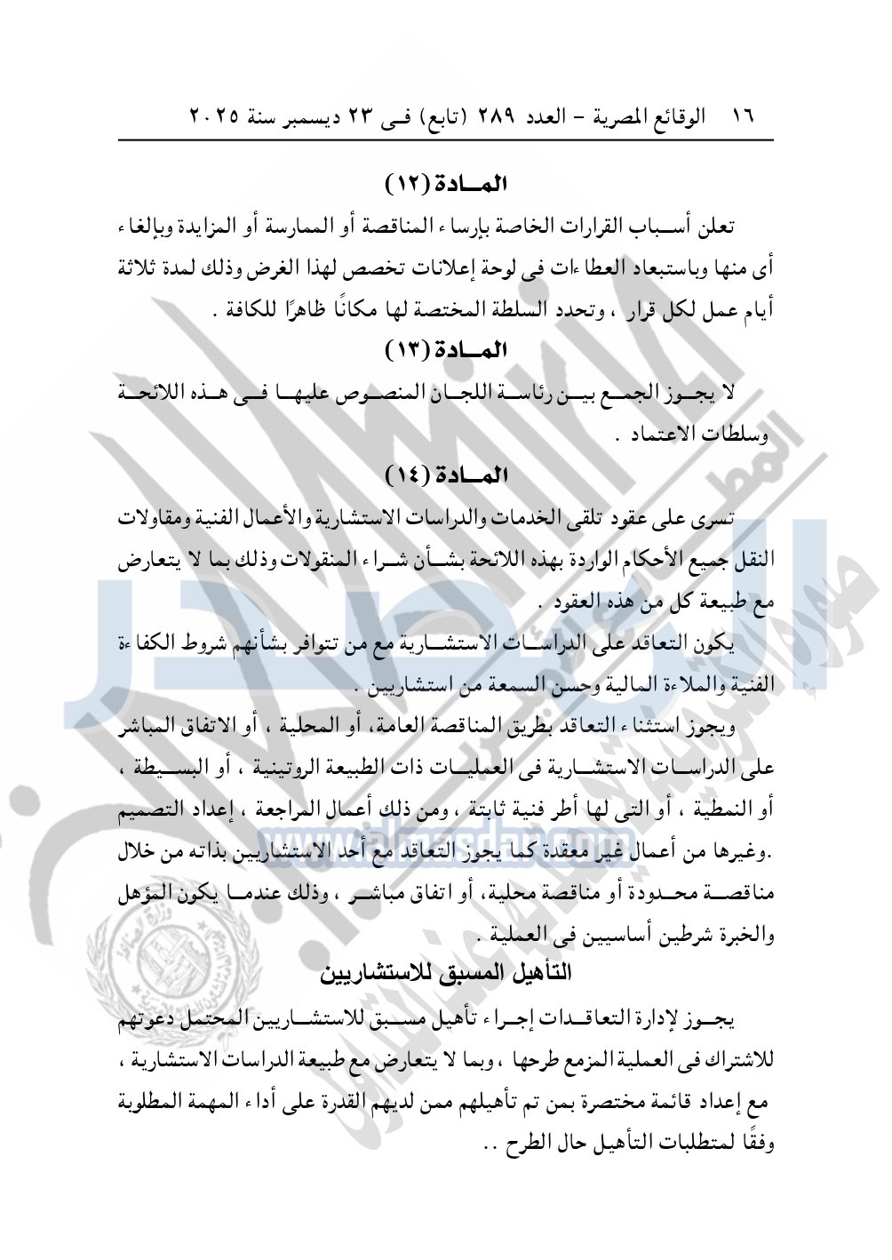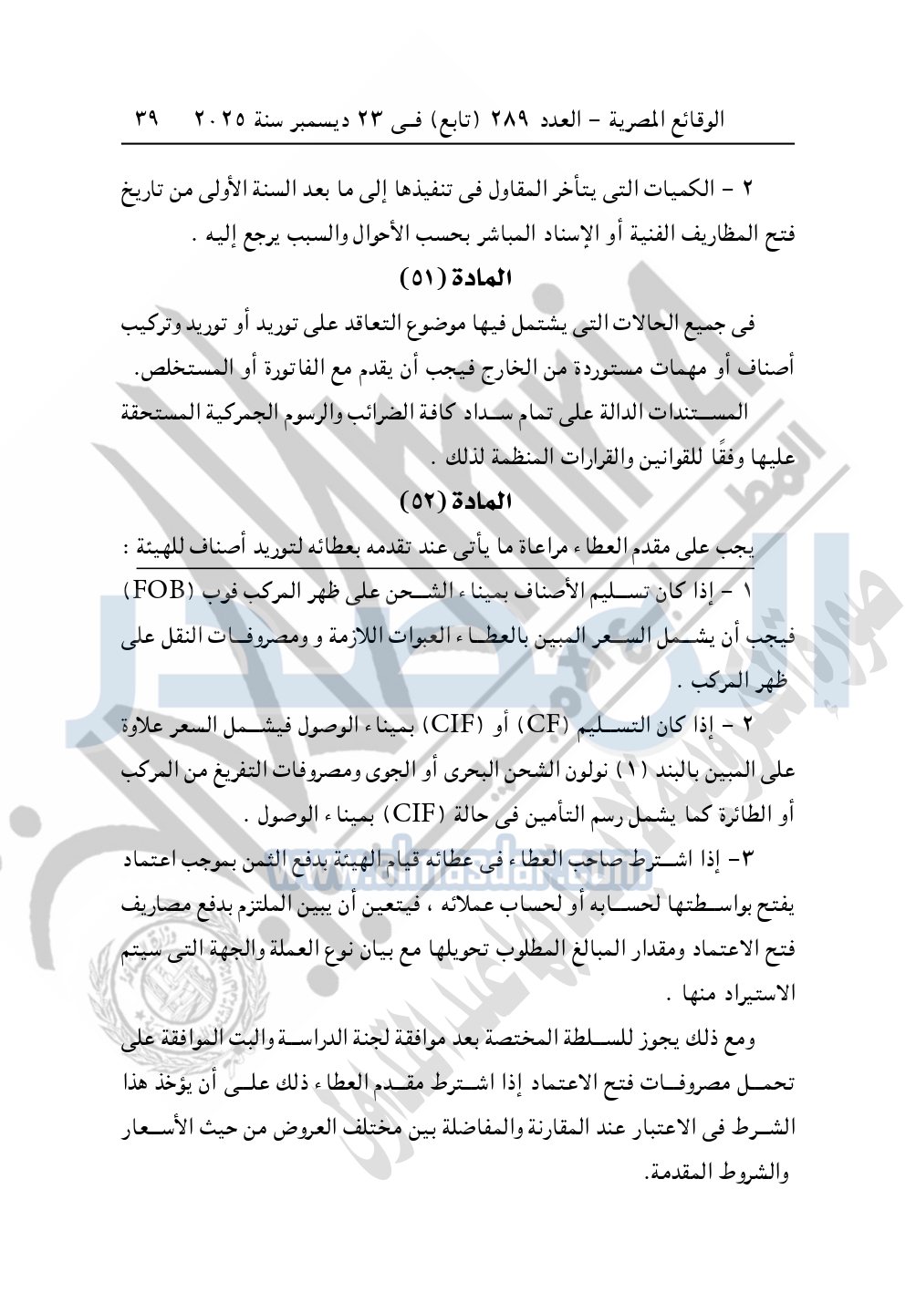 نشرت الوقائع المصرية، في العدد 289 "تابع"، الصادر في 23 ديسمبر 2025، قرار الهيئة العامة للمنطقة الاقتصادية للمثلث الذهبي، رقم 29 لسنة 2025، بشأن إصدار لائحة المشتريات والعقود.