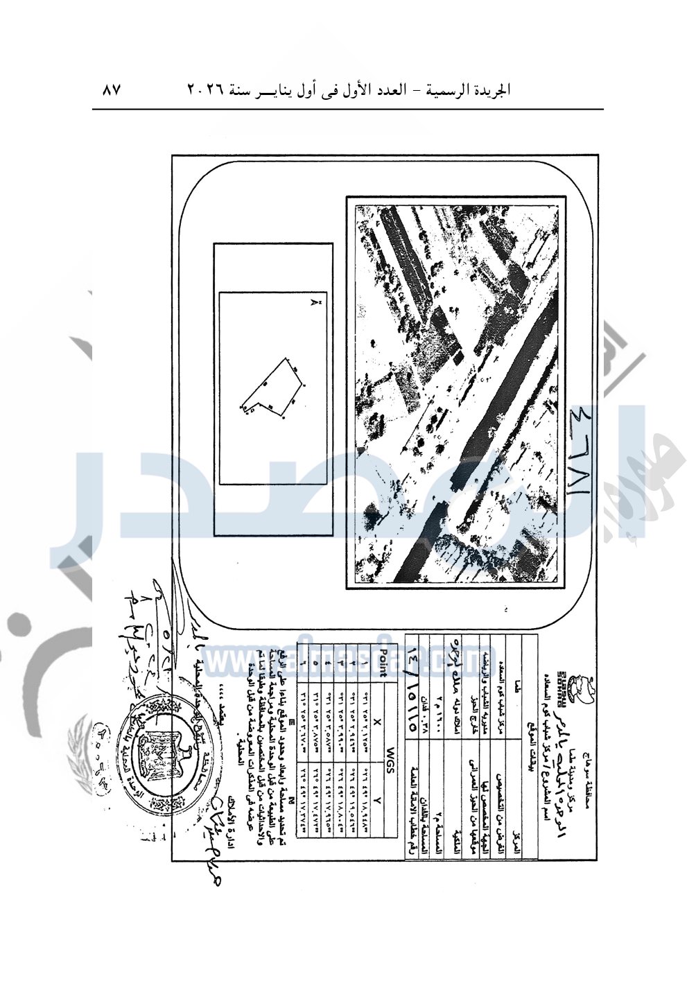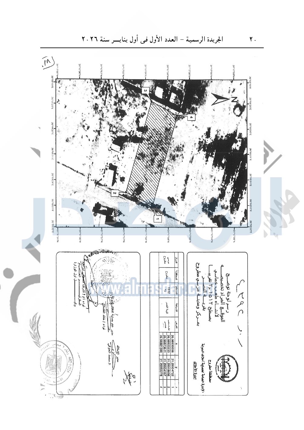كما نشرت الجريدة الرسمية، في العدد الأول، الصادر في أول يناير 2026، قرار رئيس مجلس الوزراء، رقم 4676 لسنة 2025، بشأن تخصيص قطعة أرض لإقامة مركز شباب سبك الأحد بمحافظة المنوفية.