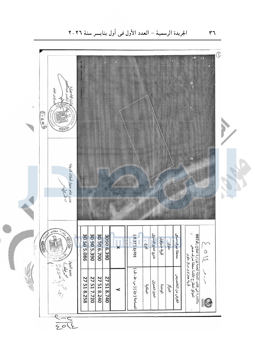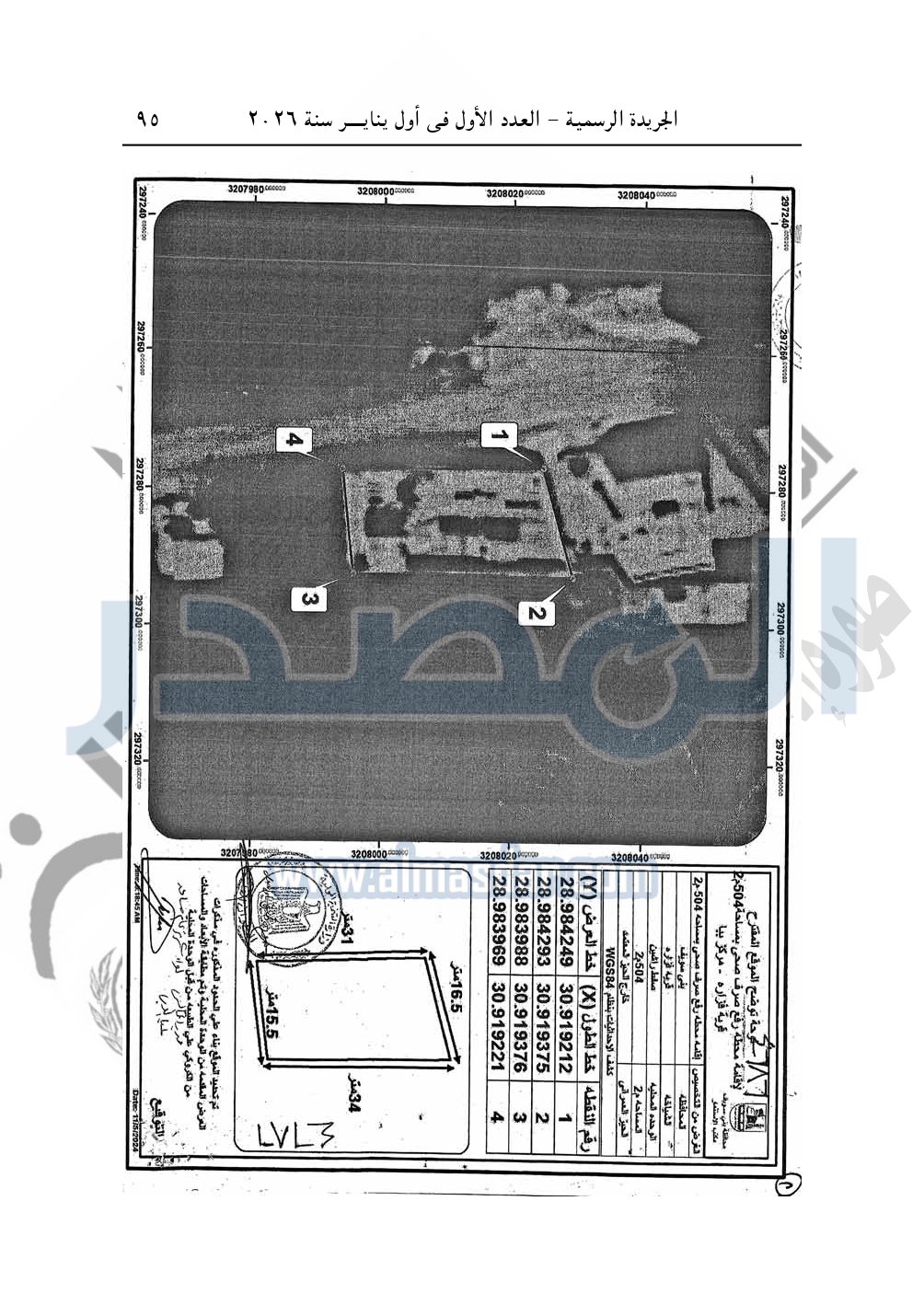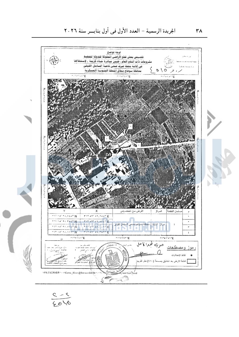 كما نشرت الجريدة الرسمية، في العدد الأول، الصادر في أول يناير 2026، قرار رئيس مجلس الوزراء، رقم 4515 لسنة 2025، بشأن تخصيص قطعة أرض لإقامة محطة صرف صحى بمحافظة سوهاج.