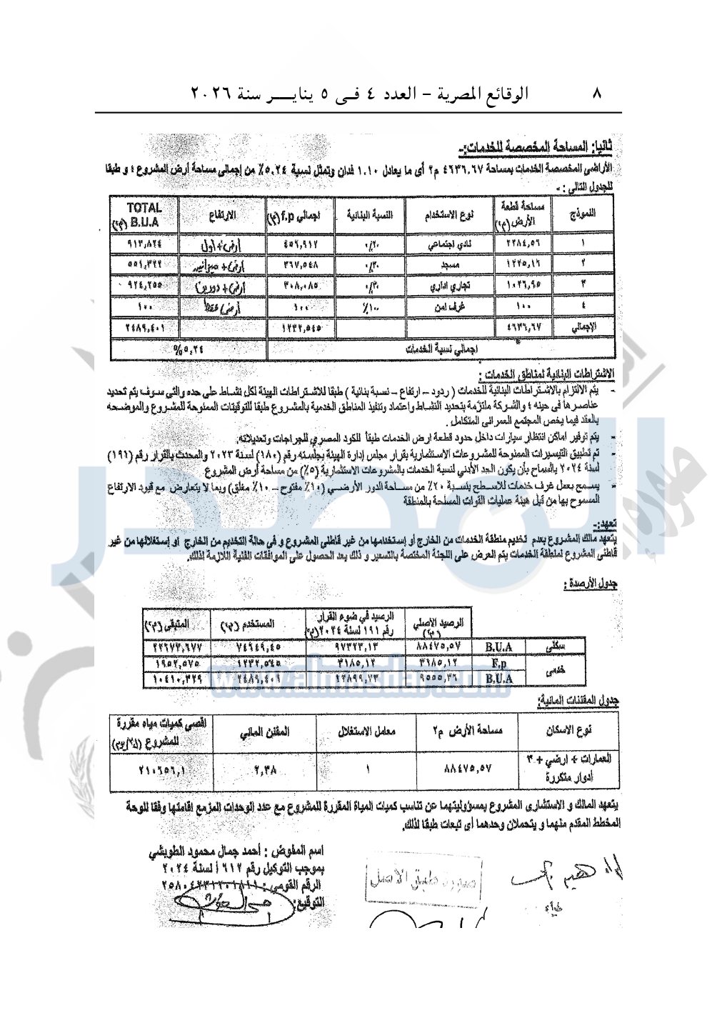 تلتزم الشركة المخصص لها قطعة الأرض بالتعهد الموقع منها بأن تكون مناطق الخدمات بالمشروع لخدمة قاطني المشروع فقط، وفى حالة التخديم من الخارج يتم إعادة تسعير منطقة الخدمات بواسطة اللجان المختصة بالهيئة بعد موافقة قطاع التخطيط والمشروعات.