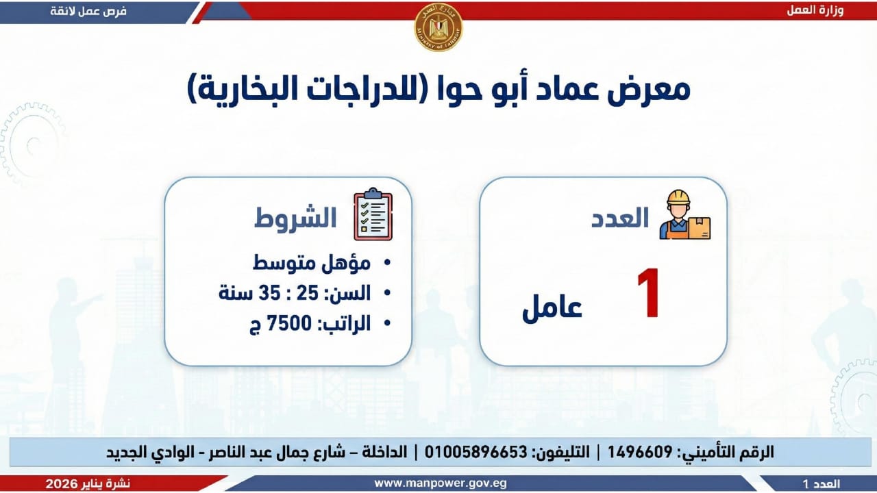 وزارة «العمل» تعلن توفير 7293 وظيفة في 12 محافظة