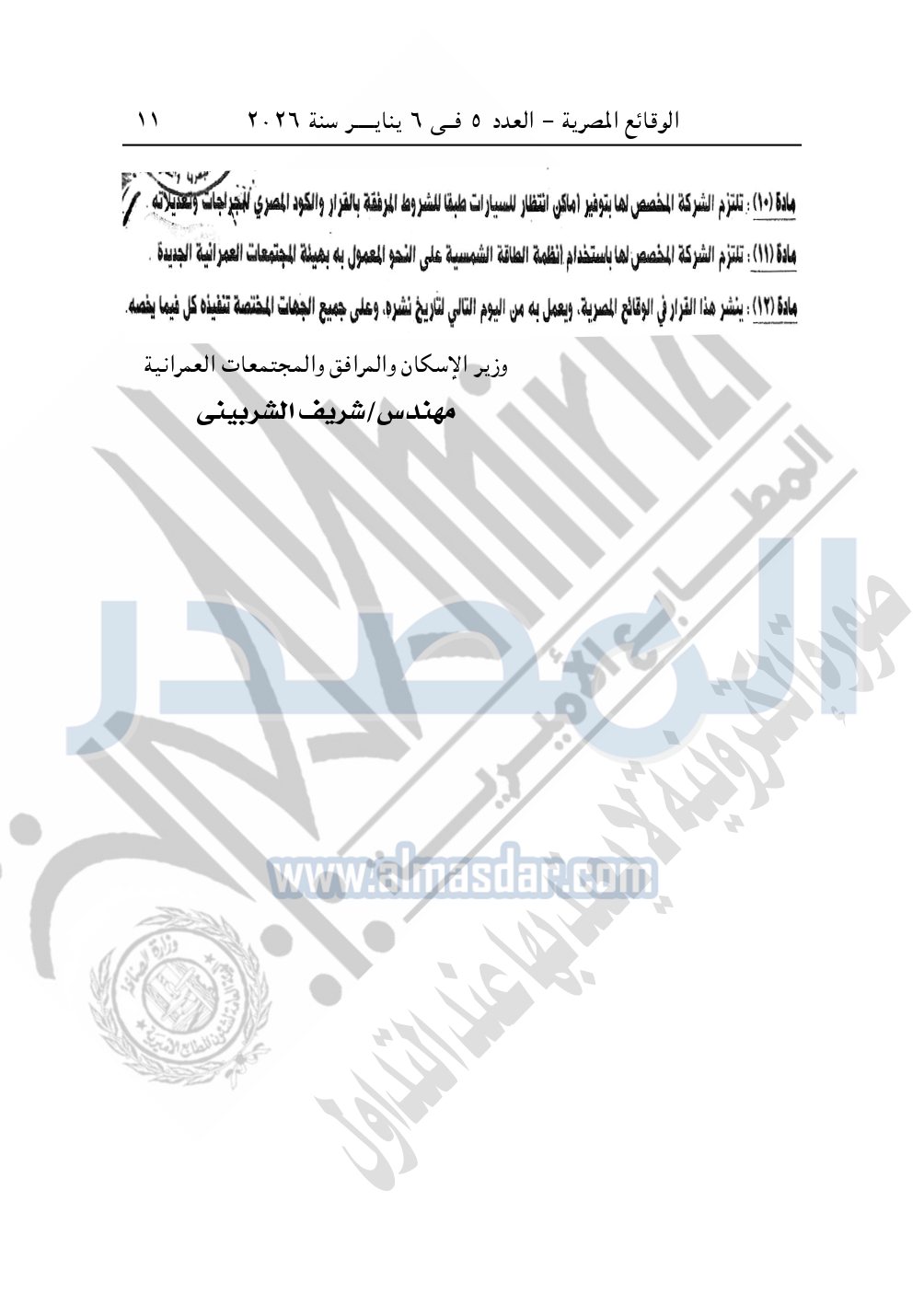 تلتزم الشركة المخصص لها بموافاة جهاز المدينة المختص بالمستندات اللازمة لاستخراج التراخيص طبقا لاحكام قانون البناء الصادر بالقانون رقم 119 لسنة 2008 ولائحته التنفيذية وتعديلاتهما.