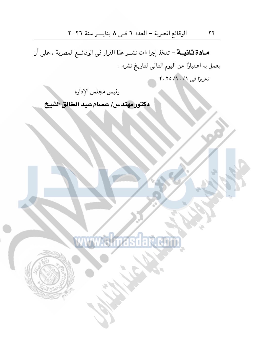 تتخذ إجراءات نشر هذا القرار فى الوقائع المصرية، على أن يعمل به اعتبارا من اليوم التالي لتاريخ نشره.