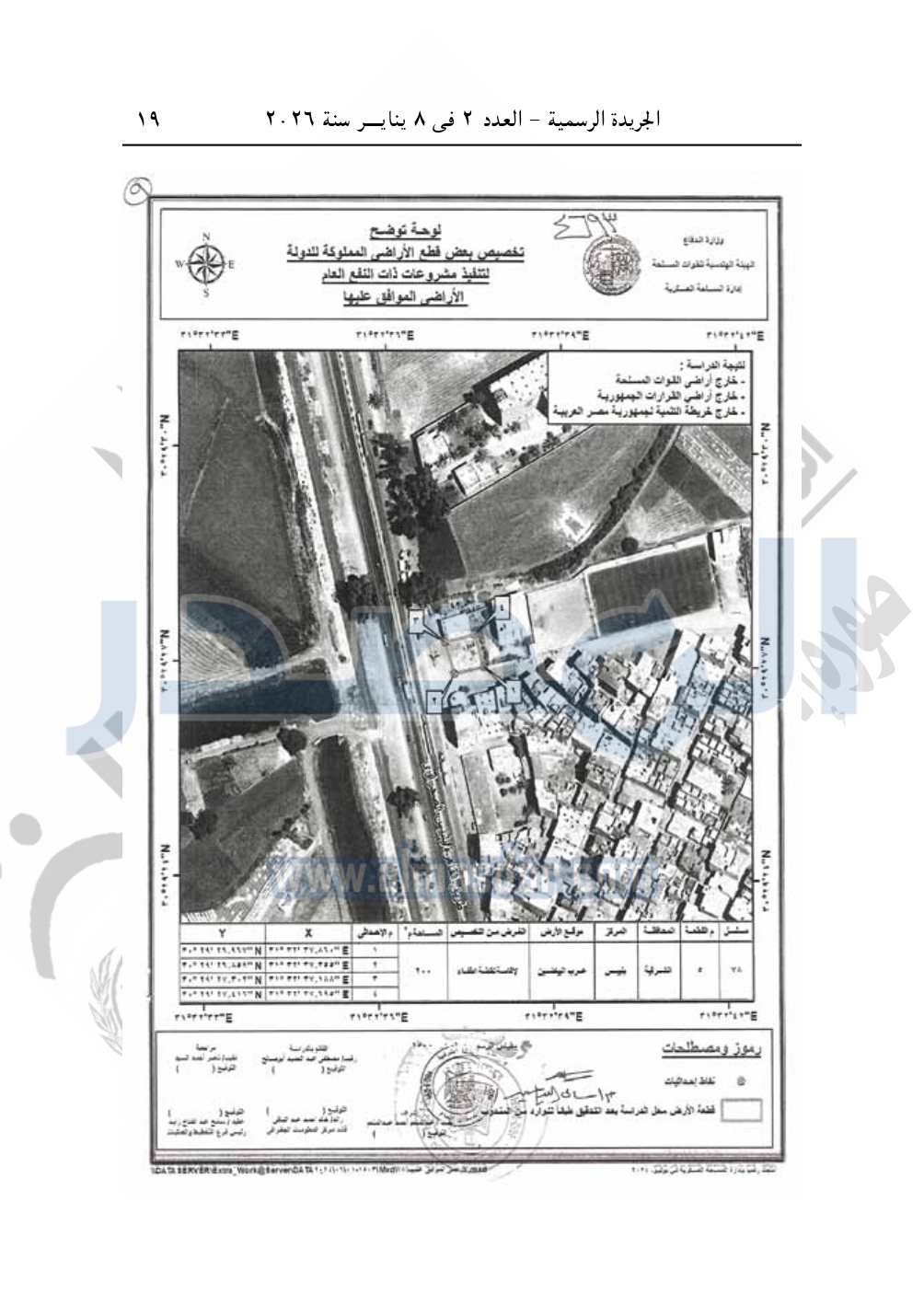 تخصص قطعة أرض من أملاك الدولة الخاصة بمساحة 200م2 زمام قرية عرب البياضين ناحية قرية نوبة التابعة للوحدة المحلية لقرية أولاد سيف بمركز ومدينة بلبيس بمحافظة الشرقية، وفقا للوحة وجدول الإحداثيات المرفقين، بالمجان، لصالح الإدارة العامة للحماية المدنية بوزارة الداخلية لإقامة نقطة إطفاء.