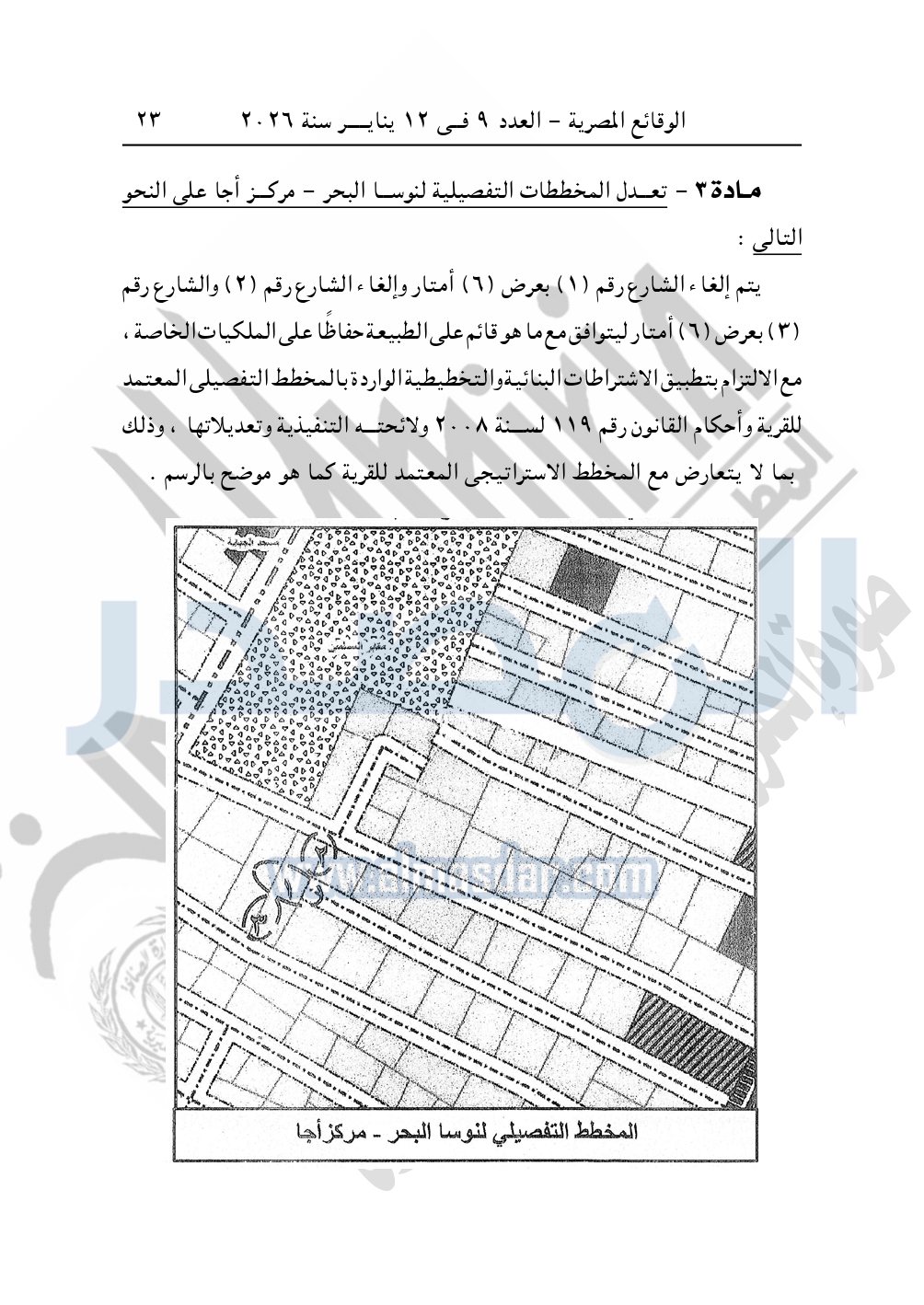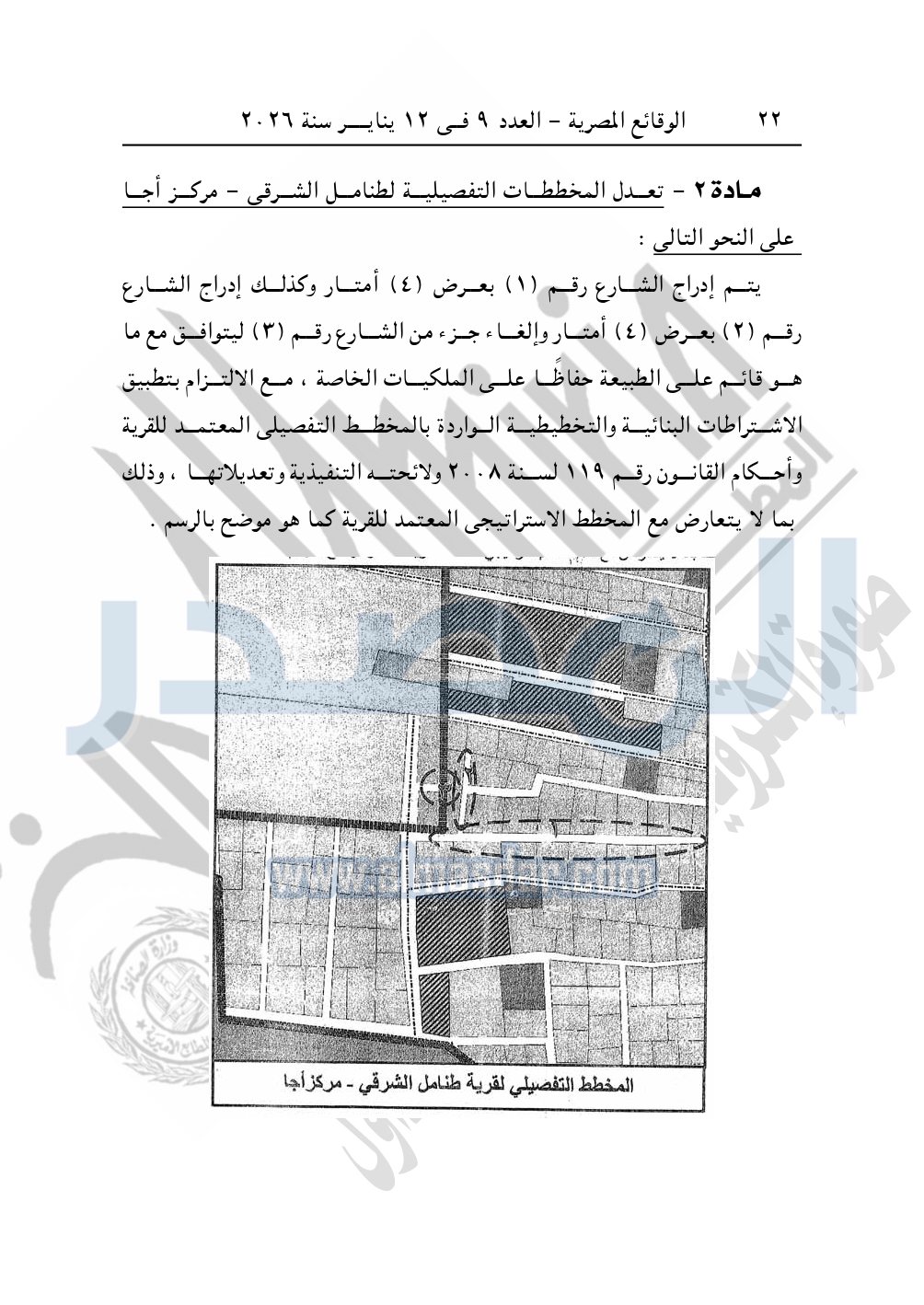 تعدل المخططات التفصيلية لكفر عوض - مركز أجا على النحو التالي:
