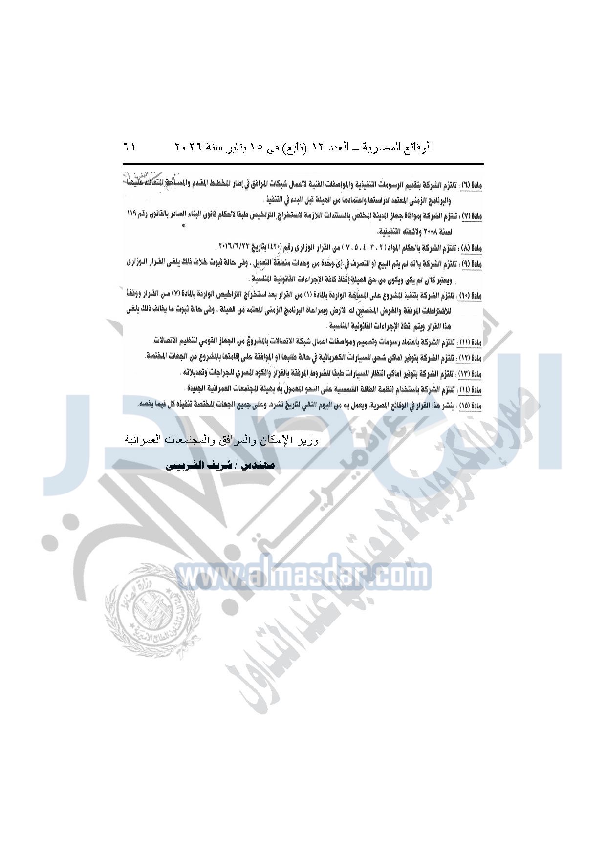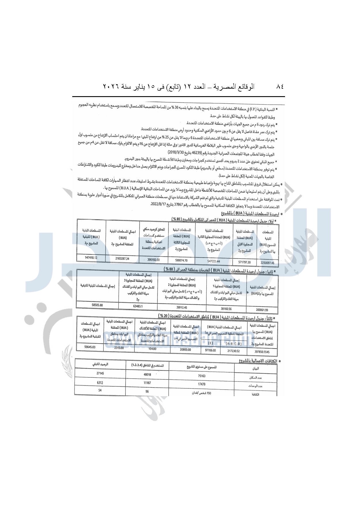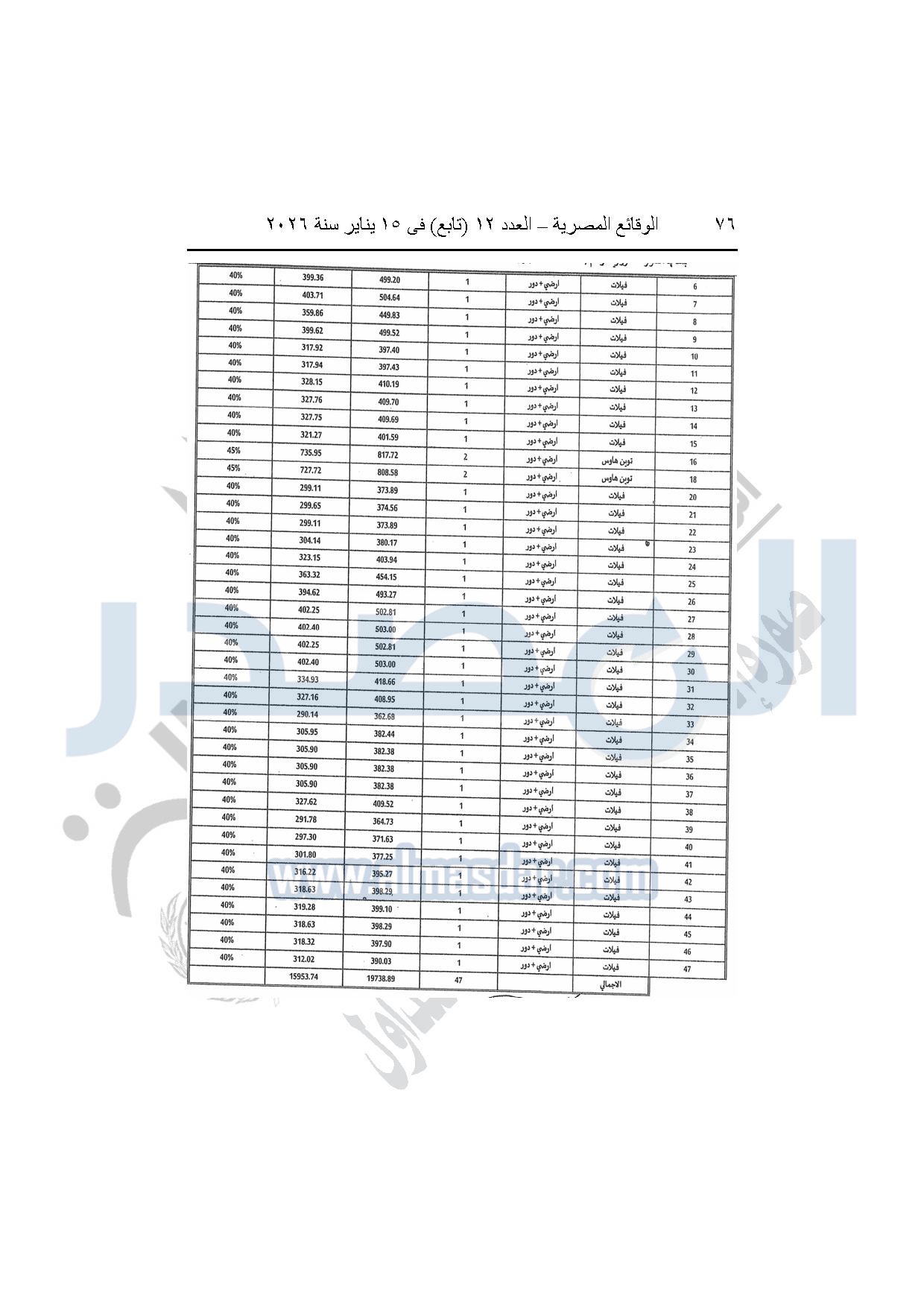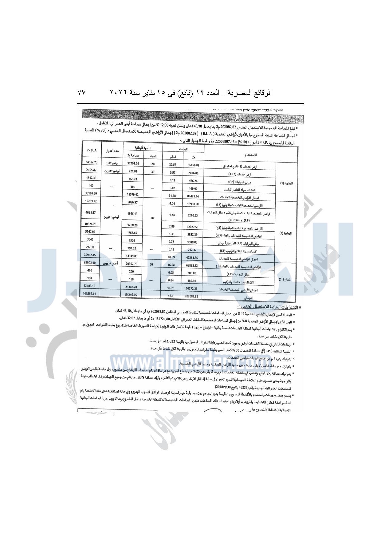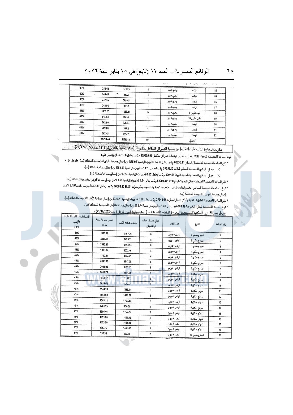 نشرت الوقائع المصرية، في العدد 12 "تابع"، الصادر بتاريخ 15 يناير 2026، قرار وزارة الإسكان والمرافق والمجتمعات العمرانية، رقم 440 لسنة 2025، بتاريخ 14-4-2025، بشأن اعتماد المخطط التفصيلي للمنطقة "E" وتعديل جزء من المخطط التفصيلي للمنطقة "A" بالمجاورة "4 أ" وتعديل جزء من المخطط التفصيلي للمنطقة "ج" بالمجاورة الثانية ضمن قطعة الأرض رقم "9" بمساحة 501.09 فدان بمنطقة الألف فدان غرب مشروع مدينتى بالامتداد الشرقي لمدينة القاهرة الجديدة والمخصصة لشركة ماونتن فيو للتنمية والاستثمار العقارى لإقامة مشروع "عمرانى متكامل بنسبة 80% وخدمات بنسبة 20%" بنظام المشاركة مع الهيئة.