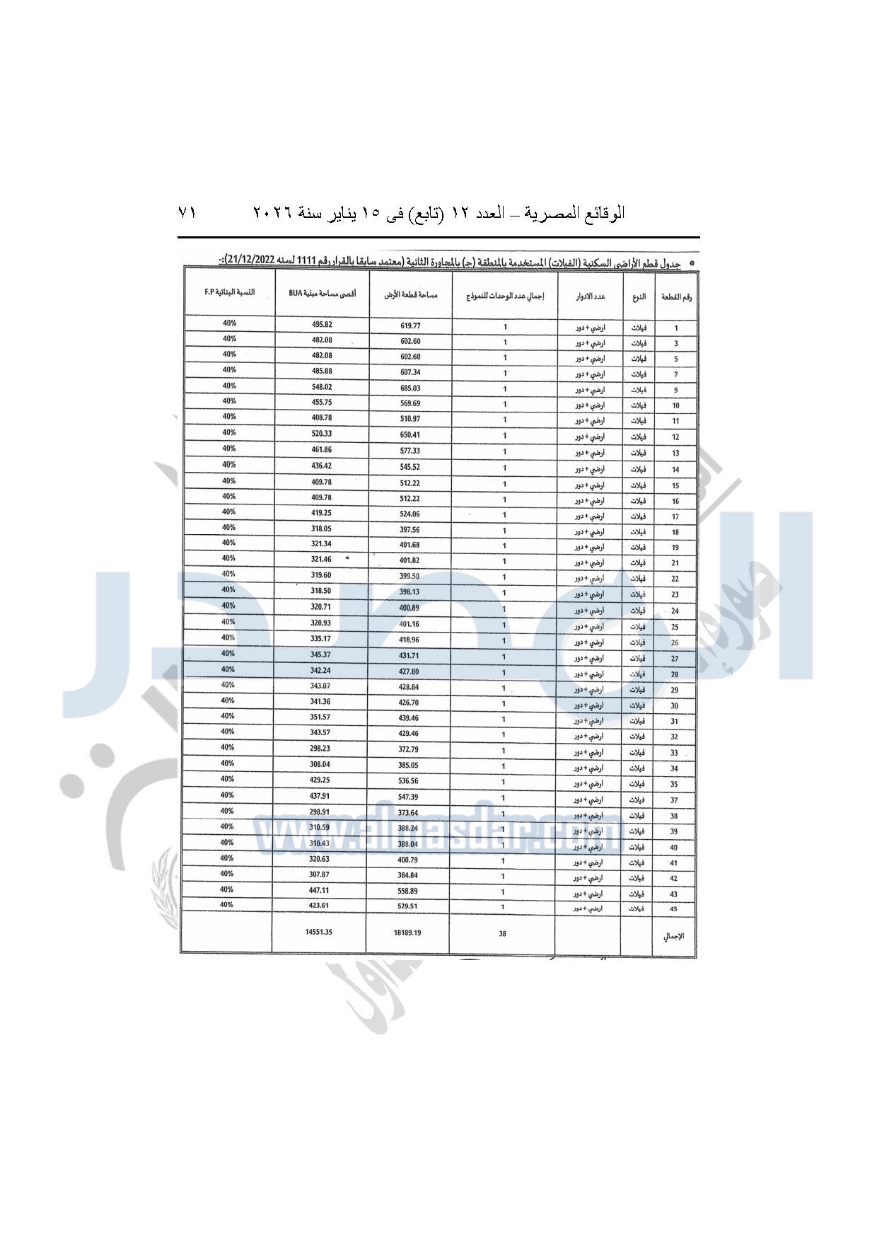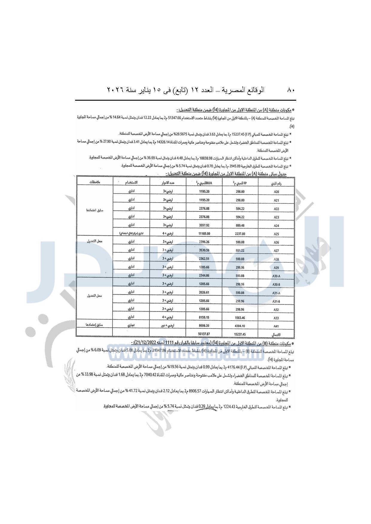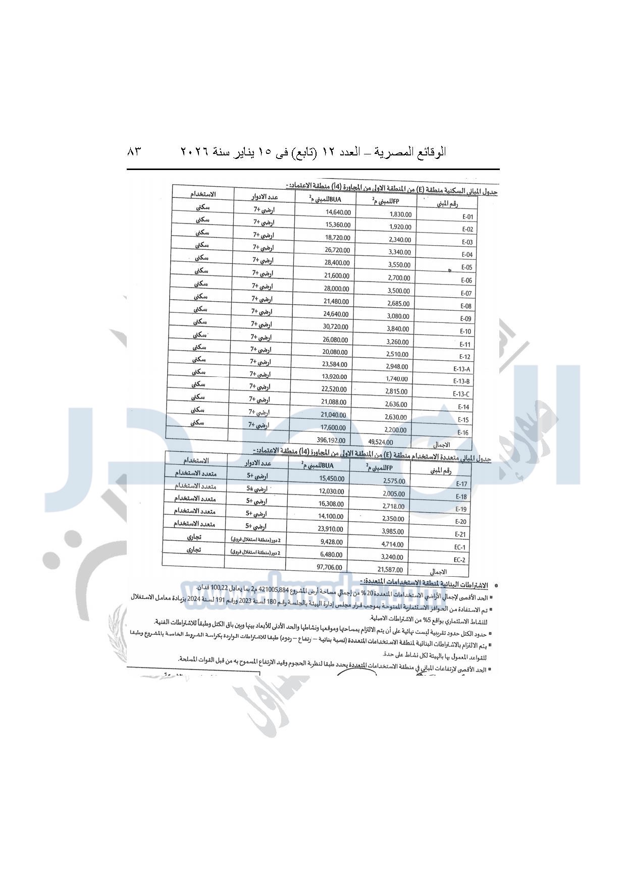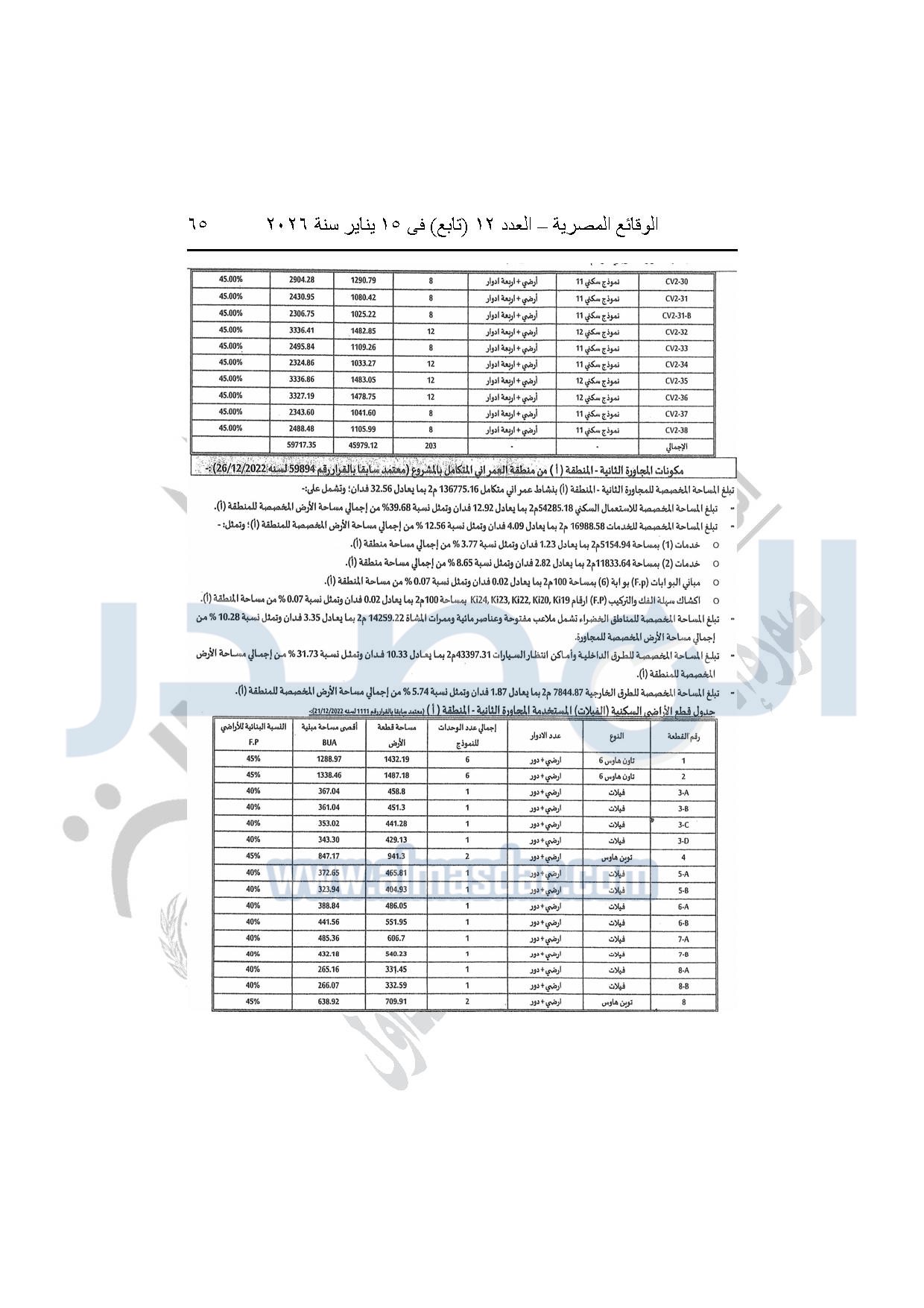 نشرت الوقائع المصرية، في العدد 12 "تابع"، الصادر بتاريخ 15 يناير 2026، قرار وزارة الإسكان والمرافق والمجتمعات العمرانية، رقم 440 لسنة 2025، بتاريخ 14-4-2025، بشأن اعتماد المخطط التفصيلي للمنطقة "E" وتعديل جزء من المخطط التفصيلي للمنطقة "A" بالمجاورة "4 أ" وتعديل جزء من المخطط التفصيلي للمنطقة "ج" بالمجاورة الثانية ضمن قطعة الأرض رقم "9" بمساحة 501.09 فدان بمنطقة الألف فدان غرب مشروع مدينتى بالامتداد الشرقي لمدينة القاهرة الجديدة والمخصصة لشركة ماونتن فيو للتنمية والاستثمار العقارى لإقامة مشروع "عمرانى متكامل بنسبة 80% وخدمات بنسبة 20%" بنظام المشاركة مع الهيئة.