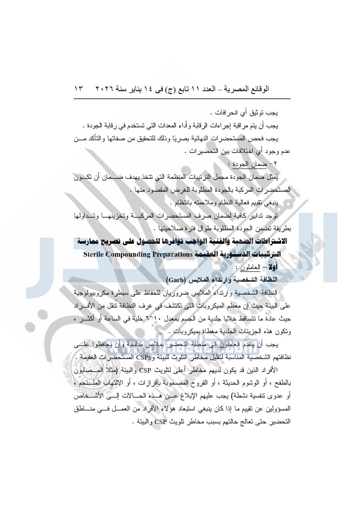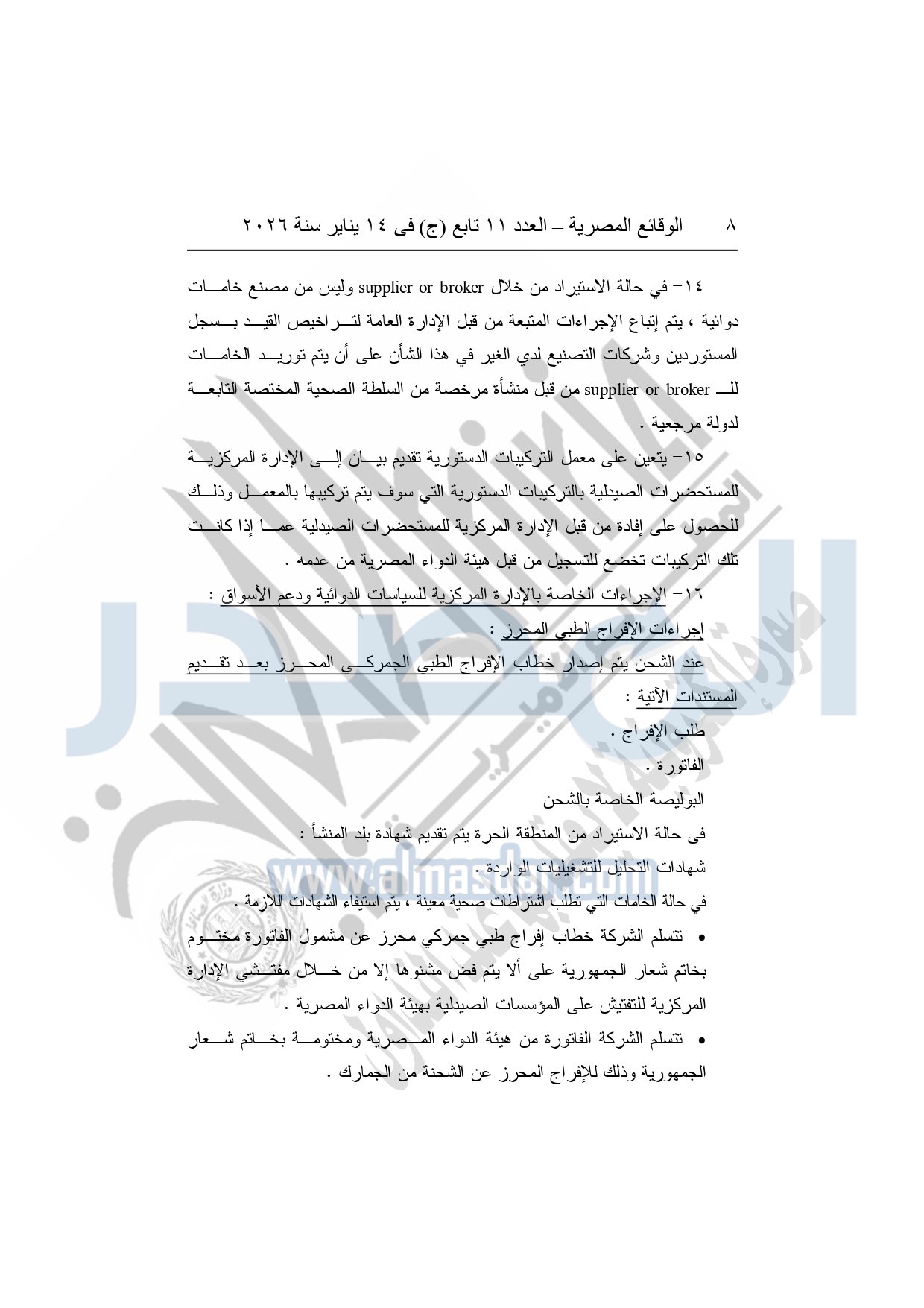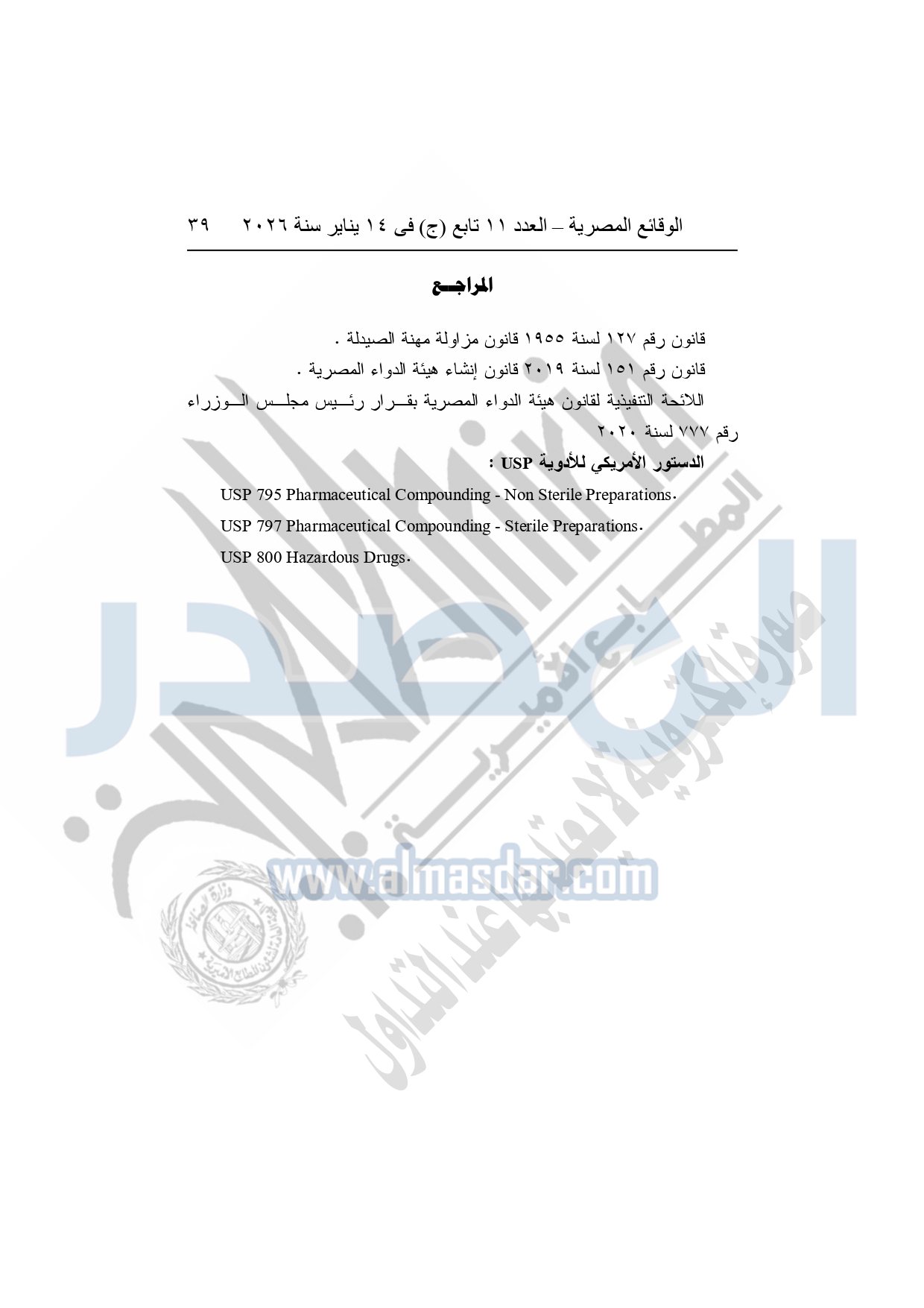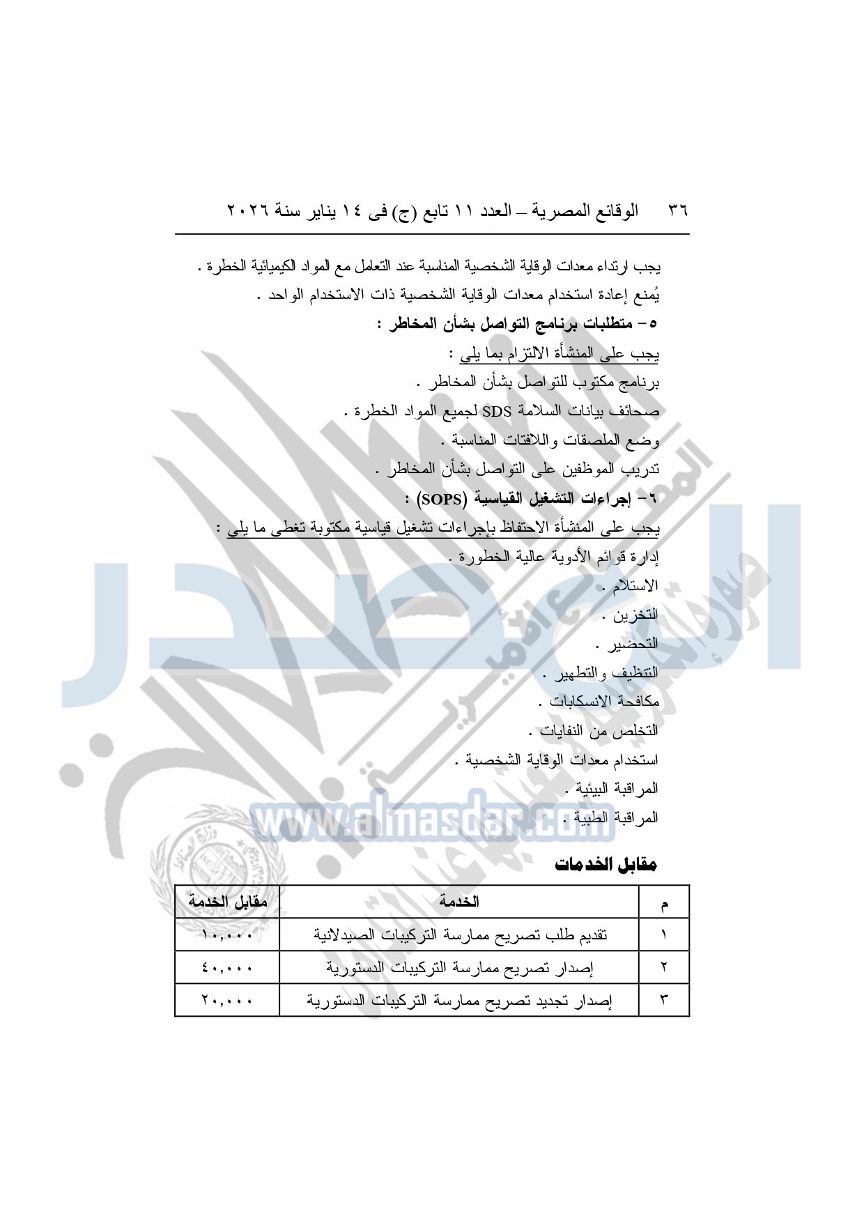 نشرت الوقائع المصرية، في العدد 11 تابع "ج"، الصادر في 14 يناير سنة 2026، قرار هيئة الدواء المصرية، قرار رئيس الهيئة رقم 868 لسنة 2025، بشأن قواعد وإجراءات واشتراطات مزاولة نشاط تركيب المستحضرات الصيدلية الدستورية.