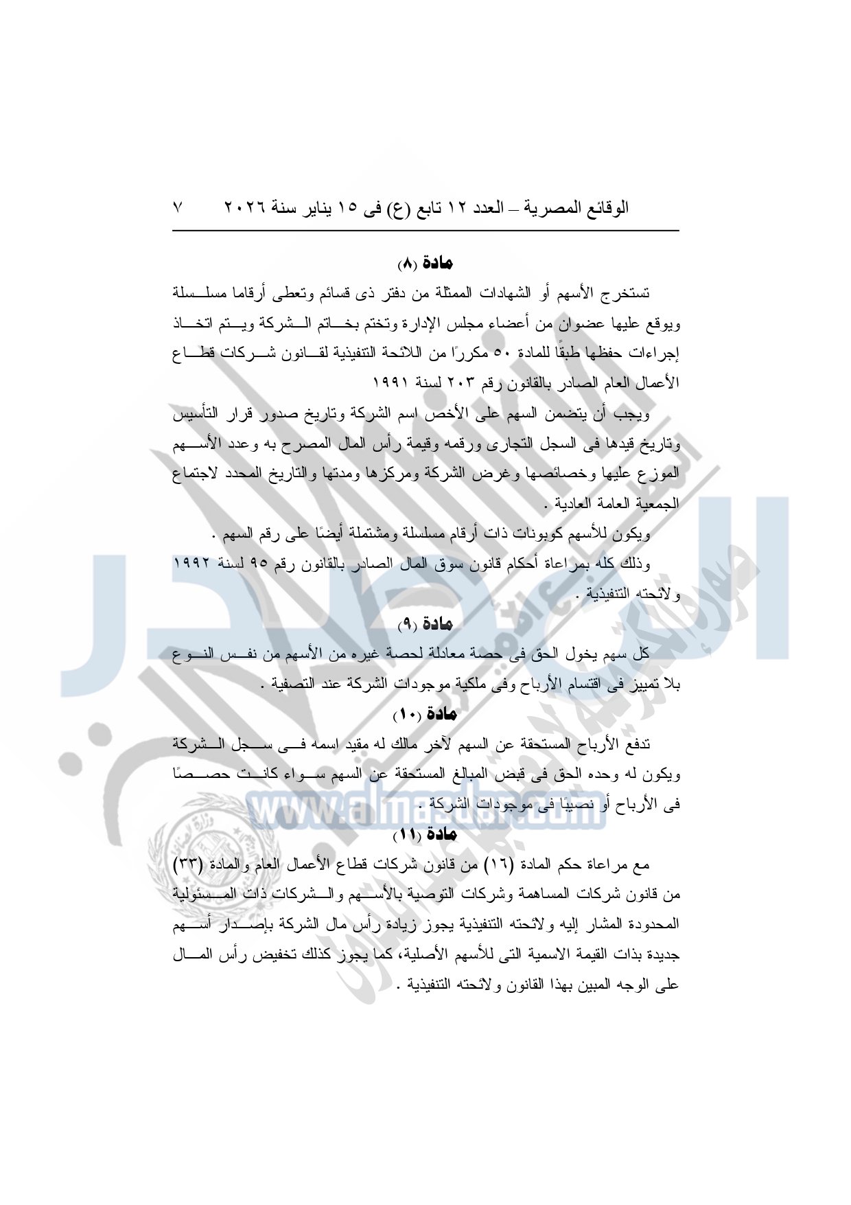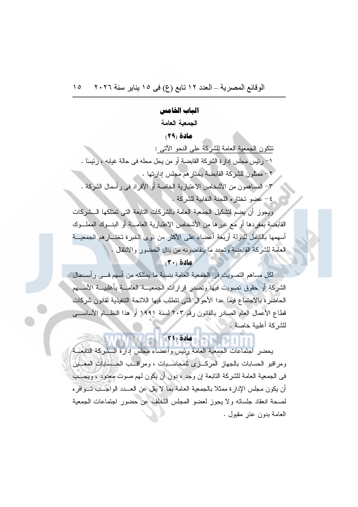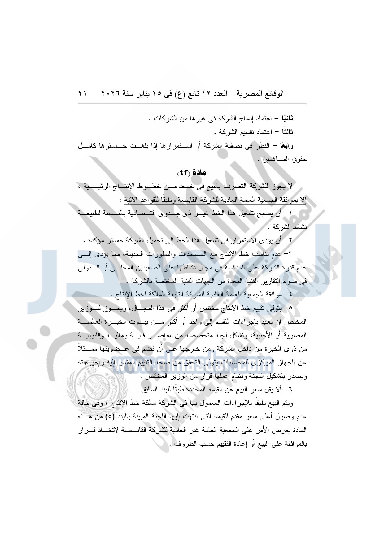 نشرت الوقائع المصرية، في العدد 12 تابع "ع"، الصادر في 15 يناير سنة 2026، قرار الشركة القابضة لمياه الشرب والصرف الصحى "ش.م.ق.م"، بشأن إعتماد النظام الأساسي المعدل لشركة الصرف الصحي بدمياط.
