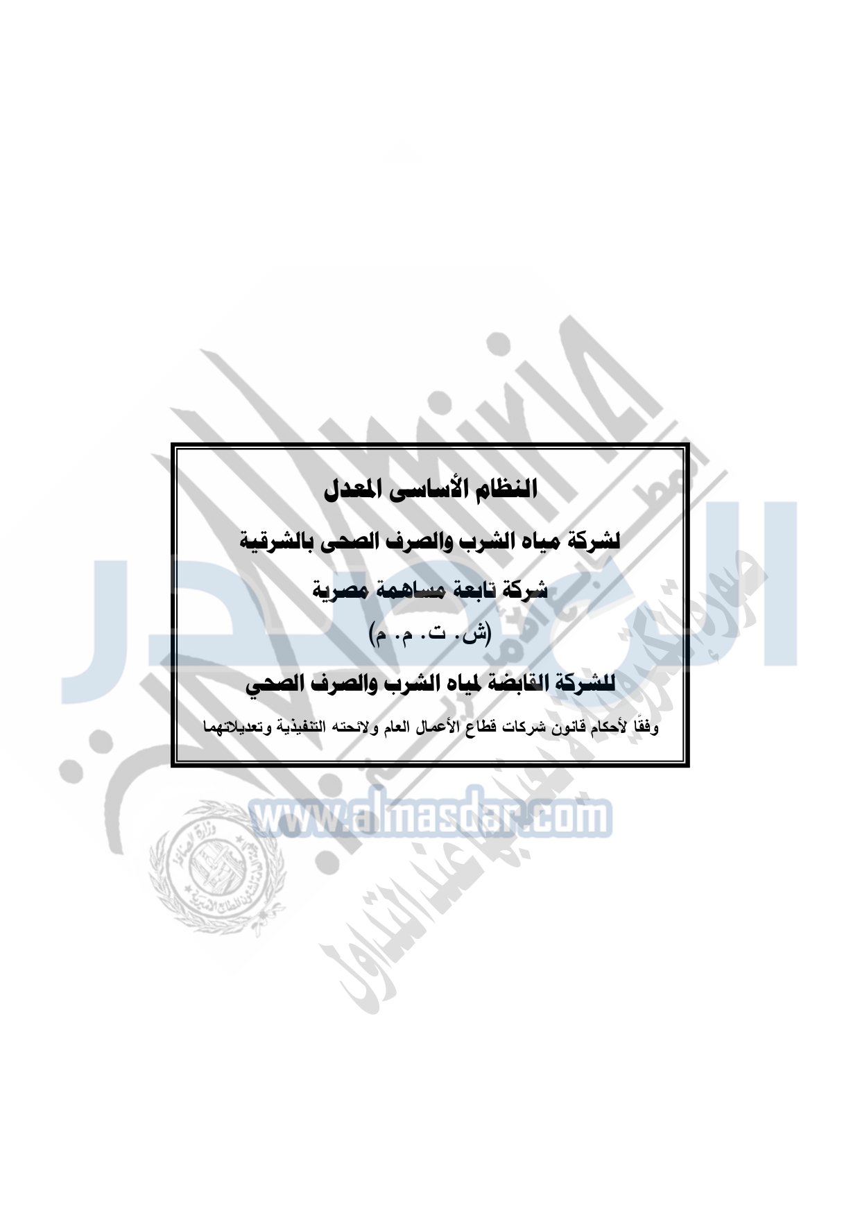 يُعتمد النظام الأساسي المعدل لشركة الصرف الصحي بالشرقية المرفق بهذا القرار