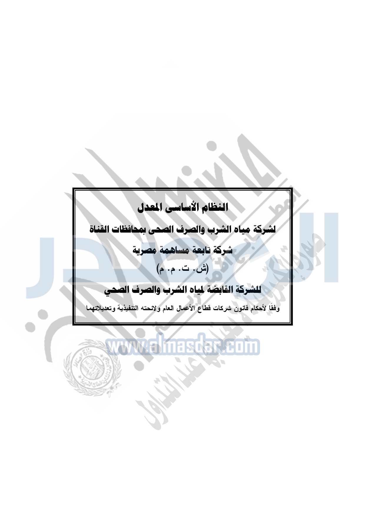 إعتماد تعديل النظام الأساسي لشركة مياه الشرب والصرف الصحي بمحافظات القناة