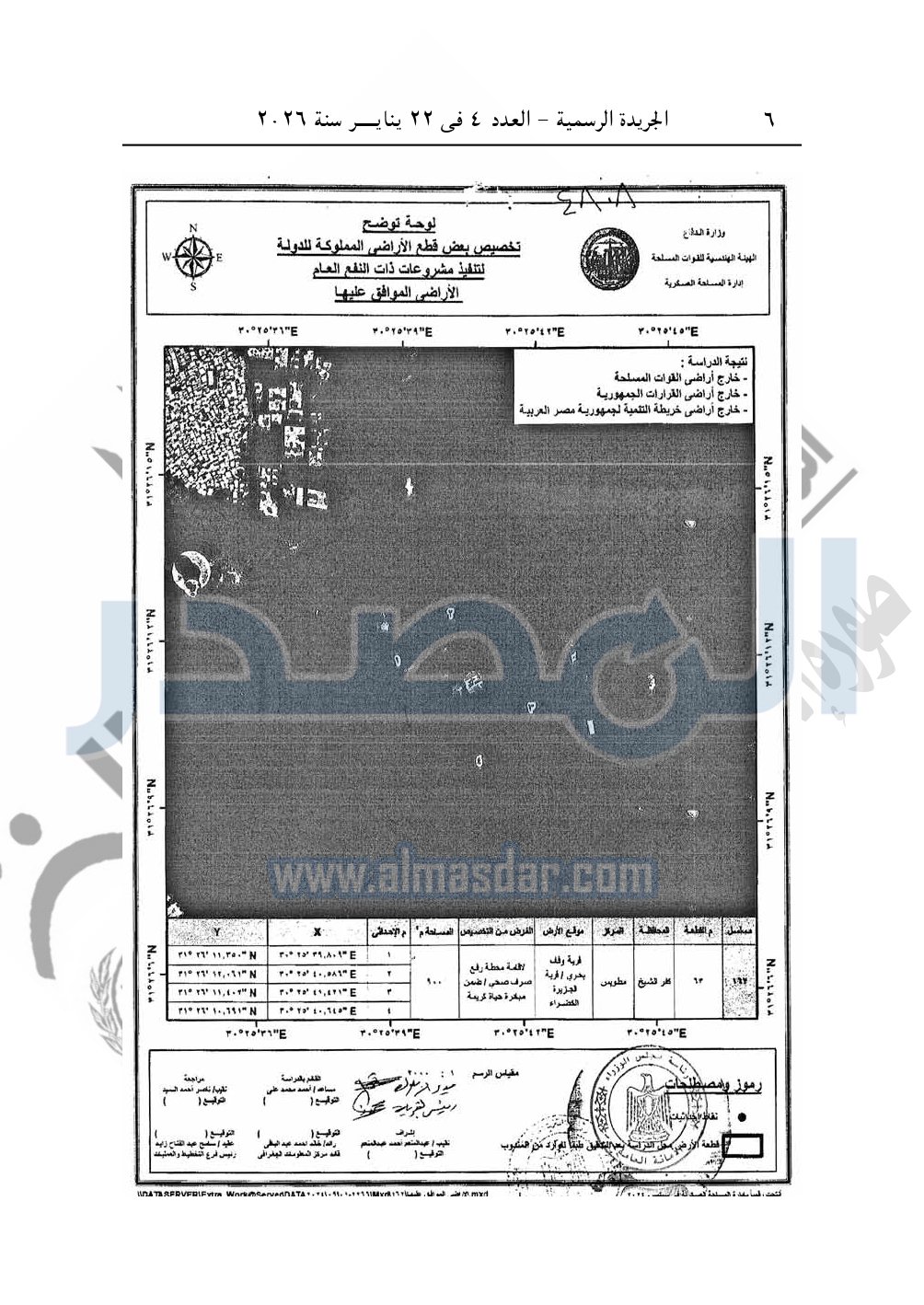 كما نشرت الجريدة الرسمية، في العدد 4، الصادر في 22 يناير 2026، قرار رئيس مجلس الوزراء، رقم 4812 لسنة 2025، بشأن تخصيص قطعة أرض لإقامة محطة رفع صرف صحى بمحافظة الدقهلية.