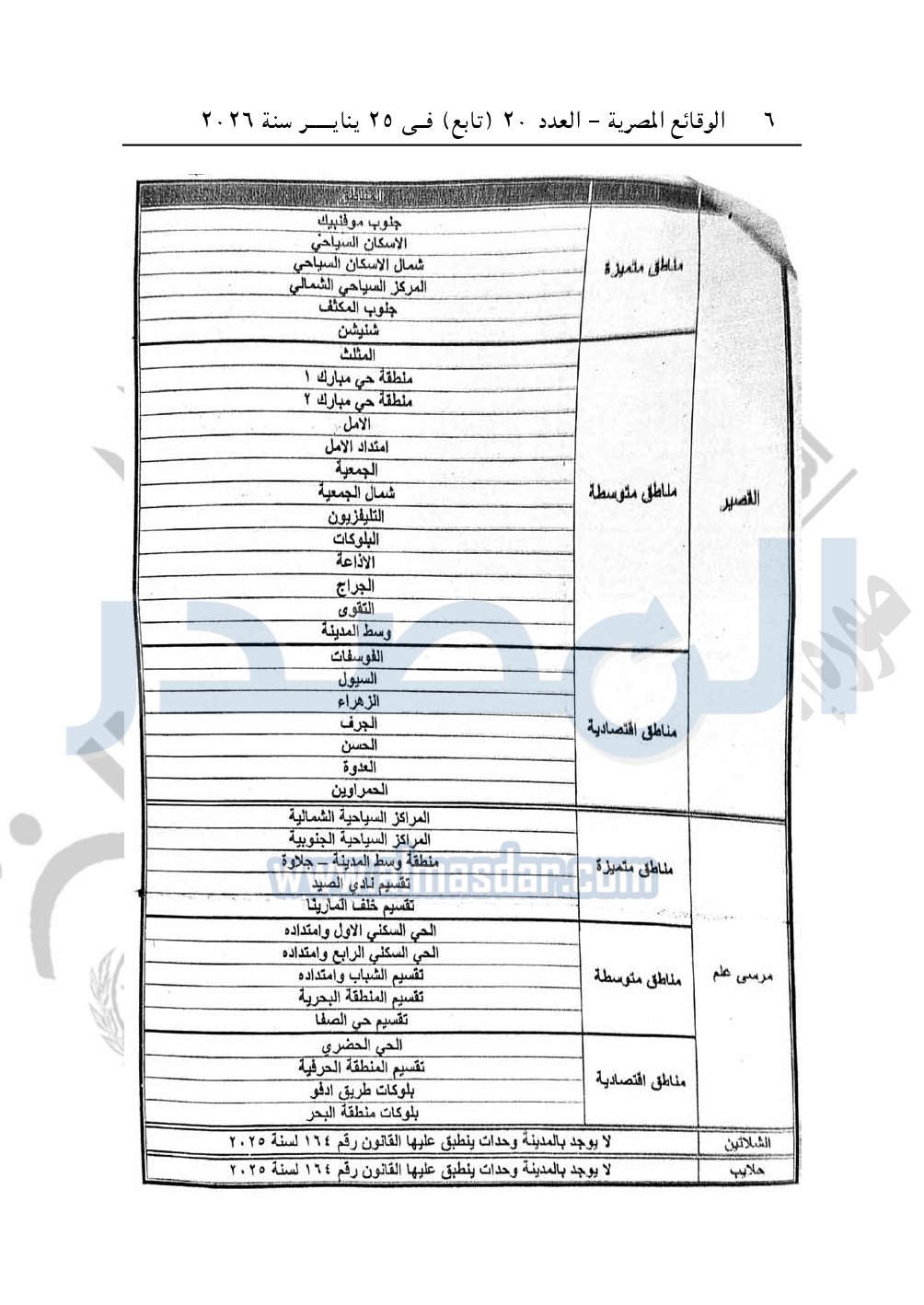 تقسم المناطق التي بها أماكن مؤجرة لغرض السكني الخاضعة لأحكام القانون رقم 164 لسنة 2025 المشار إليه، وفقًا لما انتهت إليه لجنة - لجان حصر المناطق التي بها أماكن مؤجرة لغرض السكني بمحافظة البحر الأحمر.