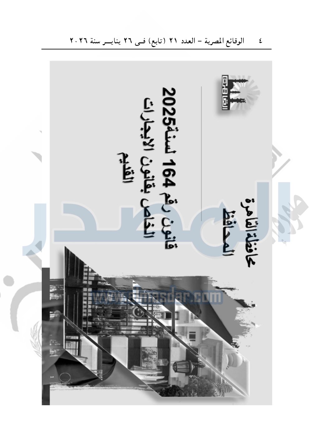 وأوضحت الوقائع أن القرار جاء بعد الاطلاع على الدستور؛ وعلى قانون نظام الإدارة المحلية الصادر بالقانون رقم 43 لسنة 1979 ولائحته التنفيذية؛ وعلى القانون رقم 164 لسنة 2025 الصادر بشأن بعض الأحكام المتعلقة بقوانين إيجار الأماكن وإعادة تنظيم العلاقة بين المؤجر والمستأجر.