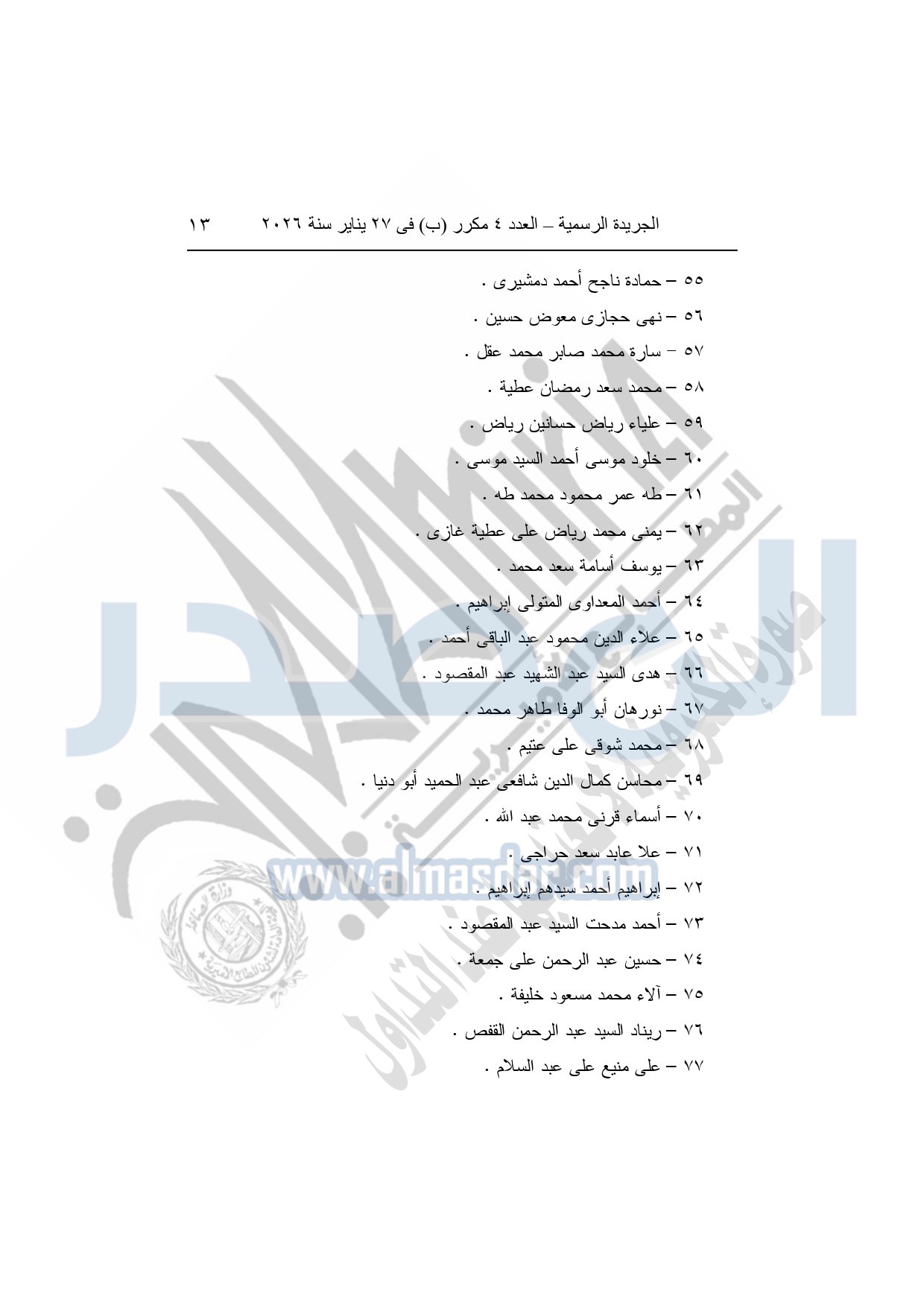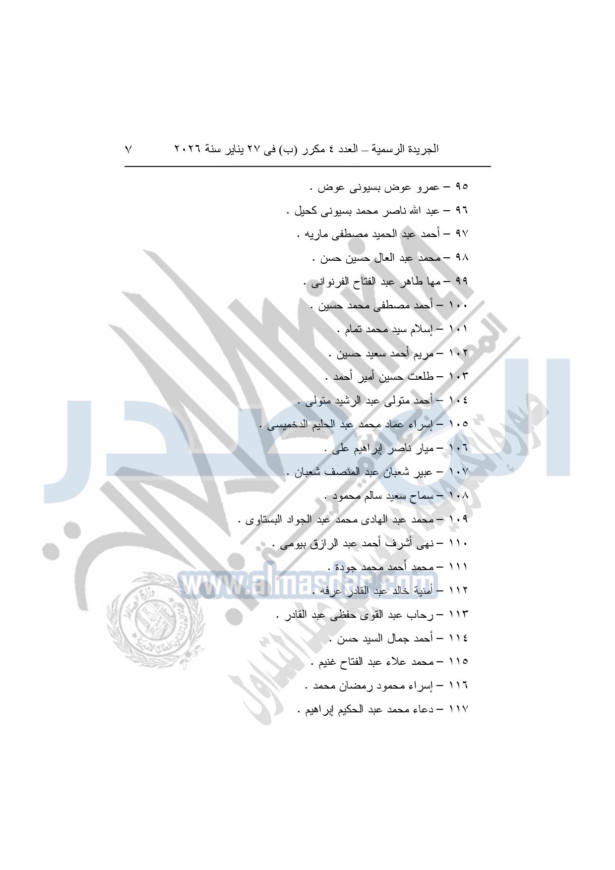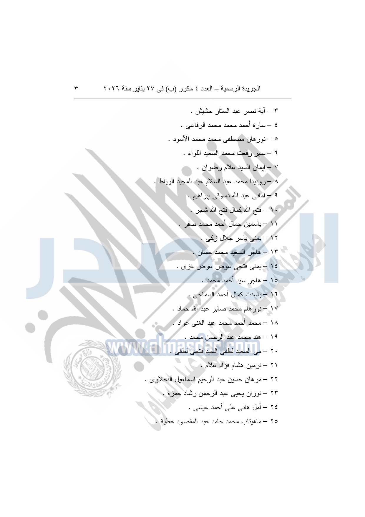 يعين معاونا للنيابة الإدارية من خريجات وخريجي دفعة 2020 كل من السيدات والسادة الآتية أسماؤهم: