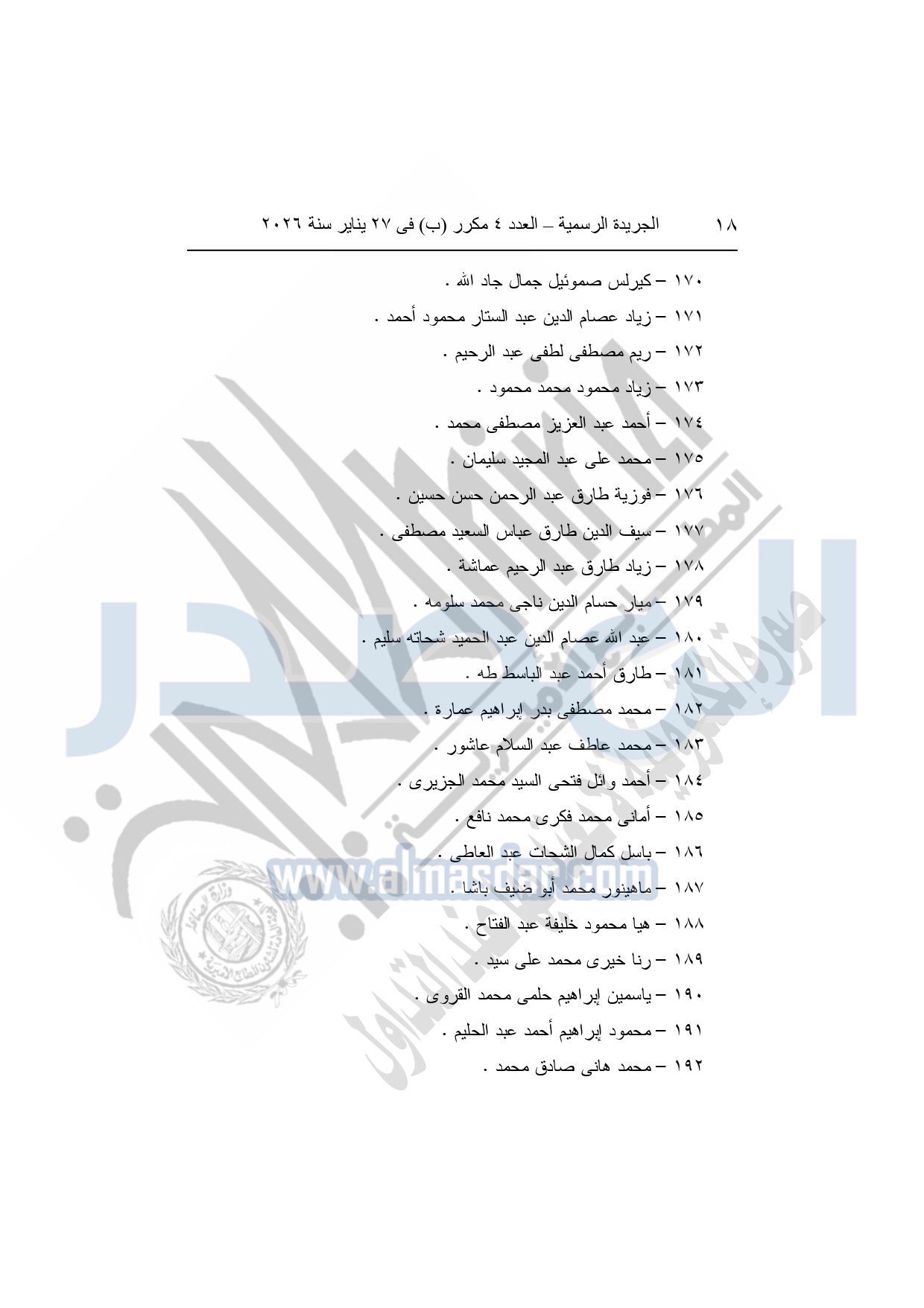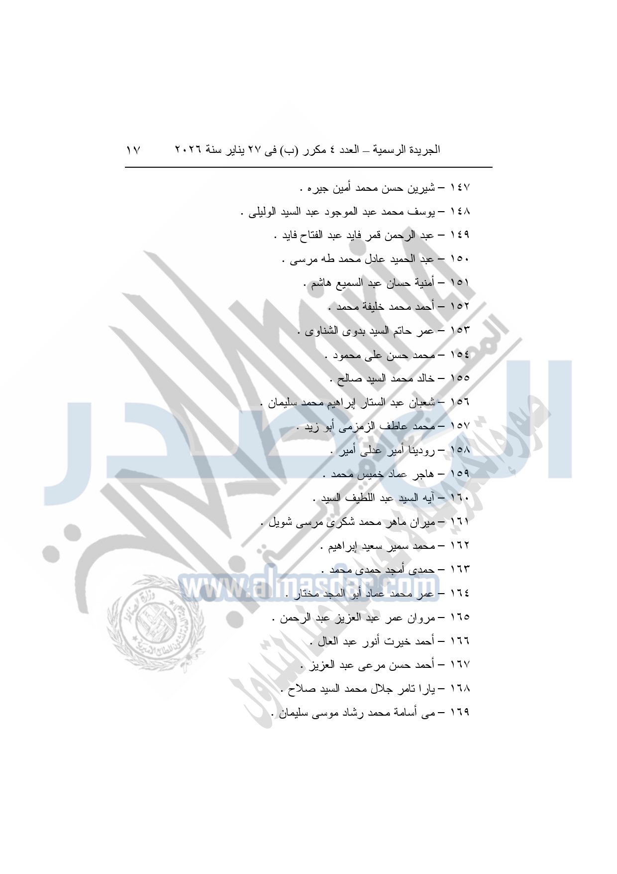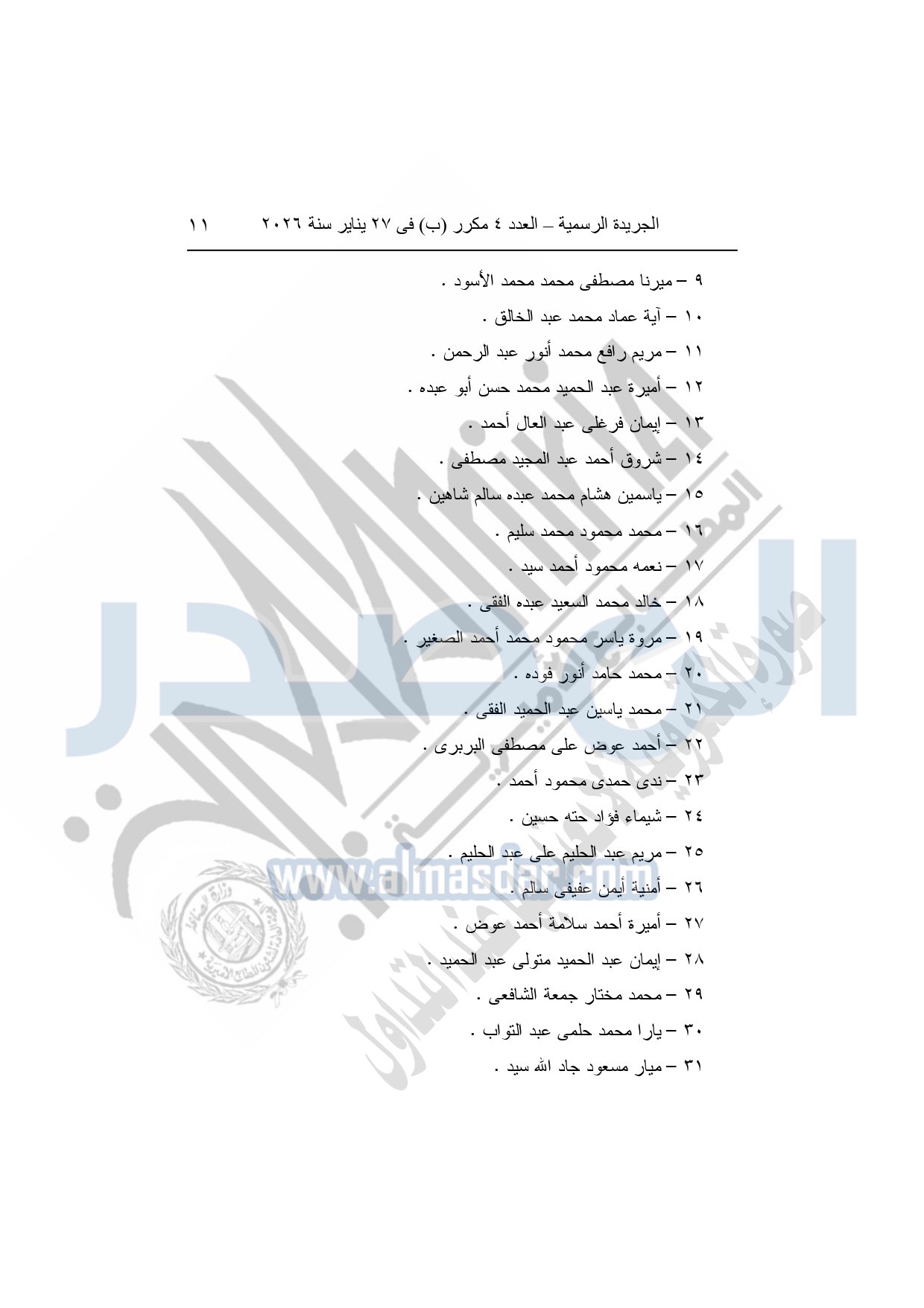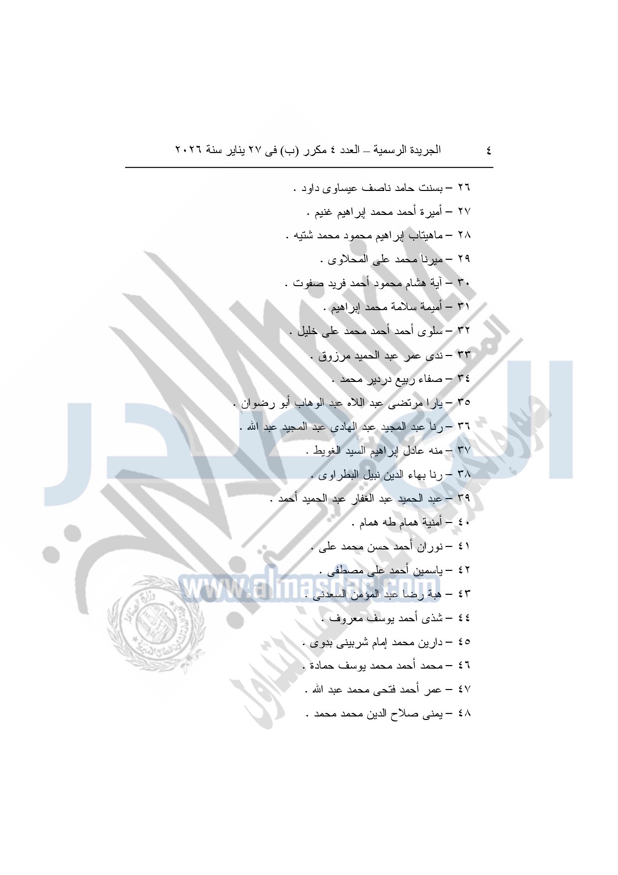 يعين معاونا للنيابة الإدارية من خريجات وخريجي دفعة 2020 كل من السيدات والسادة الآتية أسماؤهم: